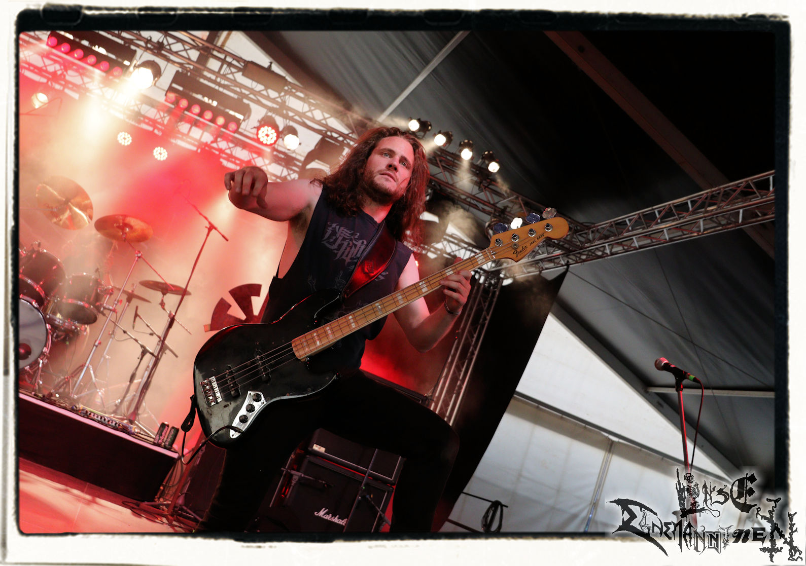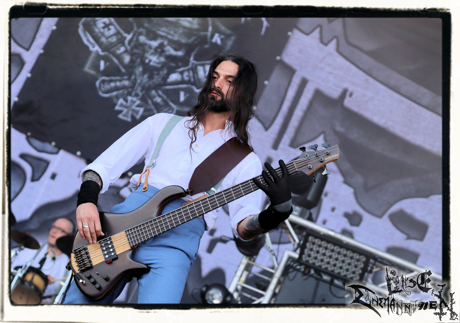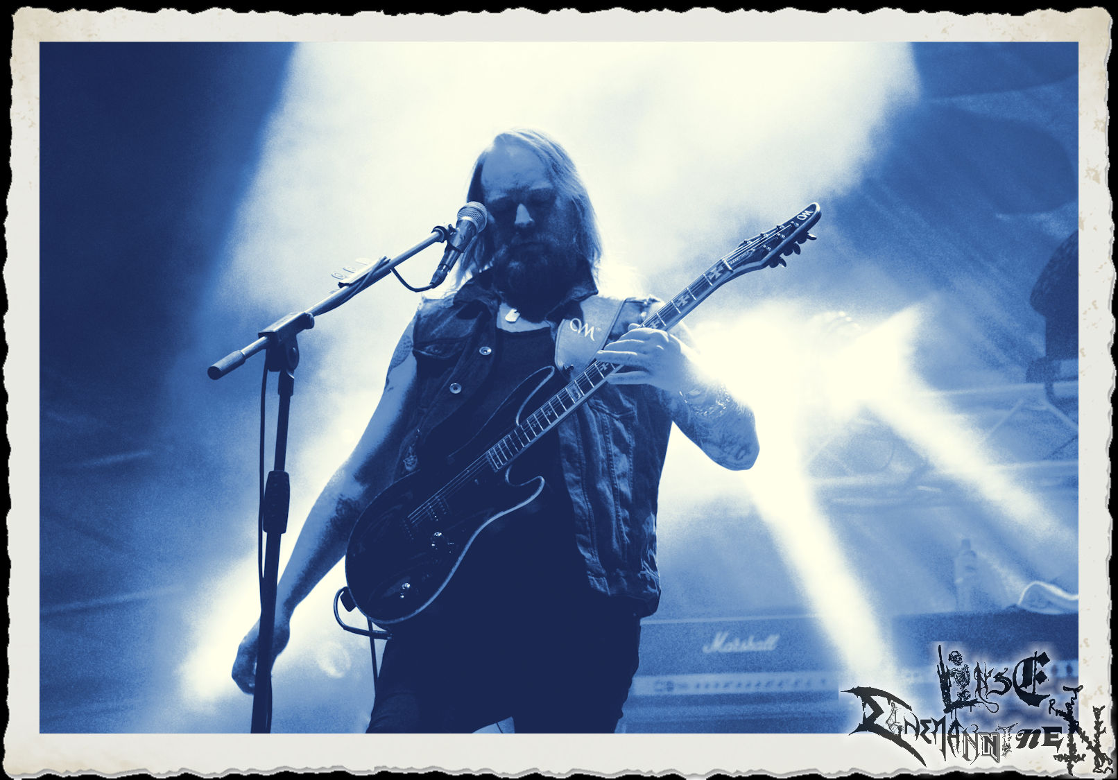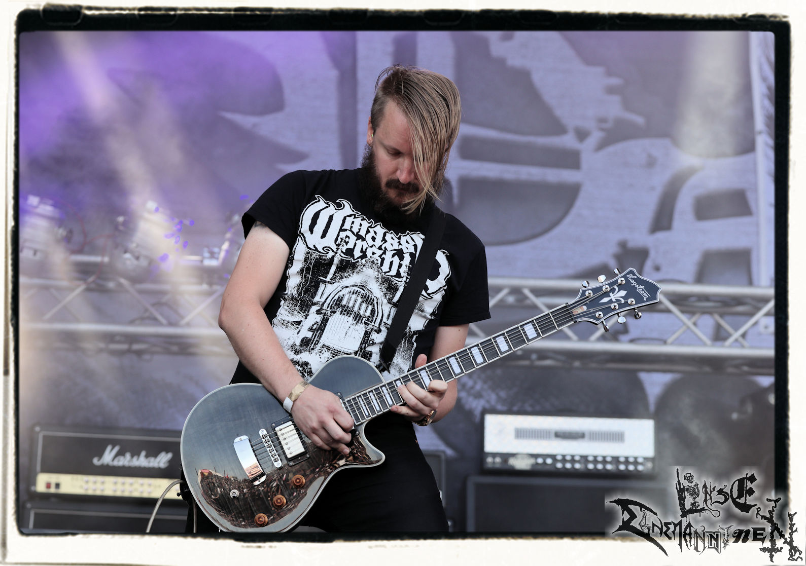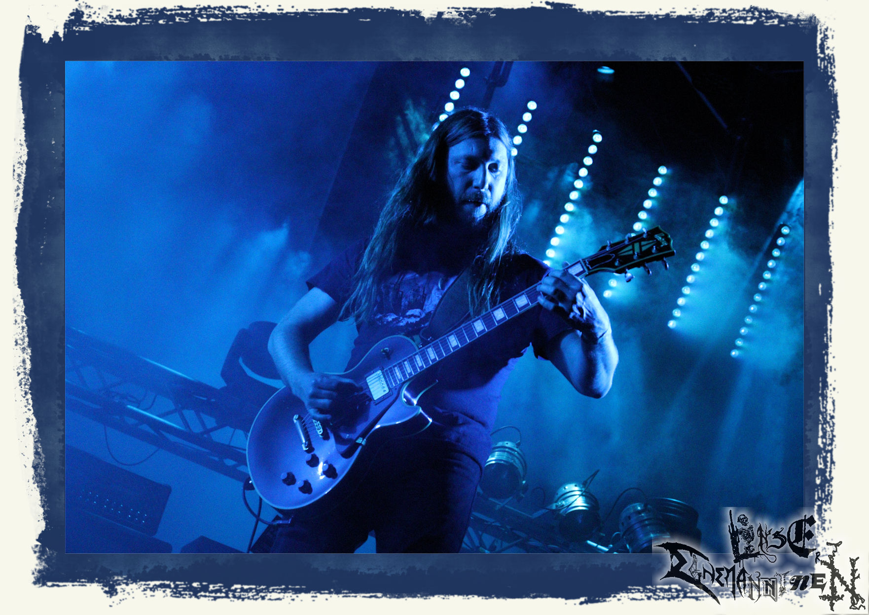 Mit EIS wird der Abend eingeläutet. Die Band aus dem Lupus Lounge – Stall ist wie geschaffen für das Zelt auf dem PARTY.SAN METAL OPEN AIR und beweist eindrucksvoll, wie man Atmosphäre mit mitreißenden Black Metal – Songs kombiniert. Bandkopf Alboin ist gleichzeitig Fan und Vollblutmusiker, der mit den Schwarzmetall-Größen der Neunziger aufgewachsen ist, wobei seine Musik sowohl von diesen, als auch von seiner Bewunderung gegenüber prägenden heimischen Acts wie Helrunar oder auch dem Wirken von Schwadorf mit Sun Of The Sleepless beeinflusst ist. Auch macht er keinen Hehl daraus, dass ihm die Einladung nach Schlotheim mit seiner Band als "Spätberufenem" sehr viel bedeutet. Und diese Haltung schwingt in diesem Konzert mit. Egal, ob Songs vom 2005er-Album "Galeere" ("Durch lichtlose Tiefen", seinerzeit noch unter dem Bandvorgänger Geist veröffentlicht (aus namensrechtlichen Gründen musste man sich danach in Eis umbenennen), vom bisher jüngsten Album "Bannstein" oder vom Klassiker "Wetterkreuz" (2012), der heuer auch schon zehn Jahre auf dem Buckel hat, gespielt werden. Eis zünden ein kleines Highlight, das mir noch lange in Erinnerung bleiben und mich animiert, mir die Scheiben mal wieder zu Gemüte zu führen. Danke!(JD)