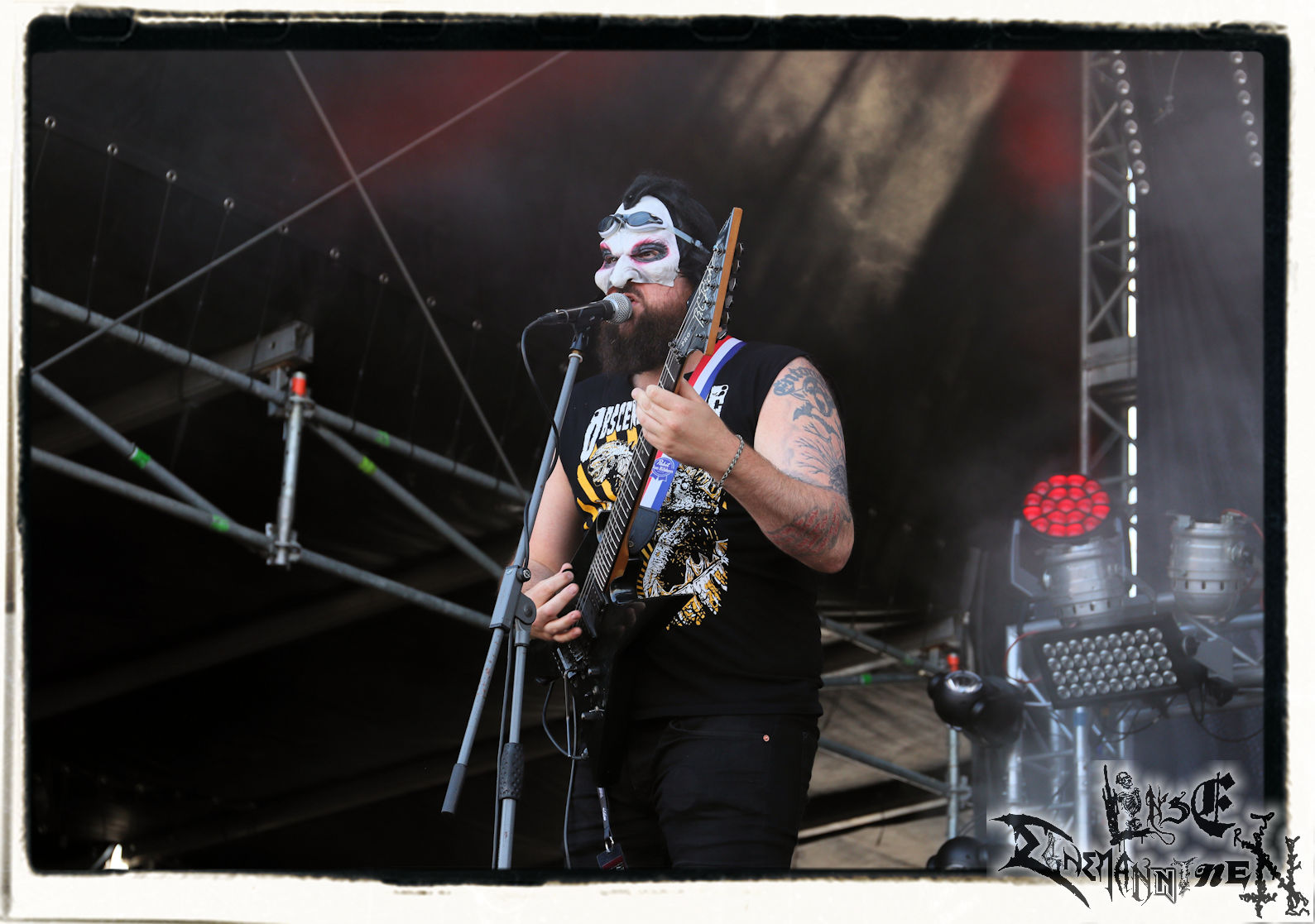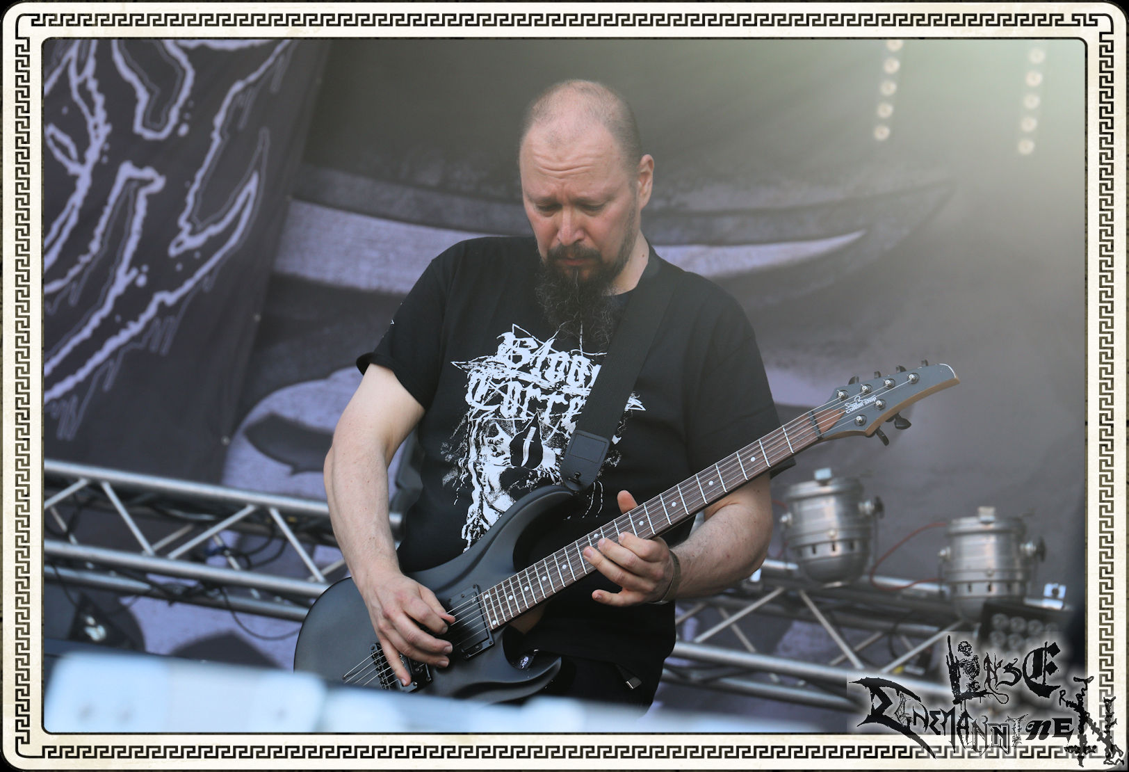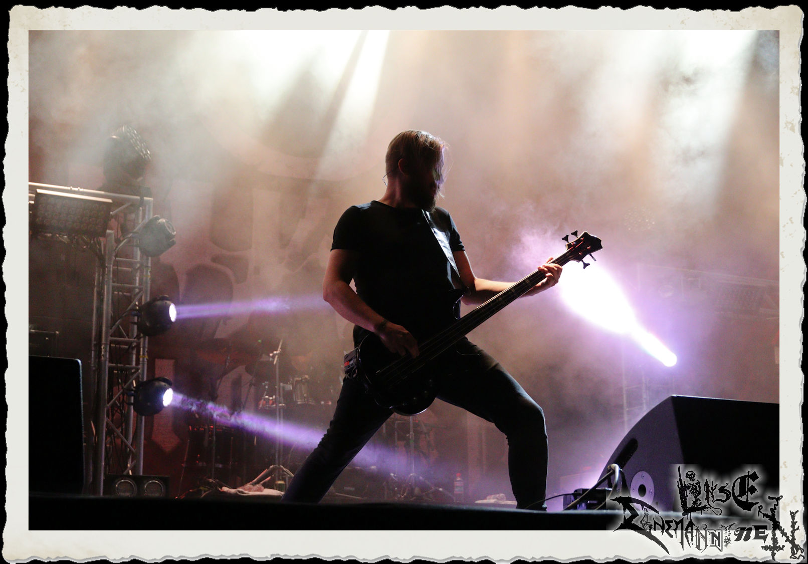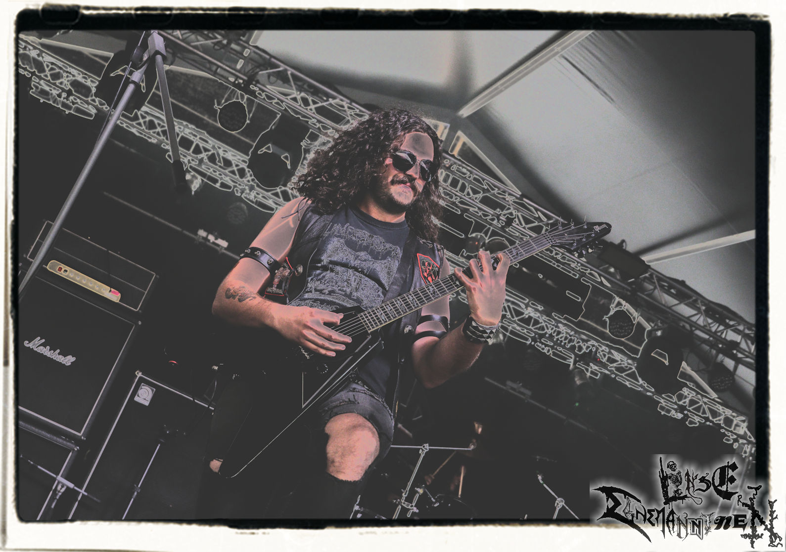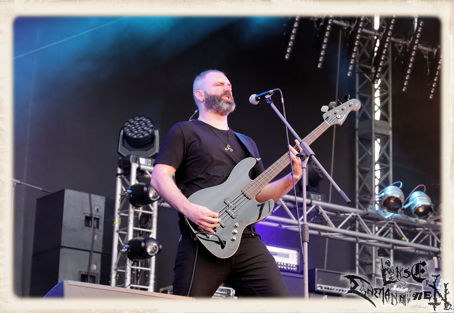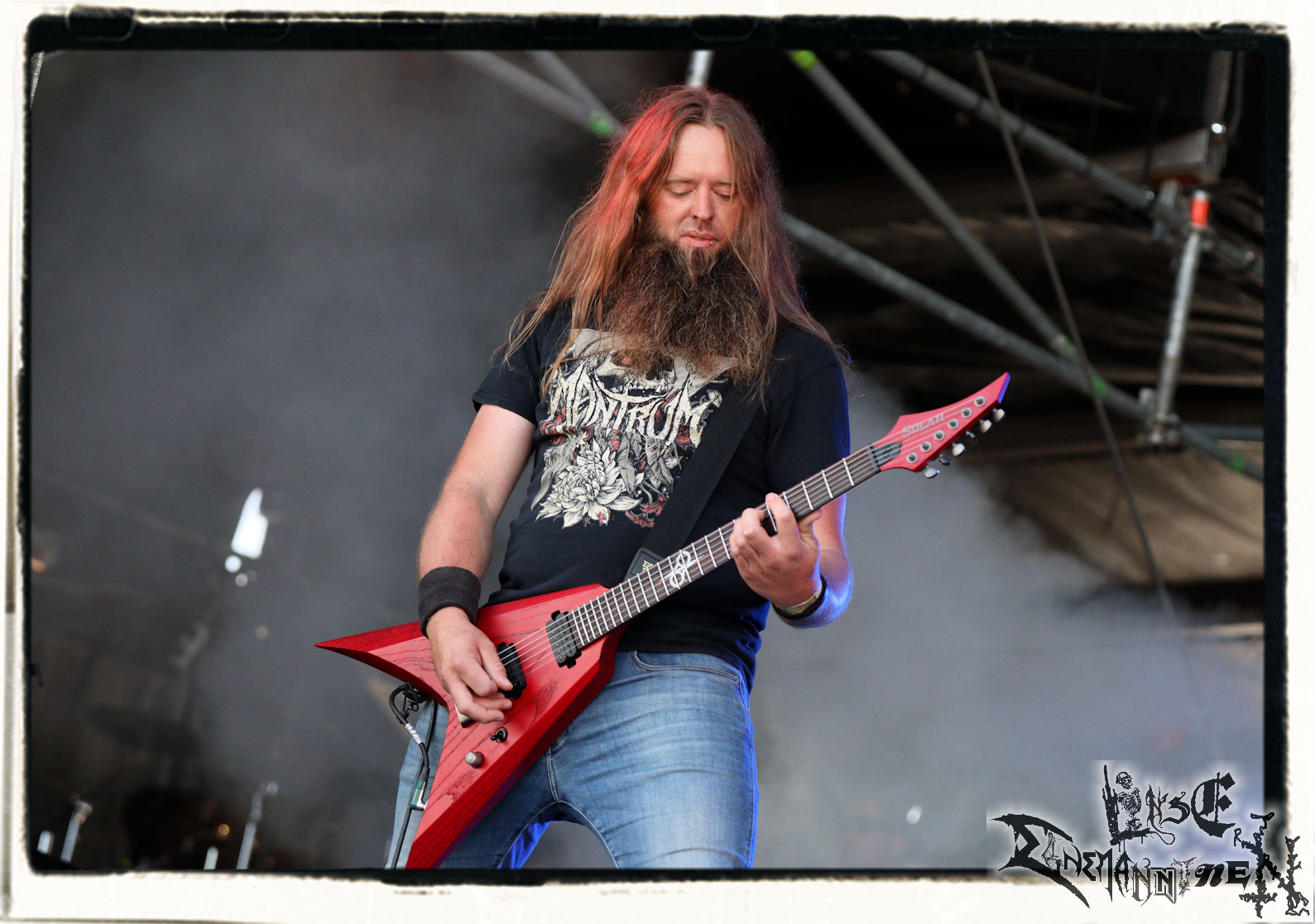 Mit EIS wird der Abend eingeläutet. Die Band aus dem Lupus Lounge – Stall ist wie geschaffen für das Zelt auf dem PARTY.SAN METAL OPEN AIR und beweist eindrucksvoll, wie man Atmosphäre mit mitreißenden Black Metal – Songs kombiniert. Bandkopf Alboin ist gleichzeitig Fan und Vollblutmusiker, der mit den Schwarzmetall-Größen der Neunziger aufgewachsen ist, wobei seine Musik sowohl von diesen, als auch von seiner Bewunderung gegenüber prägenden heimischen Acts wie Helrunar oder auch dem Wirken von Schwadorf mit Sun Of The Sleepless beeinflusst ist. Auch macht er keinen Hehl daraus, dass ihm die Einladung nach Schlotheim mit seiner Band als "Spätberufenem" sehr viel bedeutet. Und diese Haltung schwingt in diesem Konzert mit. Egal, ob Songs vom 2005er-Album "Galeere" ("Durch lichtlose Tiefen", seinerzeit noch unter dem Bandvorgänger Geist veröffentlicht (aus namensrechtlichen Gründen musste man sich danach in Eis umbenennen), vom bisher jüngsten Album "Bannstein" oder vom Klassiker "Wetterkreuz" (2012), der heuer auch schon zehn Jahre auf dem Buckel hat, gespielt werden. Eis zünden ein kleines Highlight, das mir noch lange in Erinnerung bleiben und mich animiert, mir die Scheiben mal wieder zu Gemüte zu führen. Danke!(JD)