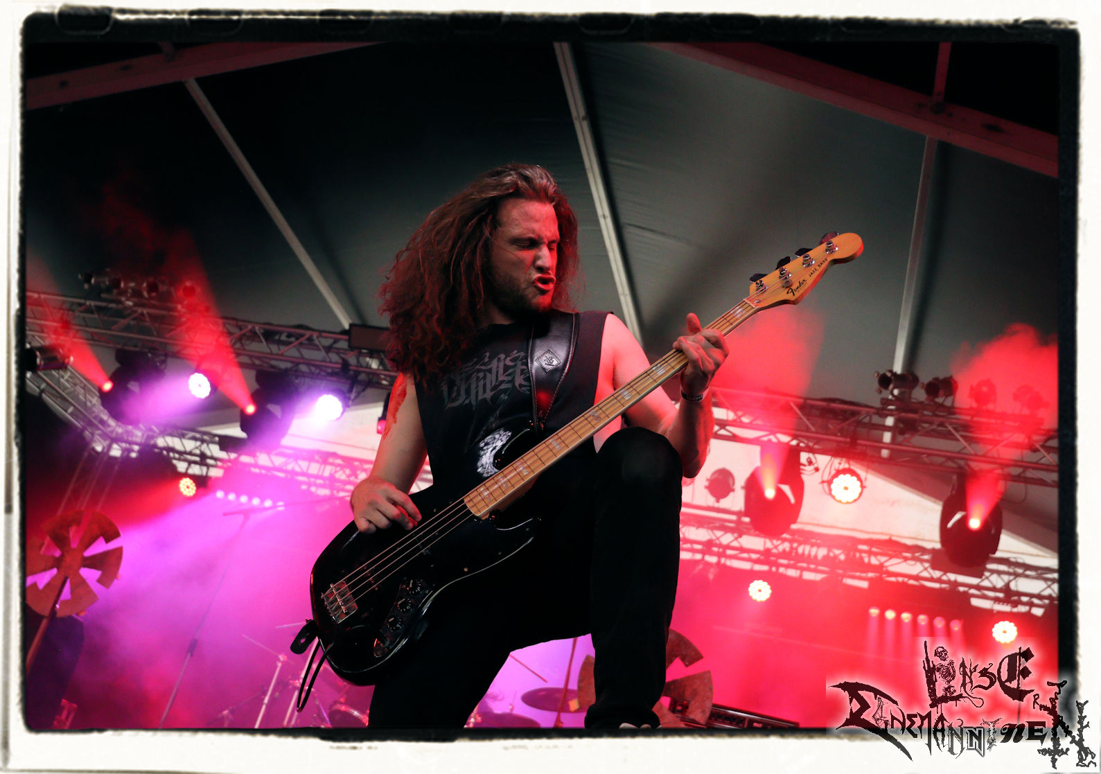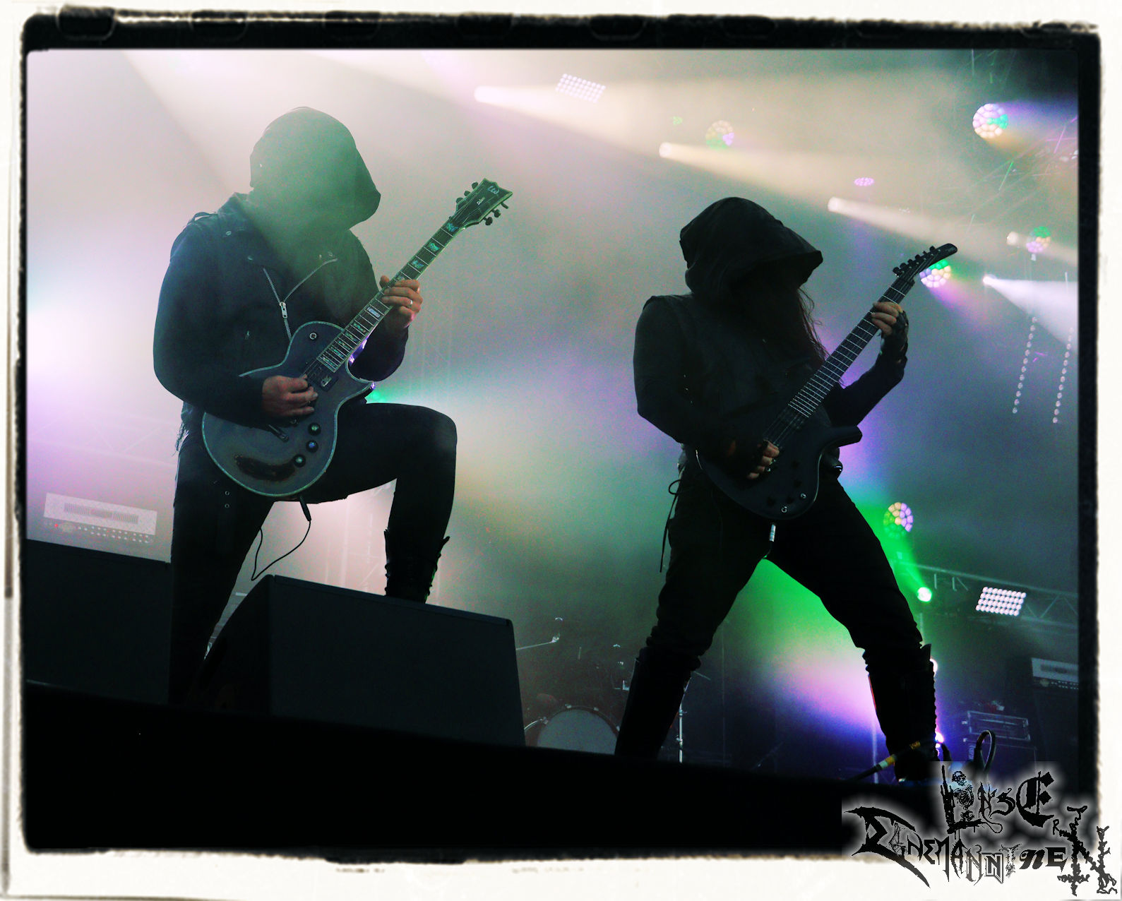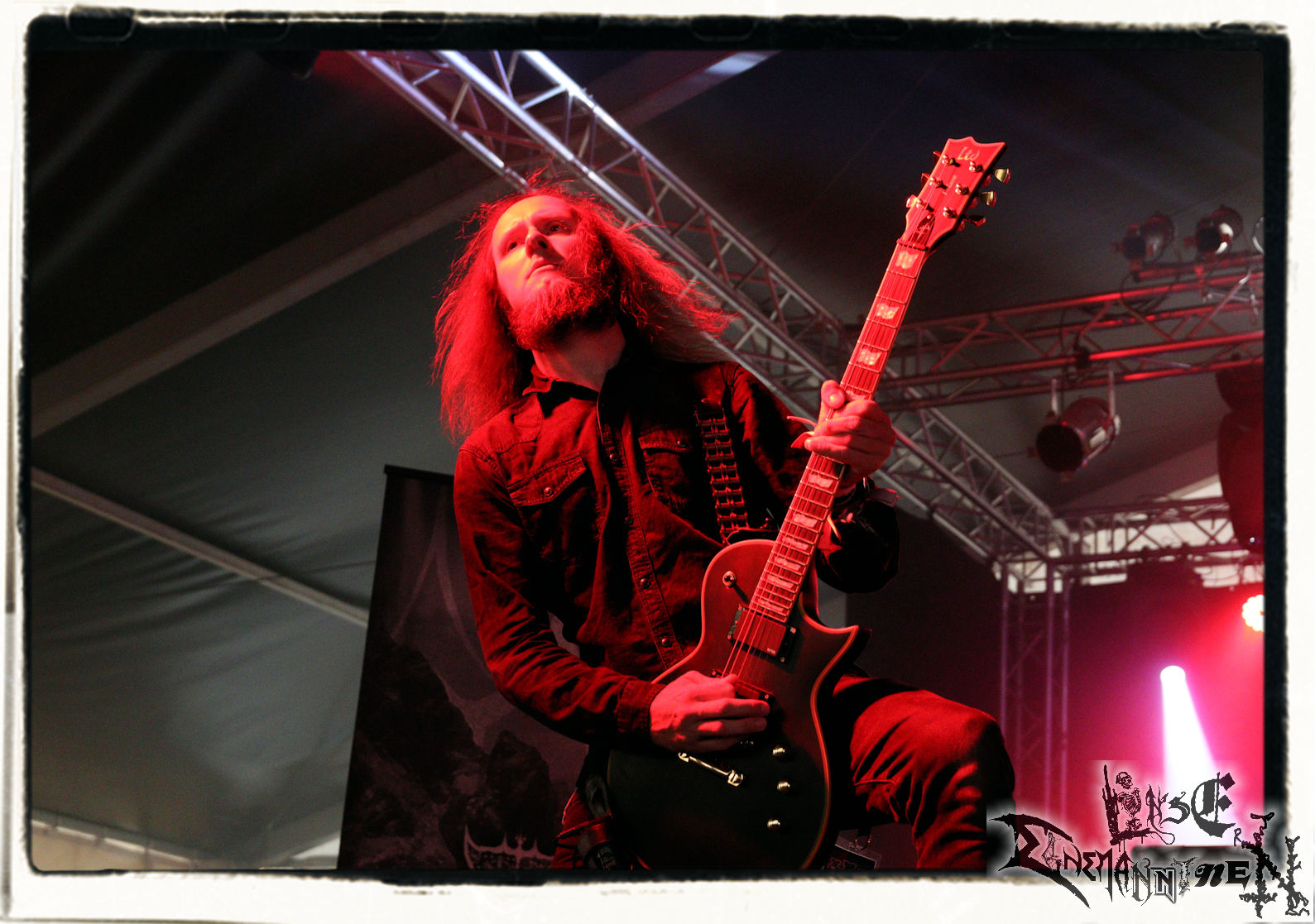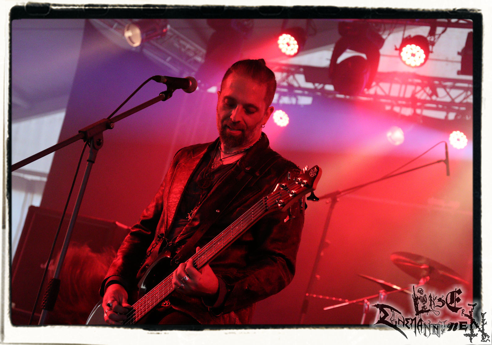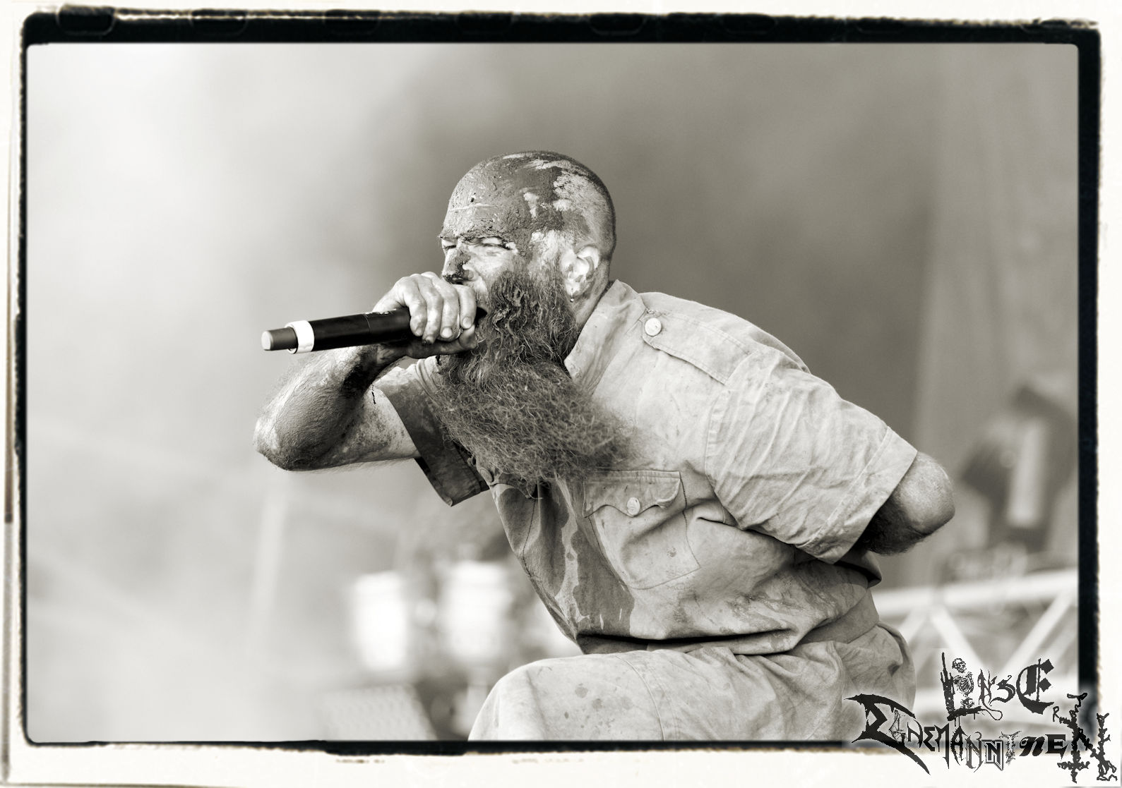 Mit EIS wird der Abend eingeläutet. Die Band aus dem Lupus Lounge – Stall ist wie geschaffen für das Zelt auf dem PARTY.SAN METAL OPEN AIR und beweist eindrucksvoll, wie man Atmosphäre mit mitreißenden Black Metal – Songs kombiniert. Bandkopf Alboin ist gleichzeitig Fan und Vollblutmusiker, der mit den Schwarzmetall-Größen der Neunziger aufgewachsen ist, wobei seine Musik sowohl von diesen, als auch von seiner Bewunderung gegenüber prägenden heimischen Acts wie Helrunar oder auch dem Wirken von Schwadorf mit Sun Of The Sleepless beeinflusst ist. Auch macht er keinen Hehl daraus, dass ihm die Einladung nach Schlotheim mit seiner Band als "Spätberufenem" sehr viel bedeutet. Und diese Haltung schwingt in diesem Konzert mit. Egal, ob Songs vom 2005er-Album "Galeere" ("Durch lichtlose Tiefen", seinerzeit noch unter dem Bandvorgänger Geist veröffentlicht (aus namensrechtlichen Gründen musste man sich danach in Eis umbenennen), vom bisher jüngsten Album "Bannstein" oder vom Klassiker "Wetterkreuz" (2012), der heuer auch schon zehn Jahre auf dem Buckel hat, gespielt werden. Eis zünden ein kleines Highlight, das mir noch lange in Erinnerung bleiben und mich animiert, mir die Scheiben mal wieder zu Gemüte zu führen. Danke!(JD)