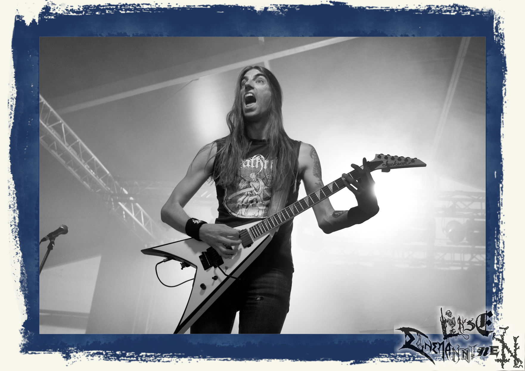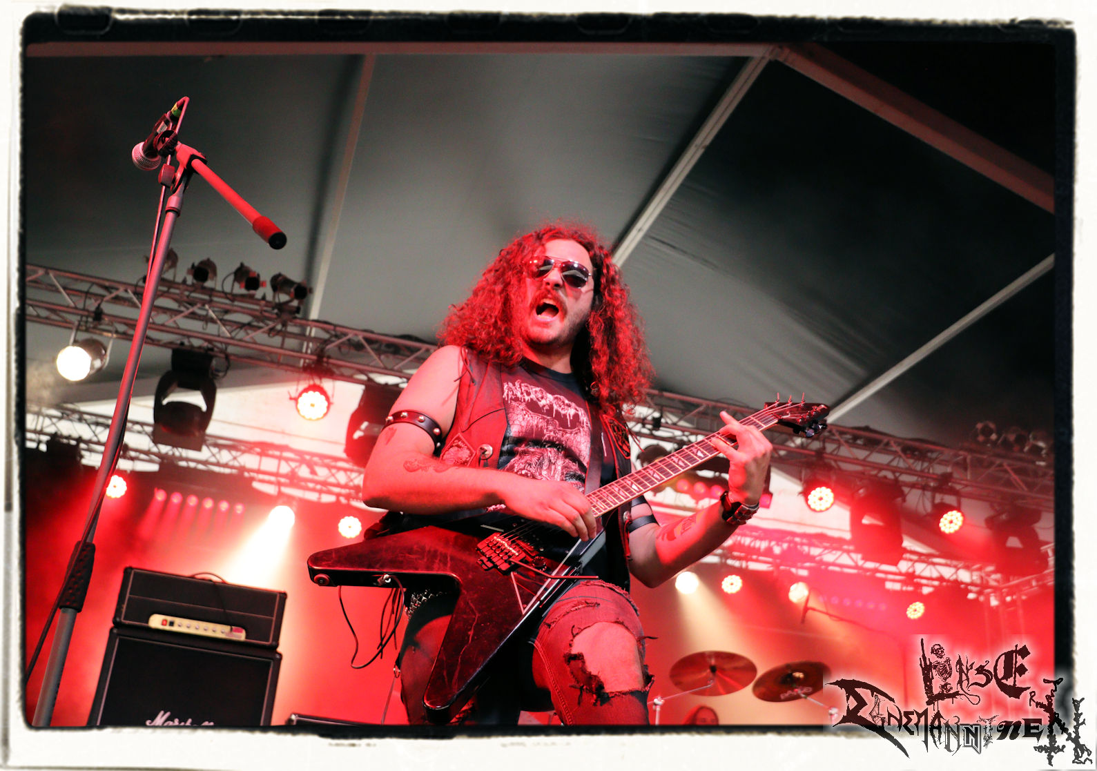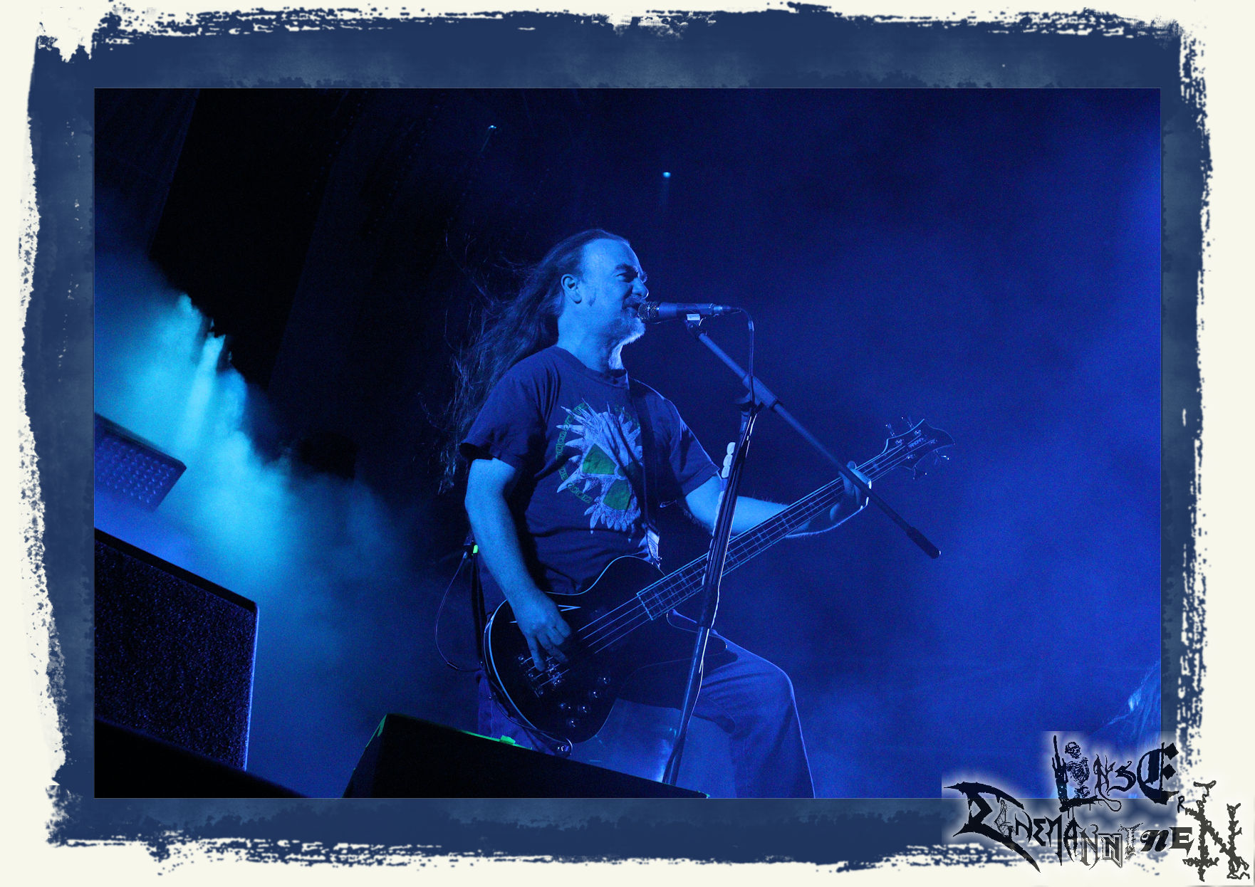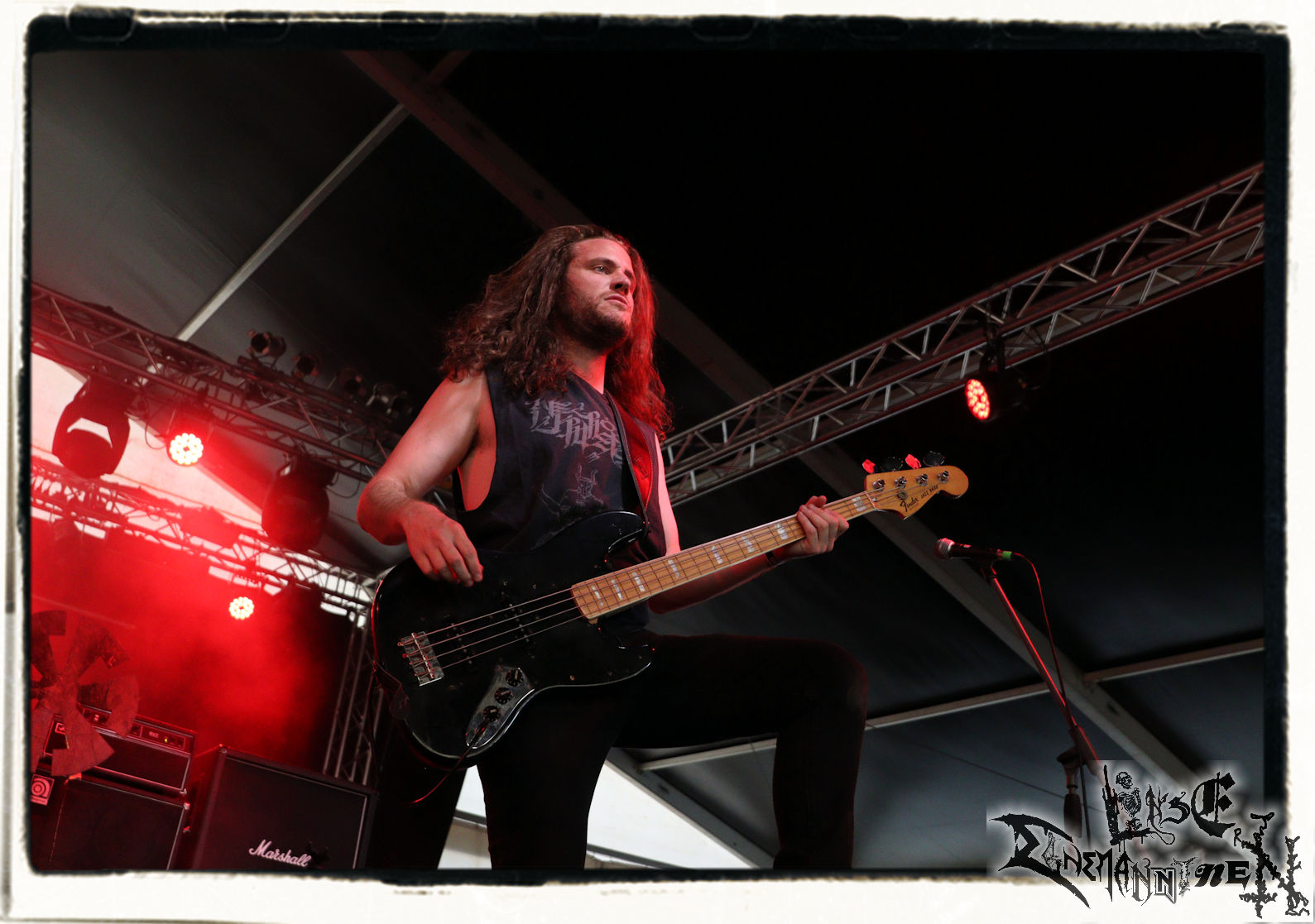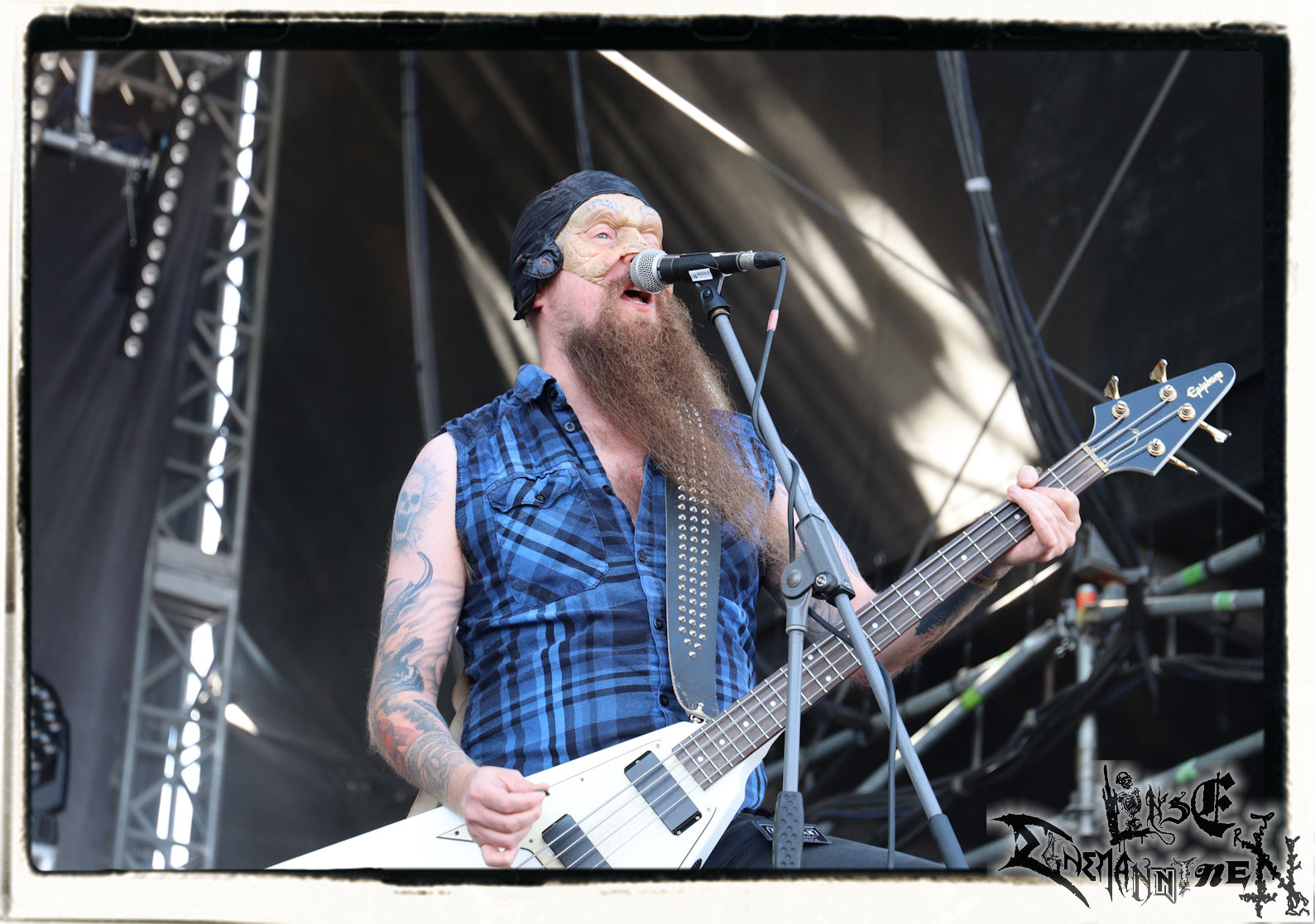 Mit EIS wird der Abend eingeläutet. Die Band aus dem Lupus Lounge – Stall ist wie geschaffen für das Zelt auf dem PARTY.SAN METAL OPEN AIR und beweist eindrucksvoll, wie man Atmosphäre mit mitreißenden Black Metal – Songs kombiniert. Bandkopf Alboin ist gleichzeitig Fan und Vollblutmusiker, der mit den Schwarzmetall-Größen der Neunziger aufgewachsen ist, wobei seine Musik sowohl von diesen, als auch von seiner Bewunderung gegenüber prägenden heimischen Acts wie Helrunar oder auch dem Wirken von Schwadorf mit Sun Of The Sleepless beeinflusst ist. Auch macht er keinen Hehl daraus, dass ihm die Einladung nach Schlotheim mit seiner Band als "Spätberufenem" sehr viel bedeutet. Und diese Haltung schwingt in diesem Konzert mit. Egal, ob Songs vom 2005er-Album "Galeere" ("Durch lichtlose Tiefen", seinerzeit noch unter dem Bandvorgänger Geist veröffentlicht (aus namensrechtlichen Gründen musste man sich danach in Eis umbenennen), vom bisher jüngsten Album "Bannstein" oder vom Klassiker "Wetterkreuz" (2012), der heuer auch schon zehn Jahre auf dem Buckel hat, gespielt werden. Eis zünden ein kleines Highlight, das mir noch lange in Erinnerung bleiben und mich animiert, mir die Scheiben mal wieder zu Gemüte zu führen. Danke!(JD)