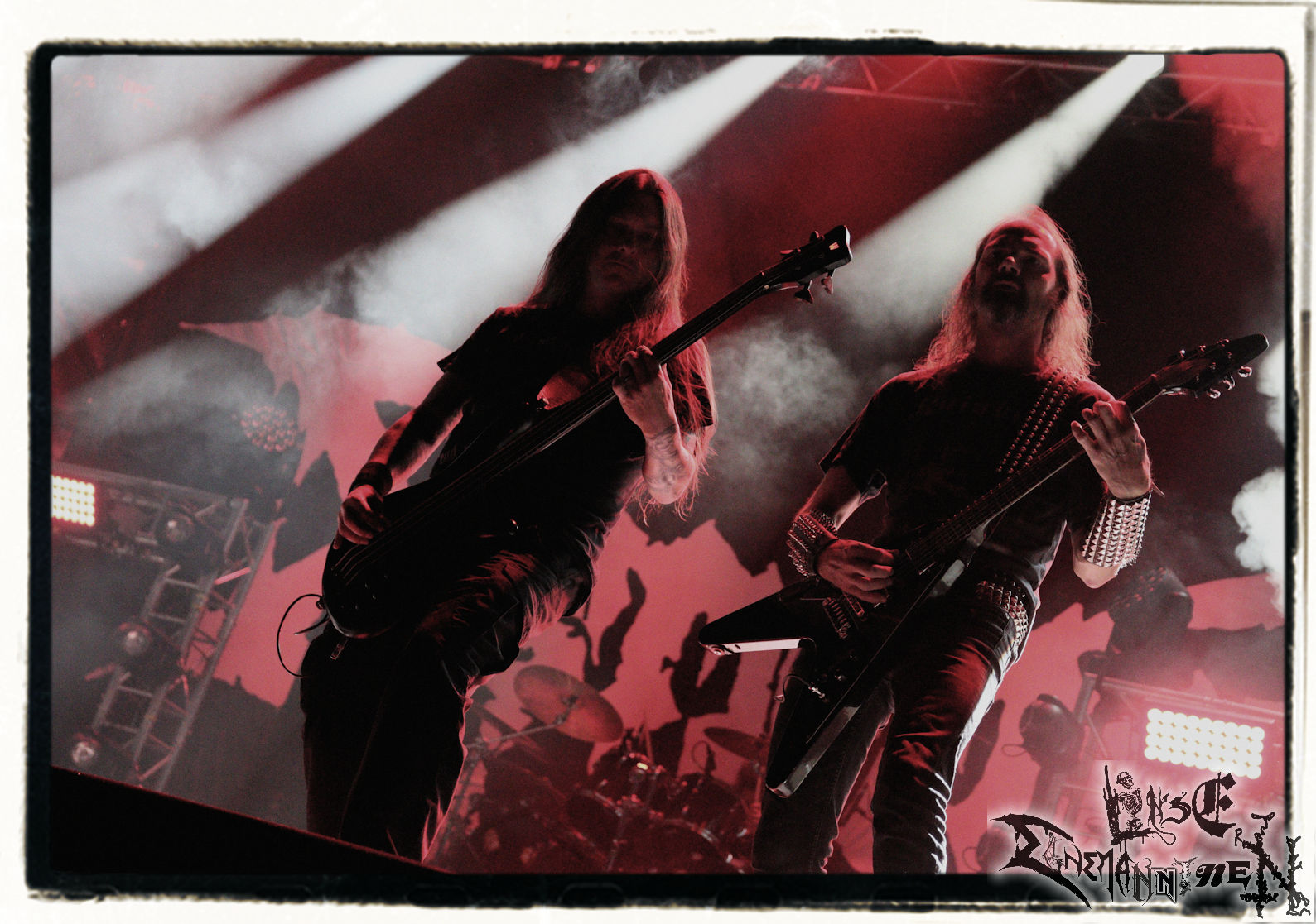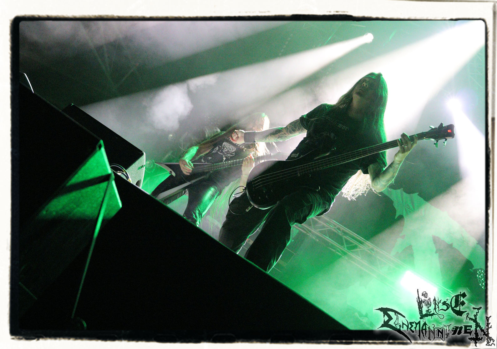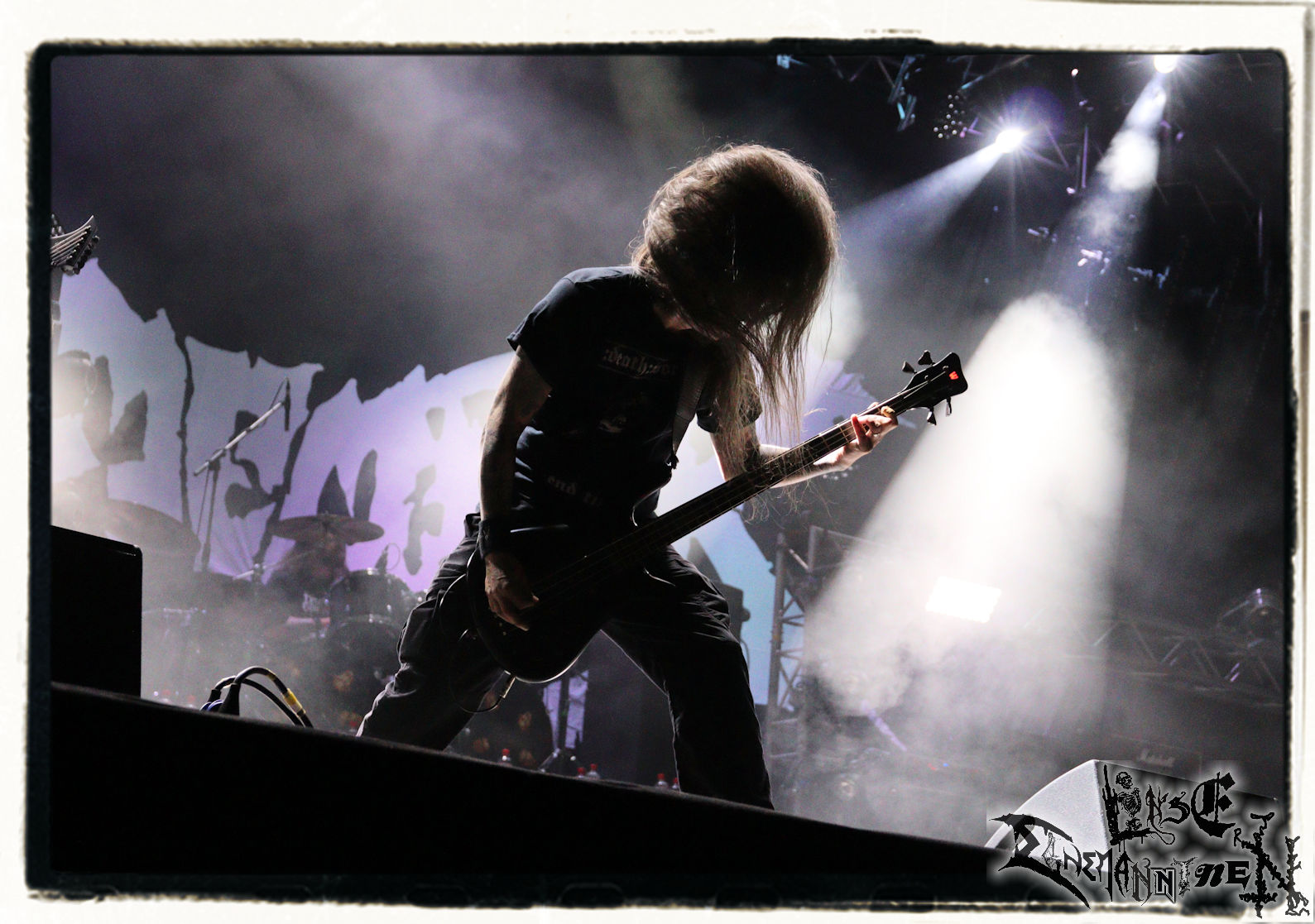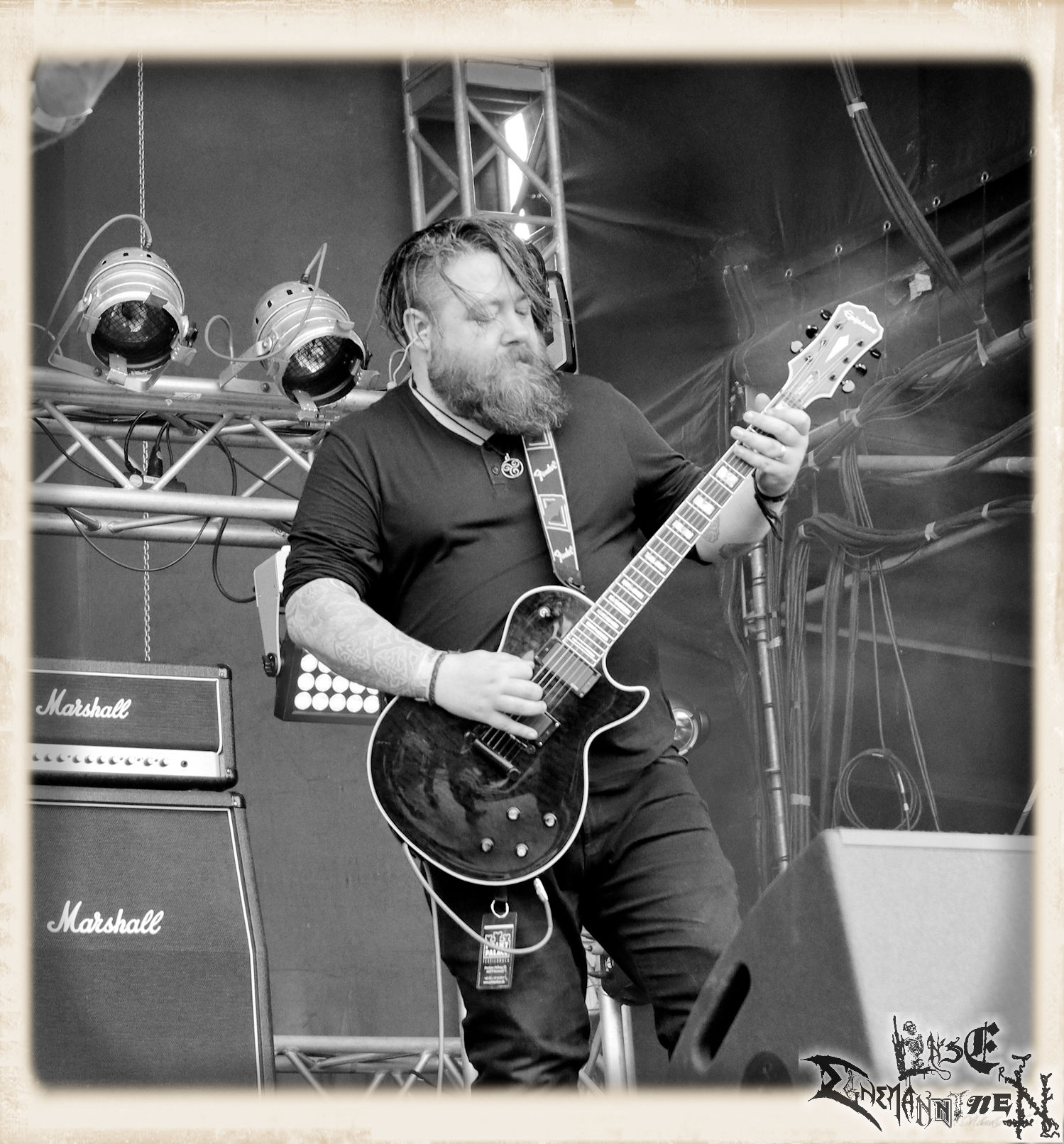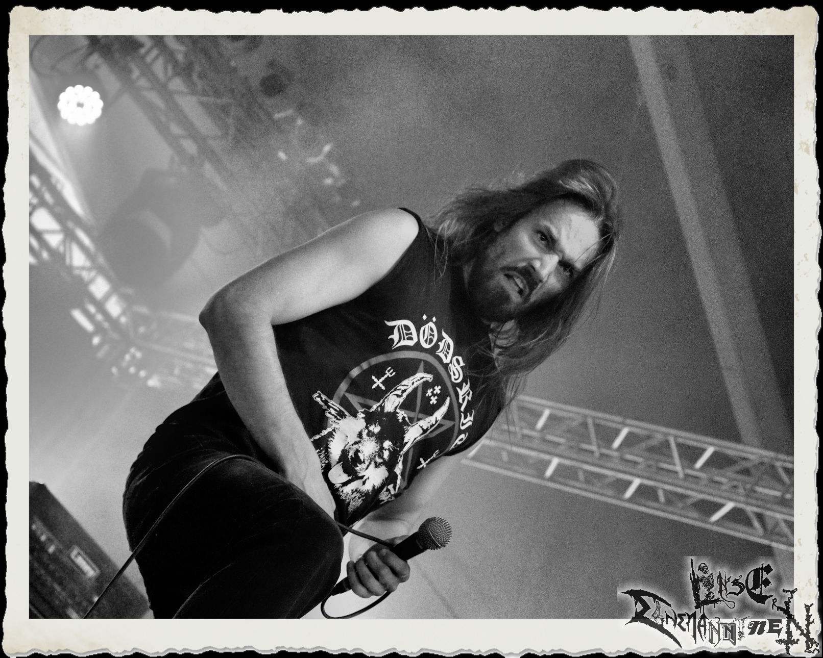 Mit EIS wird der Abend eingeläutet. Die Band aus dem Lupus Lounge – Stall ist wie geschaffen für das Zelt auf dem PARTY.SAN METAL OPEN AIR und beweist eindrucksvoll, wie man Atmosphäre mit mitreißenden Black Metal – Songs kombiniert. Bandkopf Alboin ist gleichzeitig Fan und Vollblutmusiker, der mit den Schwarzmetall-Größen der Neunziger aufgewachsen ist, wobei seine Musik sowohl von diesen, als auch von seiner Bewunderung gegenüber prägenden heimischen Acts wie Helrunar oder auch dem Wirken von Schwadorf mit Sun Of The Sleepless beeinflusst ist. Auch macht er keinen Hehl daraus, dass ihm die Einladung nach Schlotheim mit seiner Band als "Spätberufenem" sehr viel bedeutet. Und diese Haltung schwingt in diesem Konzert mit. Egal, ob Songs vom 2005er-Album "Galeere" ("Durch lichtlose Tiefen", seinerzeit noch unter dem Bandvorgänger Geist veröffentlicht (aus namensrechtlichen Gründen musste man sich danach in Eis umbenennen), vom bisher jüngsten Album "Bannstein" oder vom Klassiker "Wetterkreuz" (2012), der heuer auch schon zehn Jahre auf dem Buckel hat, gespielt werden. Eis zünden ein kleines Highlight, das mir noch lange in Erinnerung bleiben und mich animiert, mir die Scheiben mal wieder zu Gemüte zu führen. Danke!(JD)
