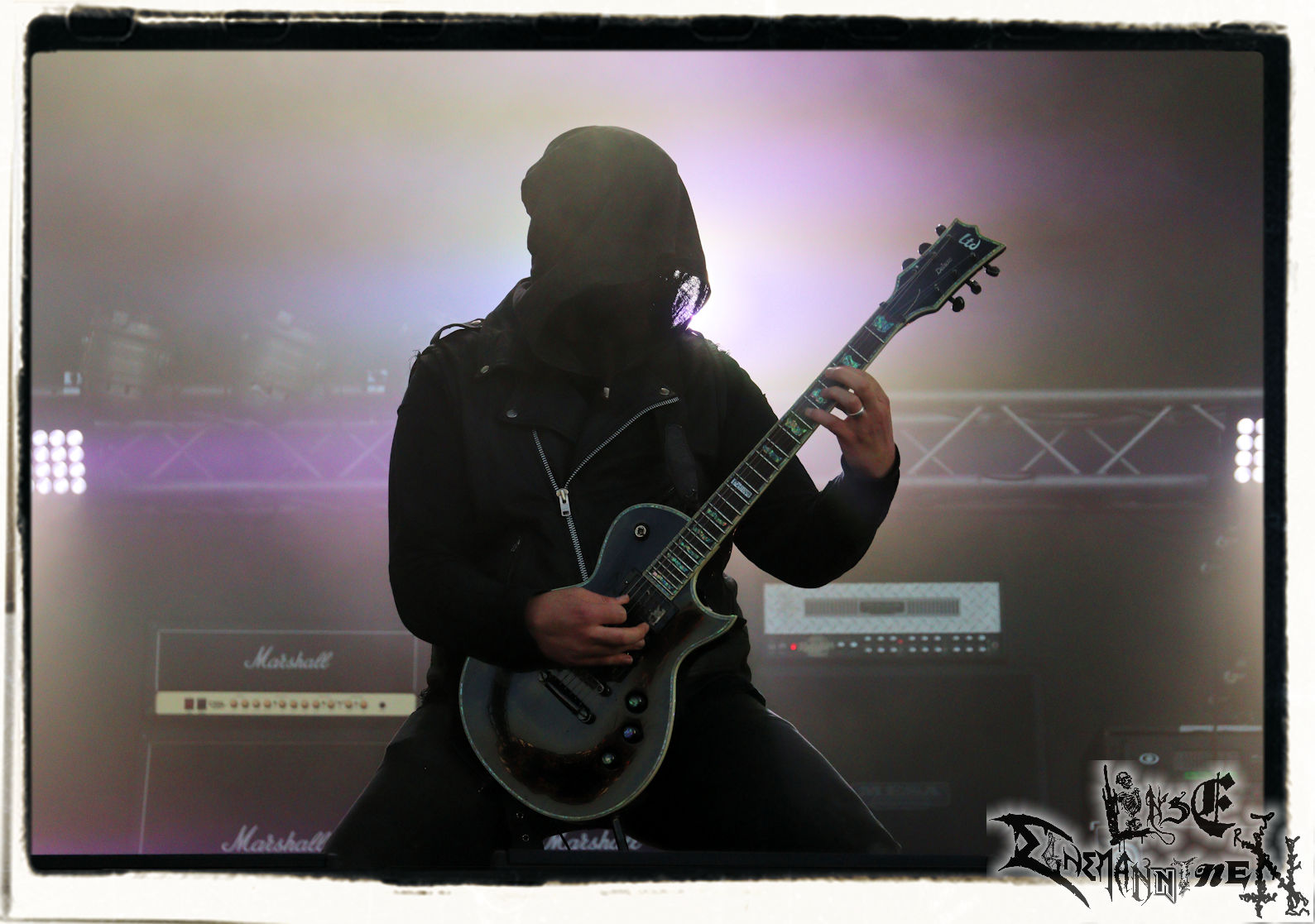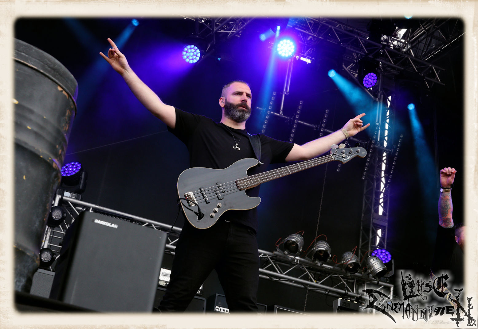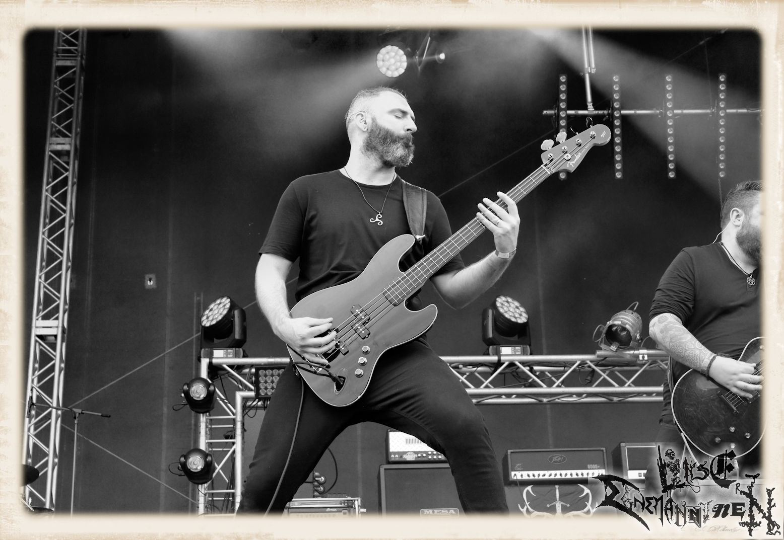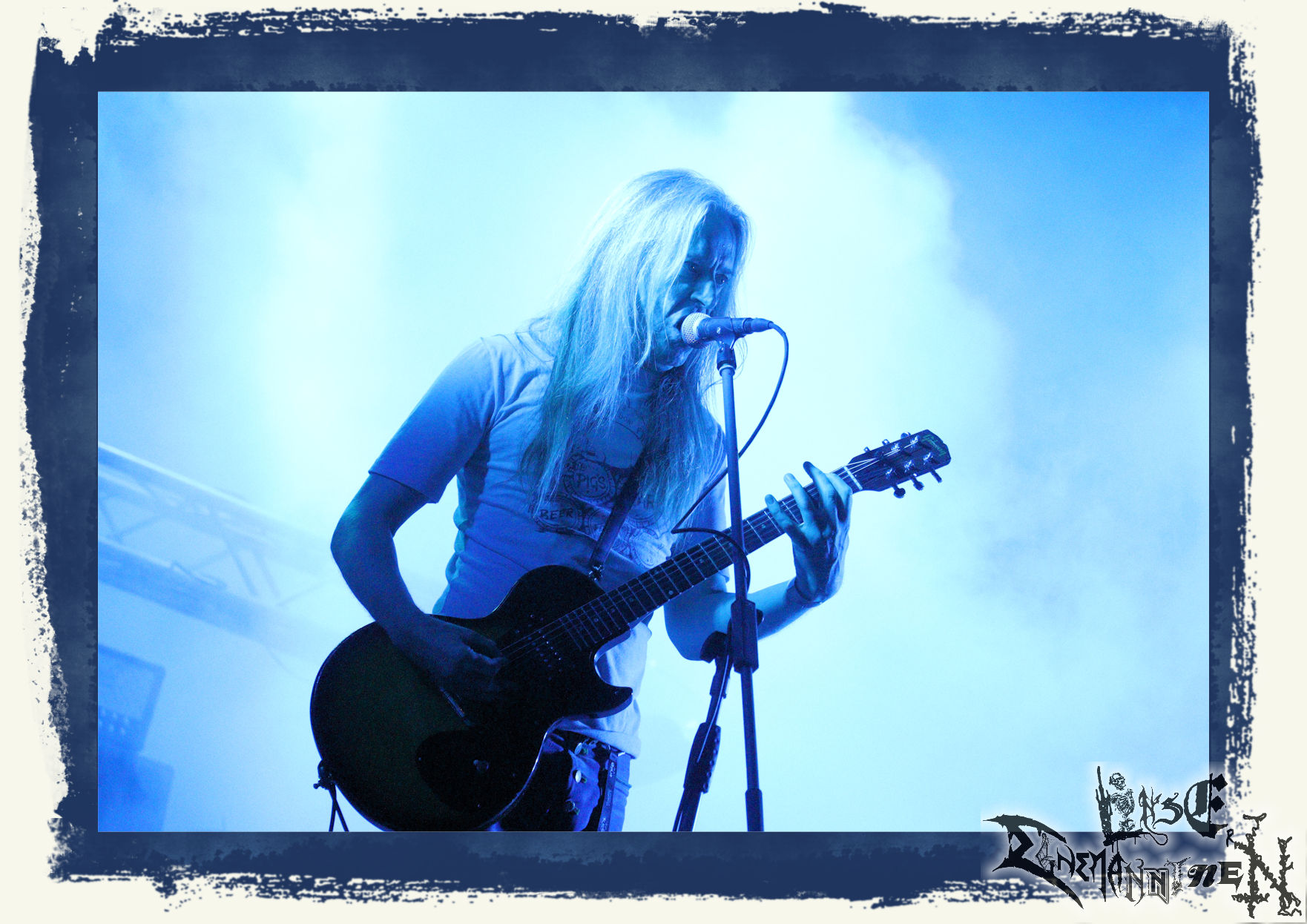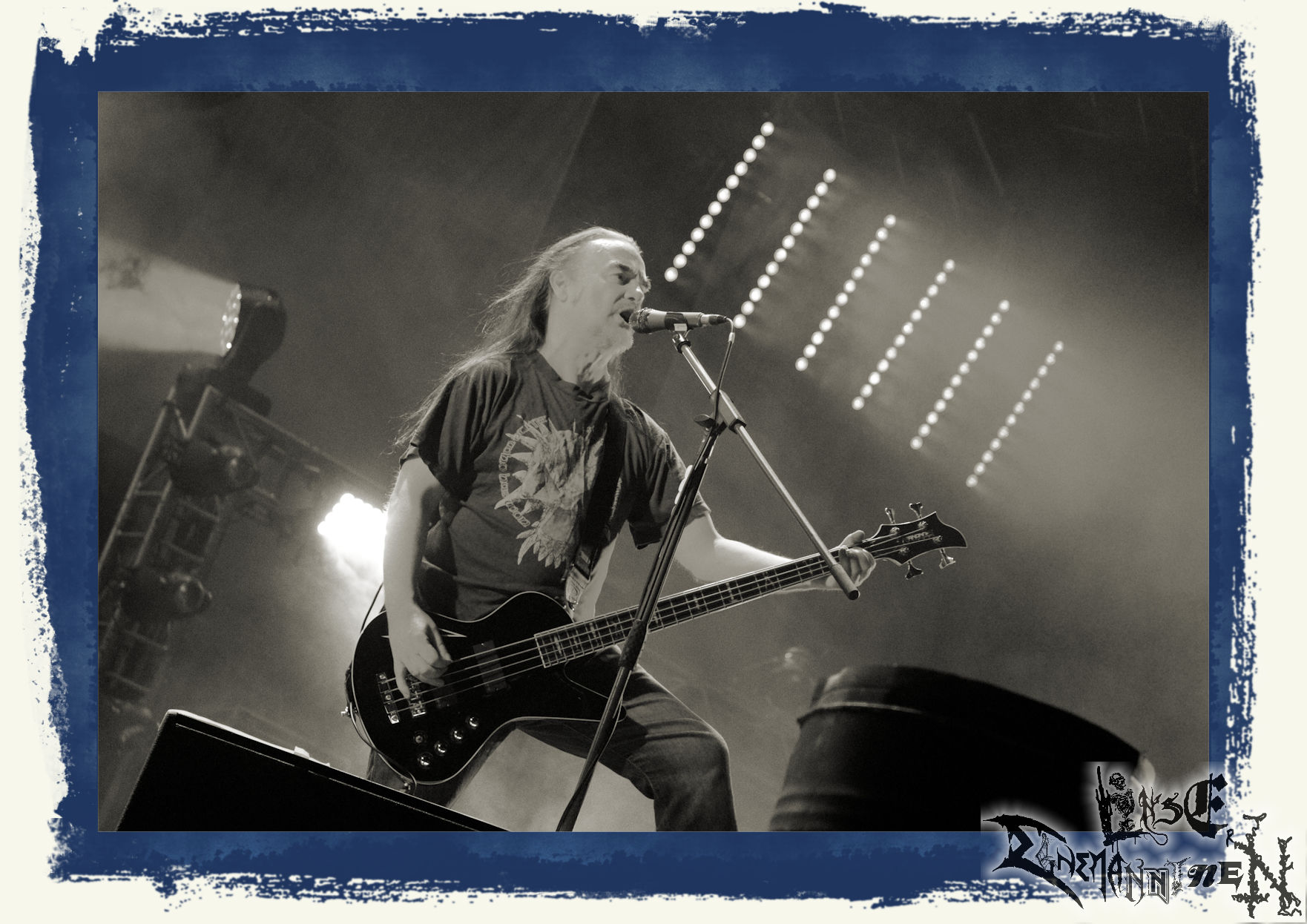 Mit EIS wird der Abend eingeläutet. Die Band aus dem Lupus Lounge – Stall ist wie geschaffen für das Zelt auf dem PARTY.SAN METAL OPEN AIR und beweist eindrucksvoll, wie man Atmosphäre mit mitreißenden Black Metal – Songs kombiniert. Bandkopf Alboin ist gleichzeitig Fan und Vollblutmusiker, der mit den Schwarzmetall-Größen der Neunziger aufgewachsen ist, wobei seine Musik sowohl von diesen, als auch von seiner Bewunderung gegenüber prägenden heimischen Acts wie Helrunar oder auch dem Wirken von Schwadorf mit Sun Of The Sleepless beeinflusst ist. Auch macht er keinen Hehl daraus, dass ihm die Einladung nach Schlotheim mit seiner Band als "Spätberufenem" sehr viel bedeutet. Und diese Haltung schwingt in diesem Konzert mit. Egal, ob Songs vom 2005er-Album "Galeere" ("Durch lichtlose Tiefen", seinerzeit noch unter dem Bandvorgänger Geist veröffentlicht (aus namensrechtlichen Gründen musste man sich danach in Eis umbenennen), vom bisher jüngsten Album "Bannstein" oder vom Klassiker "Wetterkreuz" (2012), der heuer auch schon zehn Jahre auf dem Buckel hat, gespielt werden. Eis zünden ein kleines Highlight, das mir noch lange in Erinnerung bleiben und mich animiert, mir die Scheiben mal wieder zu Gemüte zu führen. Danke!(JD)