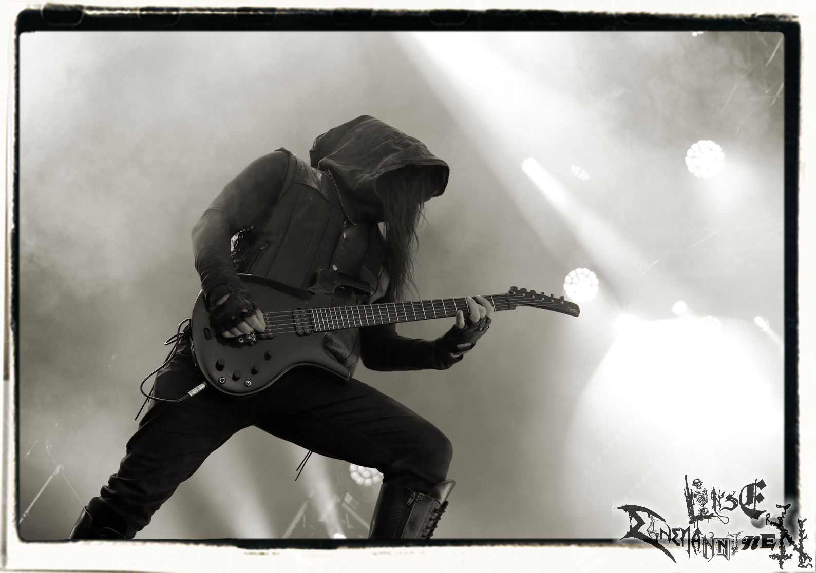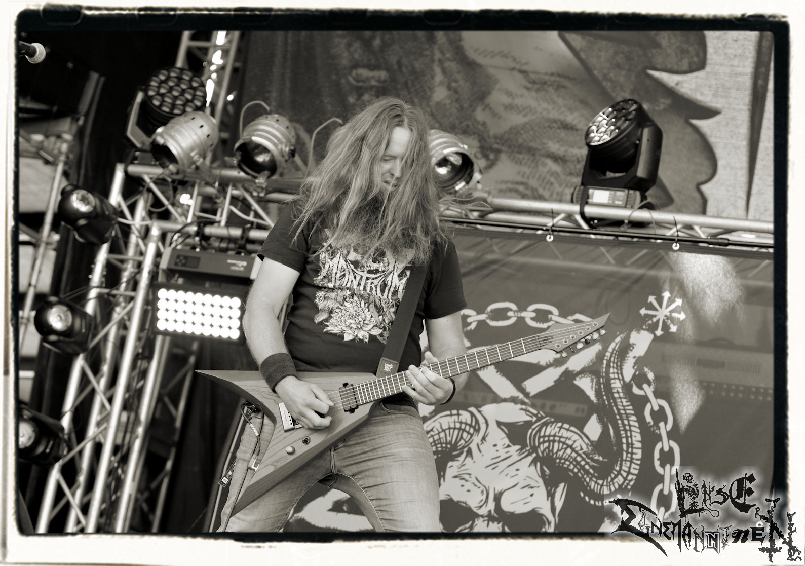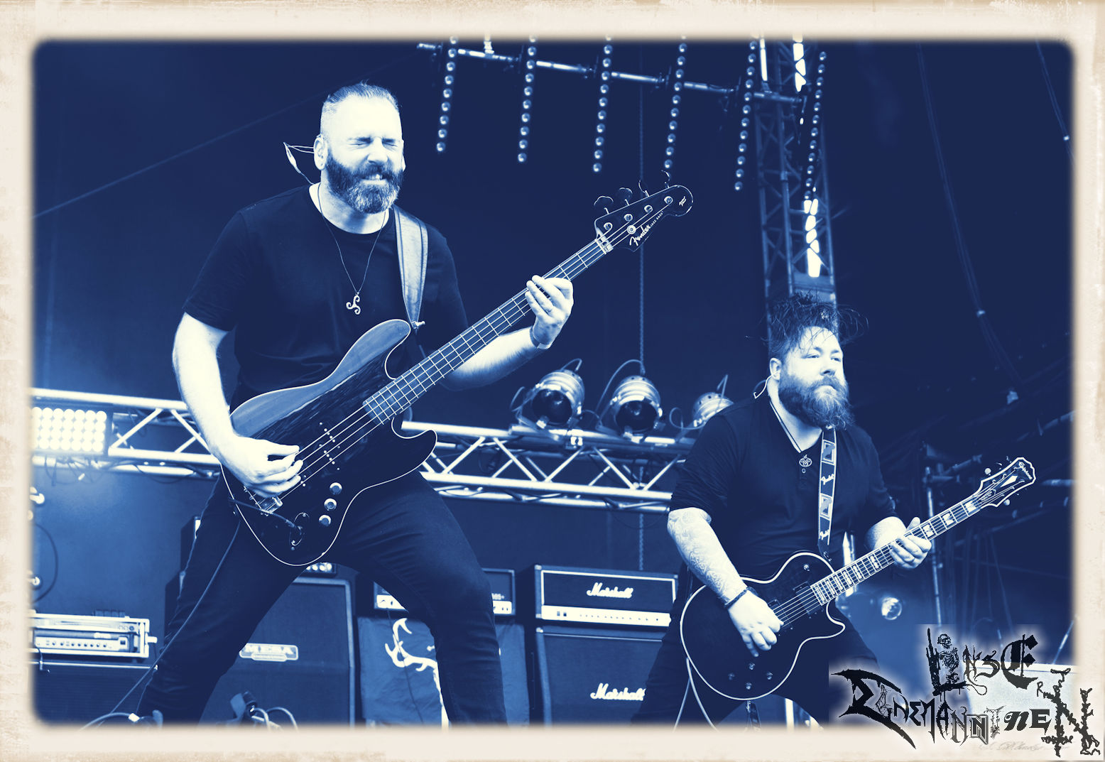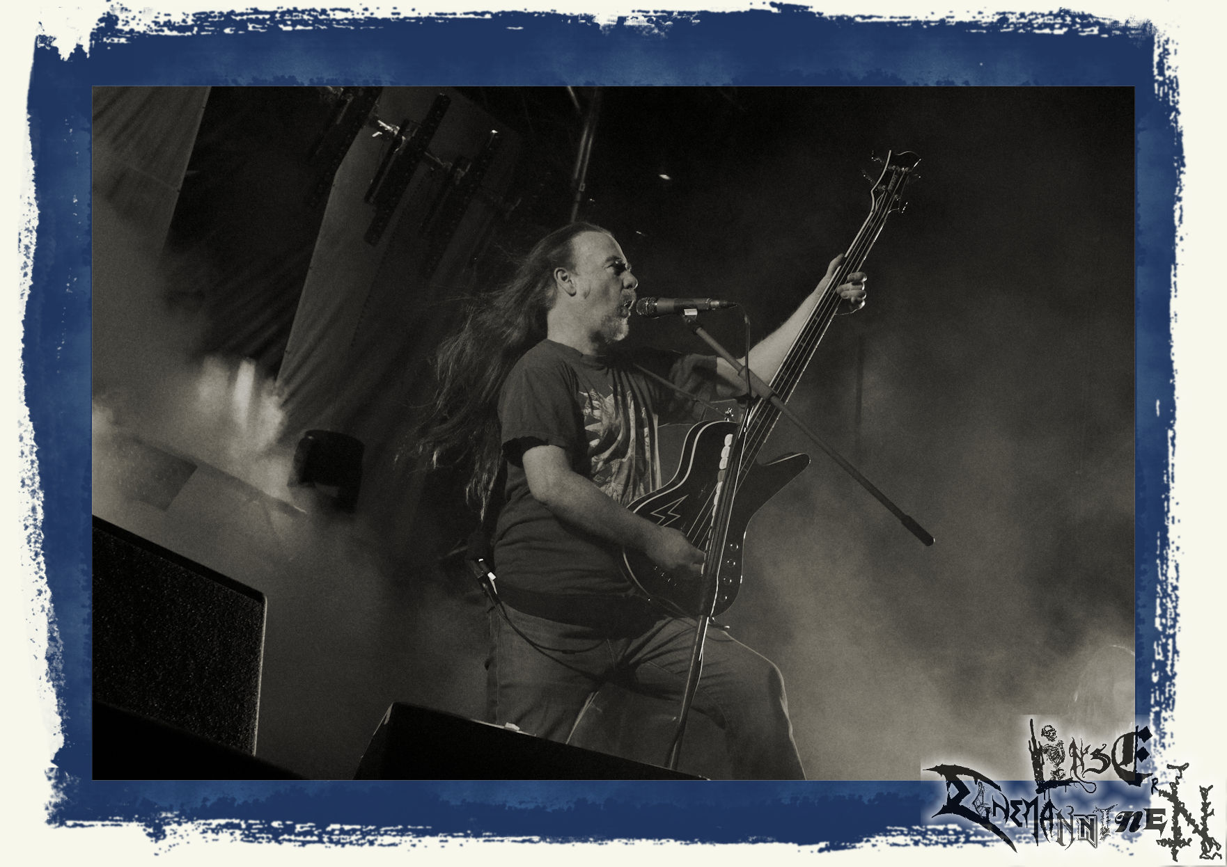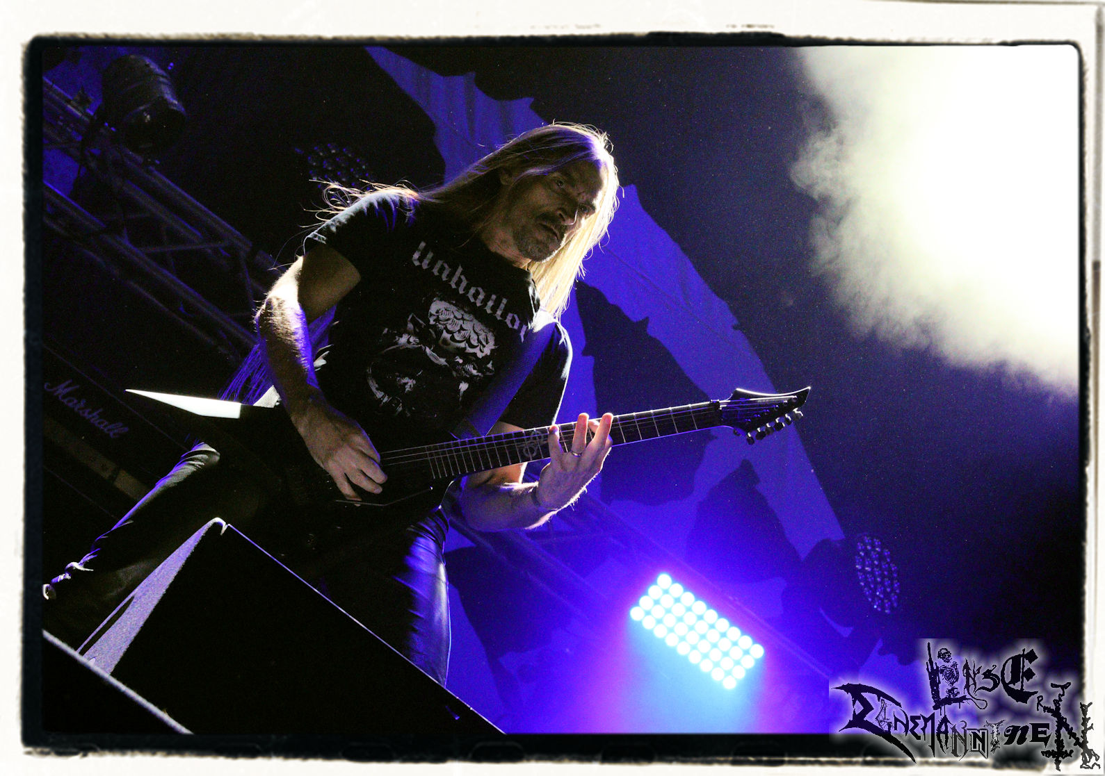 Mit EIS wird der Abend eingeläutet. Die Band aus dem Lupus Lounge – Stall ist wie geschaffen für das Zelt auf dem PARTY.SAN METAL OPEN AIR und beweist eindrucksvoll, wie man Atmosphäre mit mitreißenden Black Metal – Songs kombiniert. Bandkopf Alboin ist gleichzeitig Fan und Vollblutmusiker, der mit den Schwarzmetall-Größen der Neunziger aufgewachsen ist, wobei seine Musik sowohl von diesen, als auch von seiner Bewunderung gegenüber prägenden heimischen Acts wie Helrunar oder auch dem Wirken von Schwadorf mit Sun Of The Sleepless beeinflusst ist. Auch macht er keinen Hehl daraus, dass ihm die Einladung nach Schlotheim mit seiner Band als "Spätberufenem" sehr viel bedeutet. Und diese Haltung schwingt in diesem Konzert mit. Egal, ob Songs vom 2005er-Album "Galeere" ("Durch lichtlose Tiefen", seinerzeit noch unter dem Bandvorgänger Geist veröffentlicht (aus namensrechtlichen Gründen musste man sich danach in Eis umbenennen), vom bisher jüngsten Album "Bannstein" oder vom Klassiker "Wetterkreuz" (2012), der heuer auch schon zehn Jahre auf dem Buckel hat, gespielt werden. Eis zünden ein kleines Highlight, das mir noch lange in Erinnerung bleiben und mich animiert, mir die Scheiben mal wieder zu Gemüte zu führen. Danke!(JD)