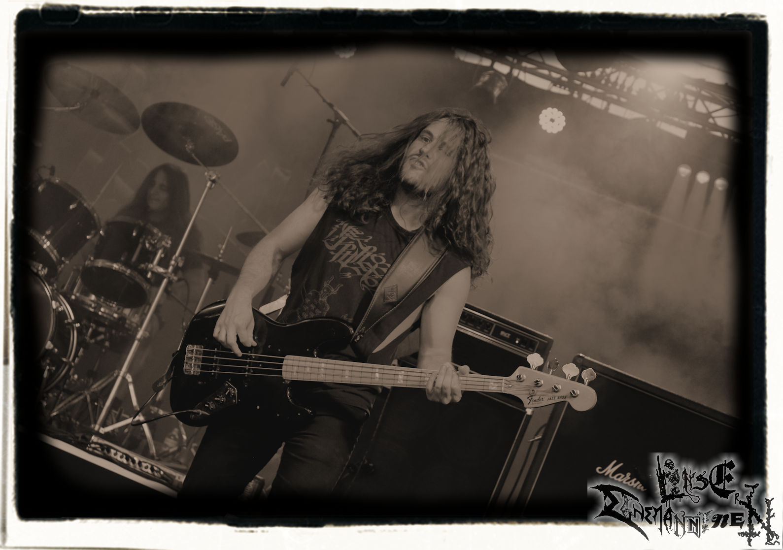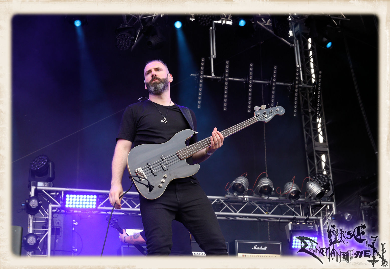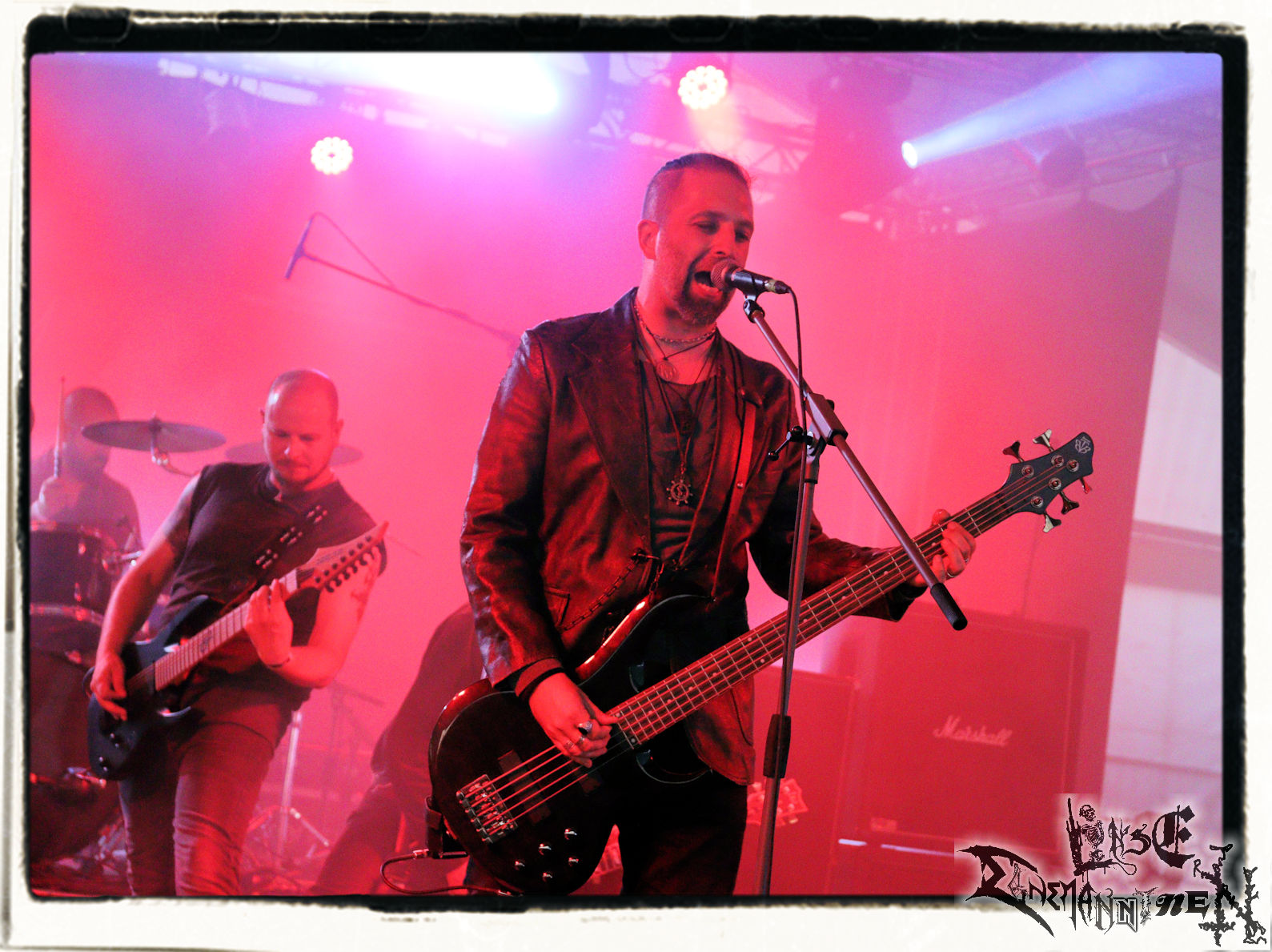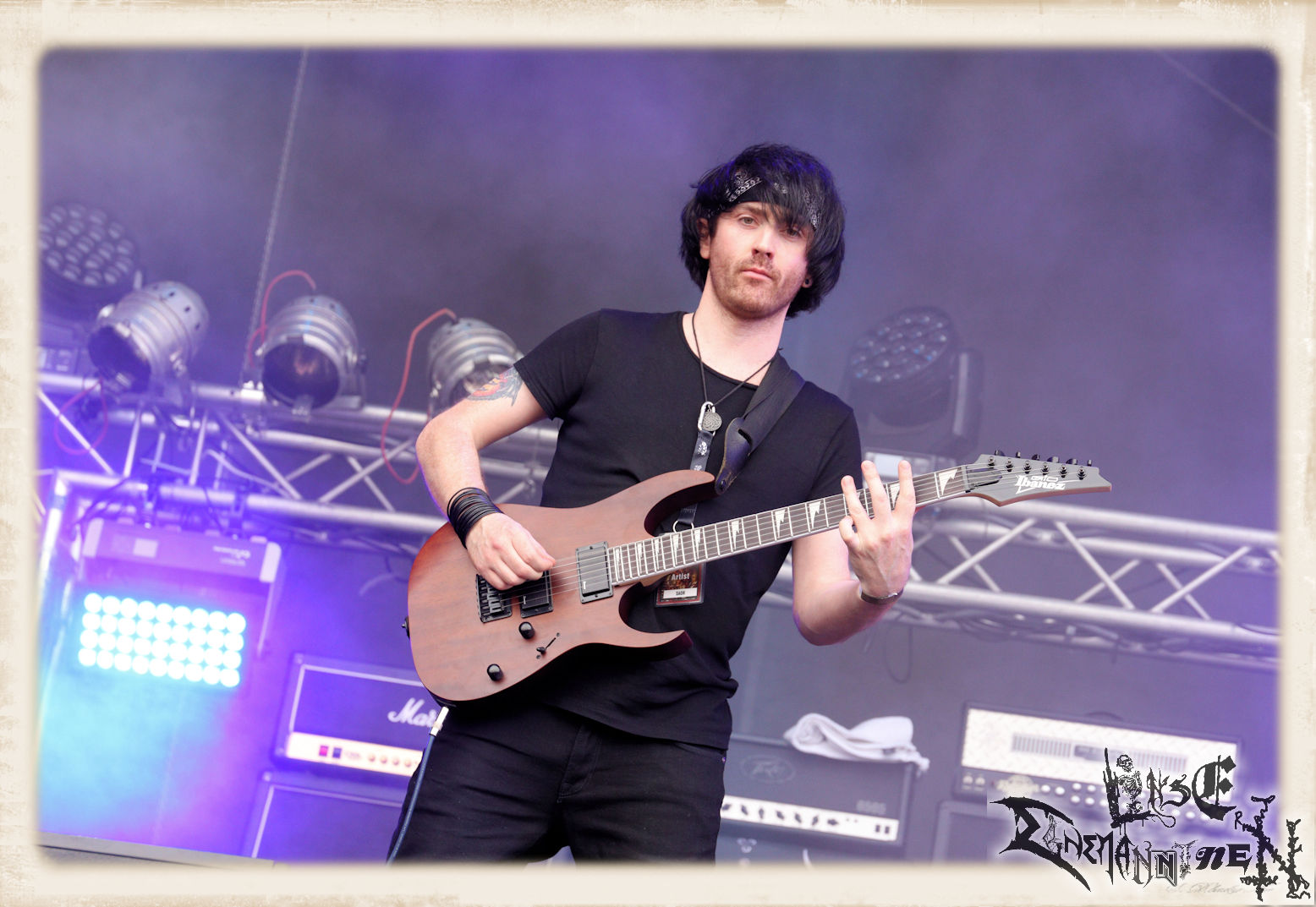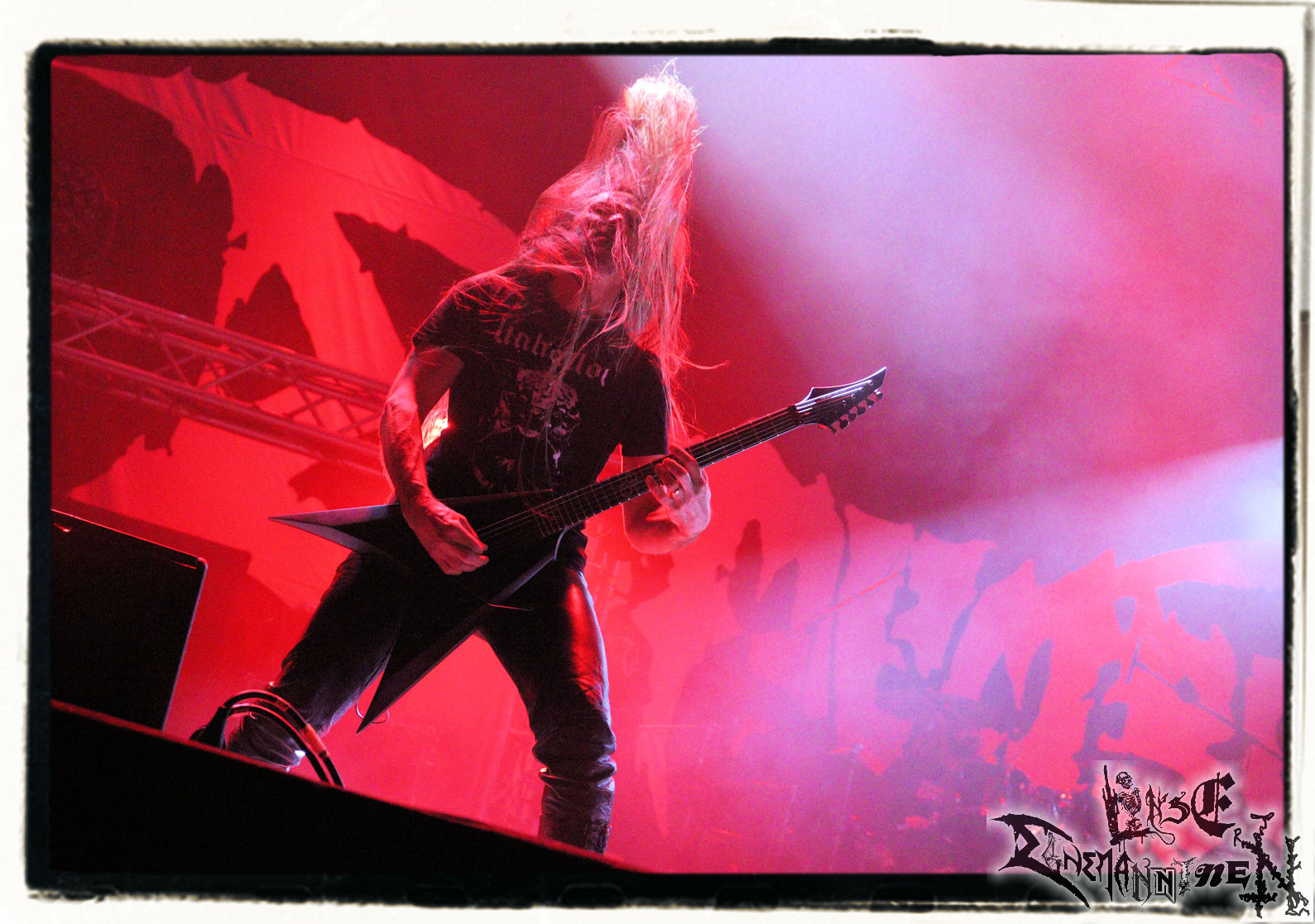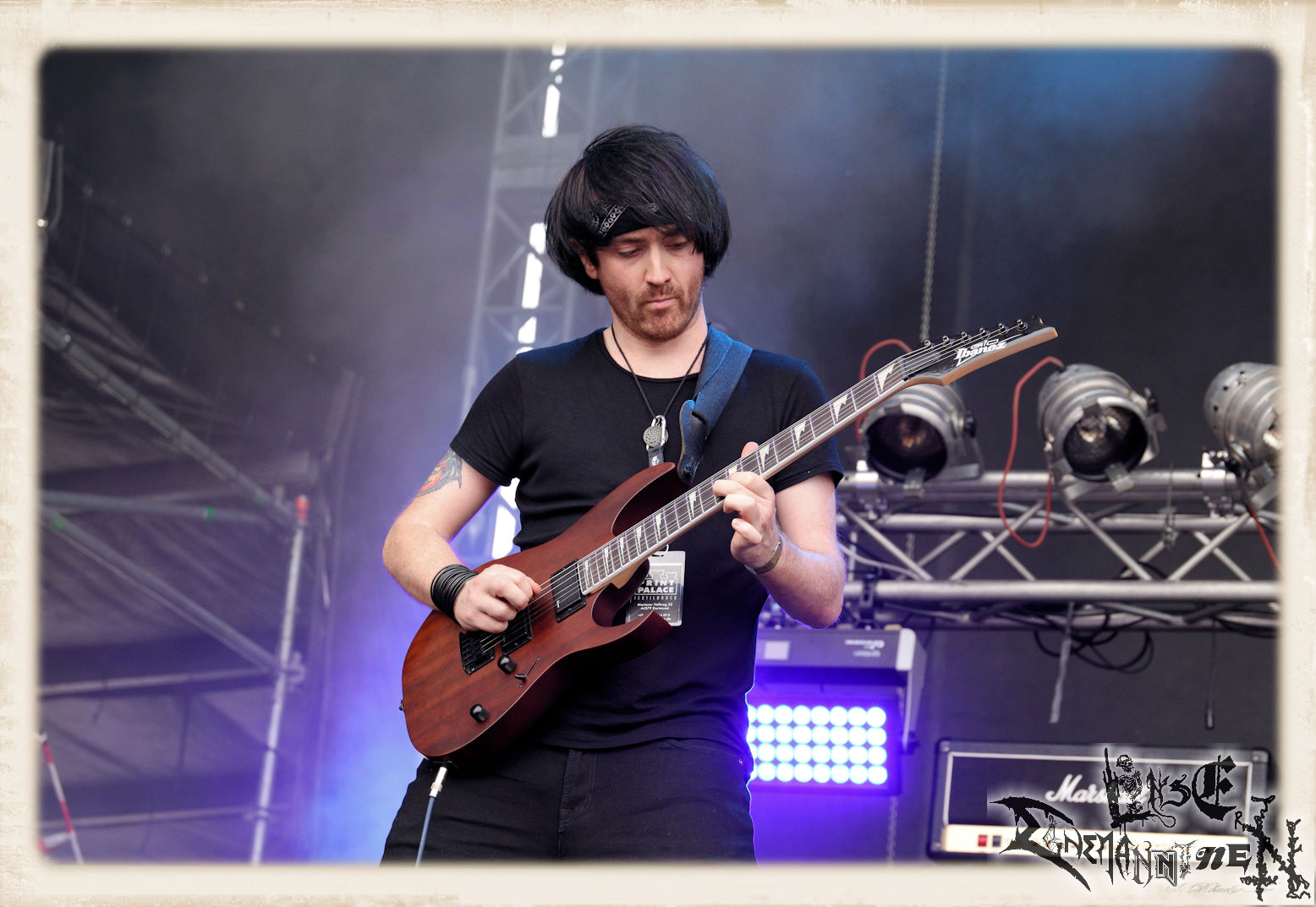 Mit EIS wird der Abend eingeläutet. Die Band aus dem Lupus Lounge – Stall ist wie geschaffen für das Zelt auf dem PARTY.SAN METAL OPEN AIR und beweist eindrucksvoll, wie man Atmosphäre mit mitreißenden Black Metal – Songs kombiniert. Bandkopf Alboin ist gleichzeitig Fan und Vollblutmusiker, der mit den Schwarzmetall-Größen der Neunziger aufgewachsen ist, wobei seine Musik sowohl von diesen, als auch von seiner Bewunderung gegenüber prägenden heimischen Acts wie Helrunar oder auch dem Wirken von Schwadorf mit Sun Of The Sleepless beeinflusst ist. Auch macht er keinen Hehl daraus, dass ihm die Einladung nach Schlotheim mit seiner Band als "Spätberufenem" sehr viel bedeutet. Und diese Haltung schwingt in diesem Konzert mit. Egal, ob Songs vom 2005er-Album "Galeere" ("Durch lichtlose Tiefen", seinerzeit noch unter dem Bandvorgänger Geist veröffentlicht (aus namensrechtlichen Gründen musste man sich danach in Eis umbenennen), vom bisher jüngsten Album "Bannstein" oder vom Klassiker "Wetterkreuz" (2012), der heuer auch schon zehn Jahre auf dem Buckel hat, gespielt werden. Eis zünden ein kleines Highlight, das mir noch lange in Erinnerung bleiben und mich animiert, mir die Scheiben mal wieder zu Gemüte zu führen. Danke!(JD)