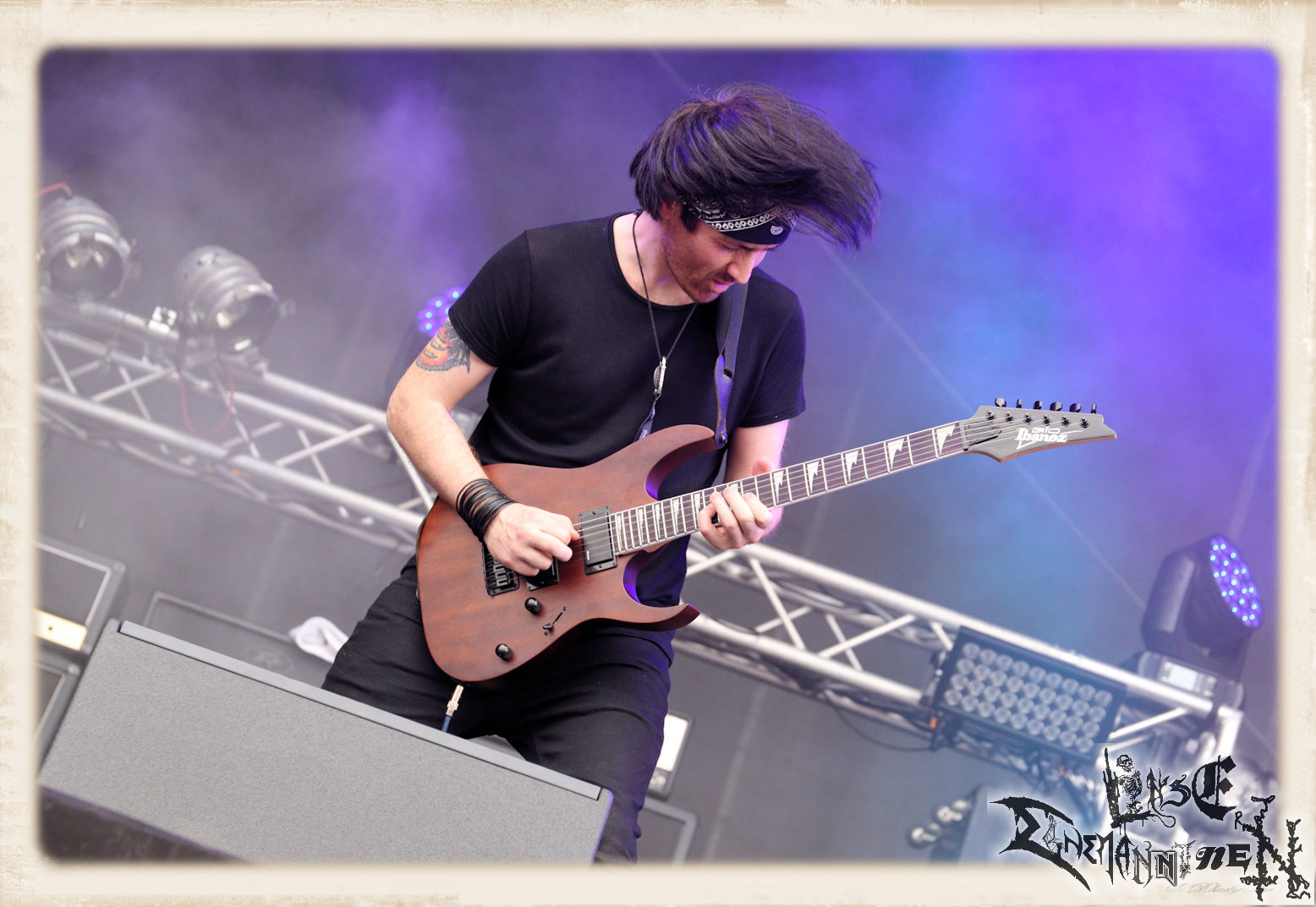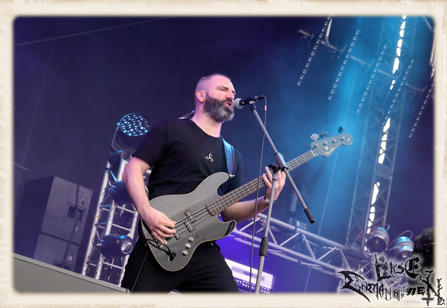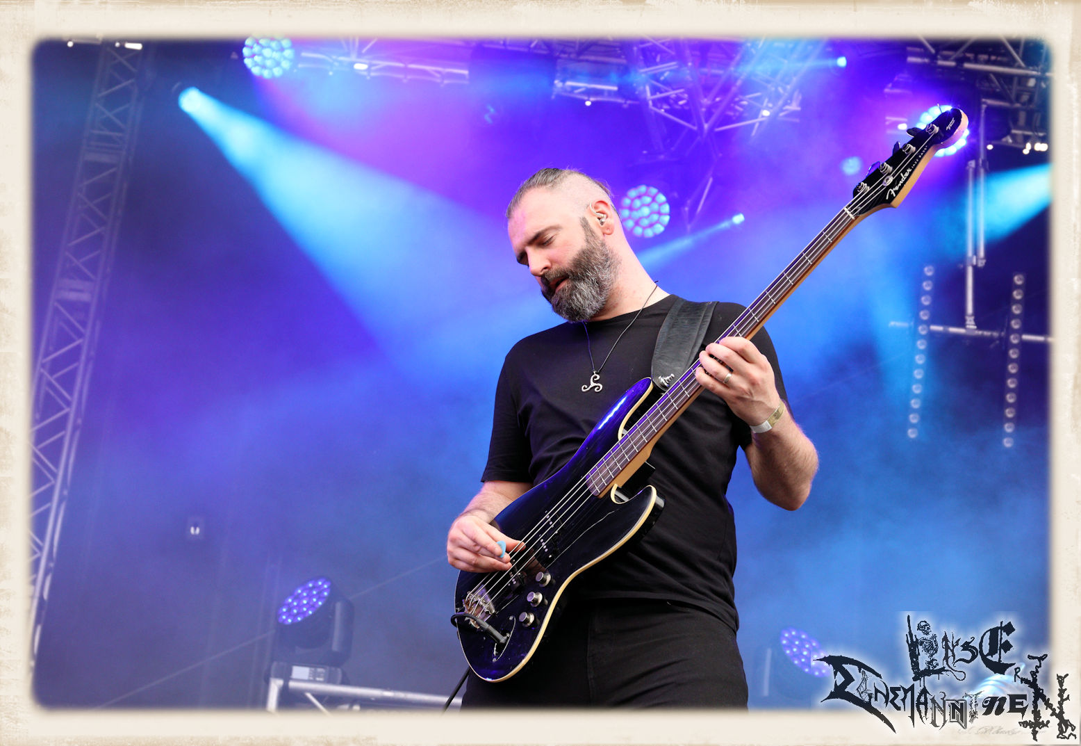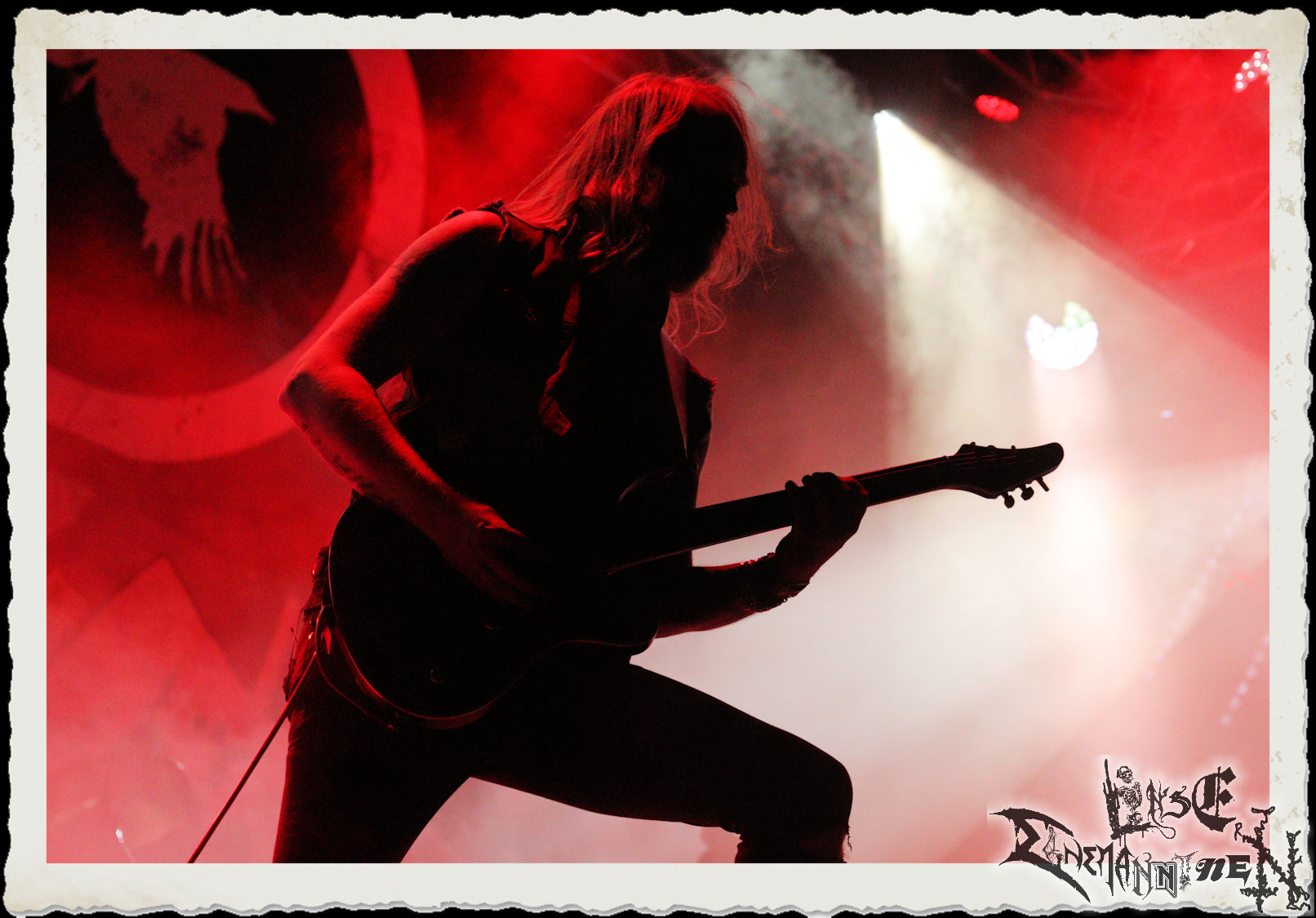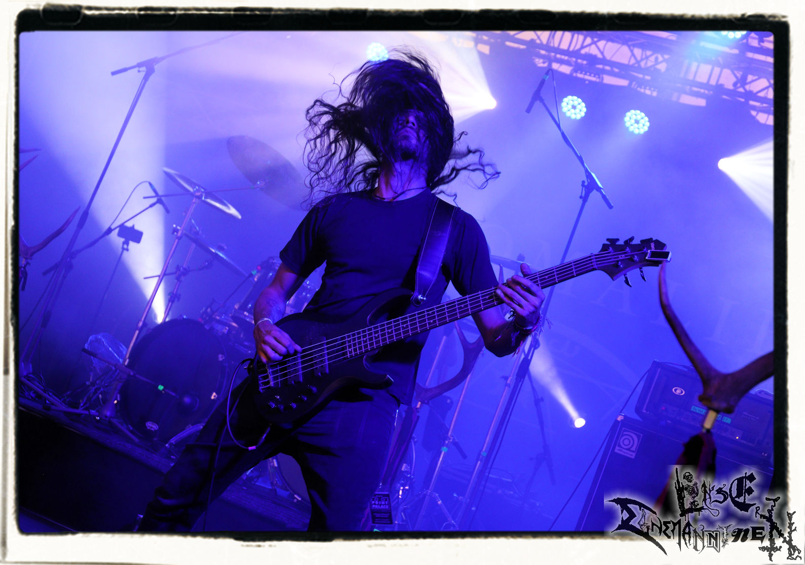 Mit EIS wird der Abend eingeläutet. Die Band aus dem Lupus Lounge – Stall ist wie geschaffen für das Zelt auf dem PARTY.SAN METAL OPEN AIR und beweist eindrucksvoll, wie man Atmosphäre mit mitreißenden Black Metal – Songs kombiniert. Bandkopf Alboin ist gleichzeitig Fan und Vollblutmusiker, der mit den Schwarzmetall-Größen der Neunziger aufgewachsen ist, wobei seine Musik sowohl von diesen, als auch von seiner Bewunderung gegenüber prägenden heimischen Acts wie Helrunar oder auch dem Wirken von Schwadorf mit Sun Of The Sleepless beeinflusst ist. Auch macht er keinen Hehl daraus, dass ihm die Einladung nach Schlotheim mit seiner Band als "Spätberufenem" sehr viel bedeutet. Und diese Haltung schwingt in diesem Konzert mit. Egal, ob Songs vom 2005er-Album "Galeere" ("Durch lichtlose Tiefen", seinerzeit noch unter dem Bandvorgänger Geist veröffentlicht (aus namensrechtlichen Gründen musste man sich danach in Eis umbenennen), vom bisher jüngsten Album "Bannstein" oder vom Klassiker "Wetterkreuz" (2012), der heuer auch schon zehn Jahre auf dem Buckel hat, gespielt werden. Eis zünden ein kleines Highlight, das mir noch lange in Erinnerung bleiben und mich animiert, mir die Scheiben mal wieder zu Gemüte zu führen. Danke!(JD)