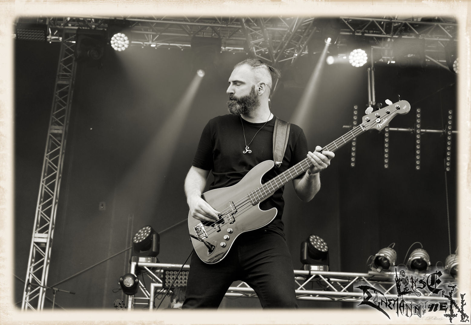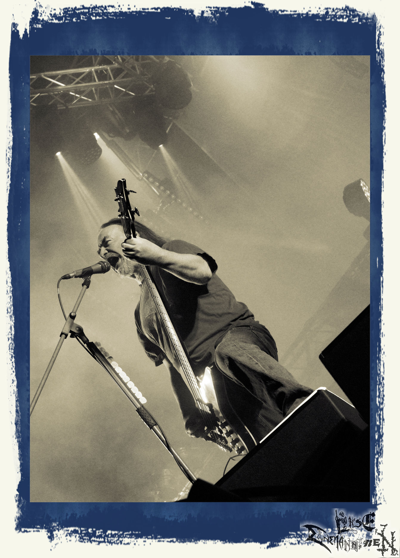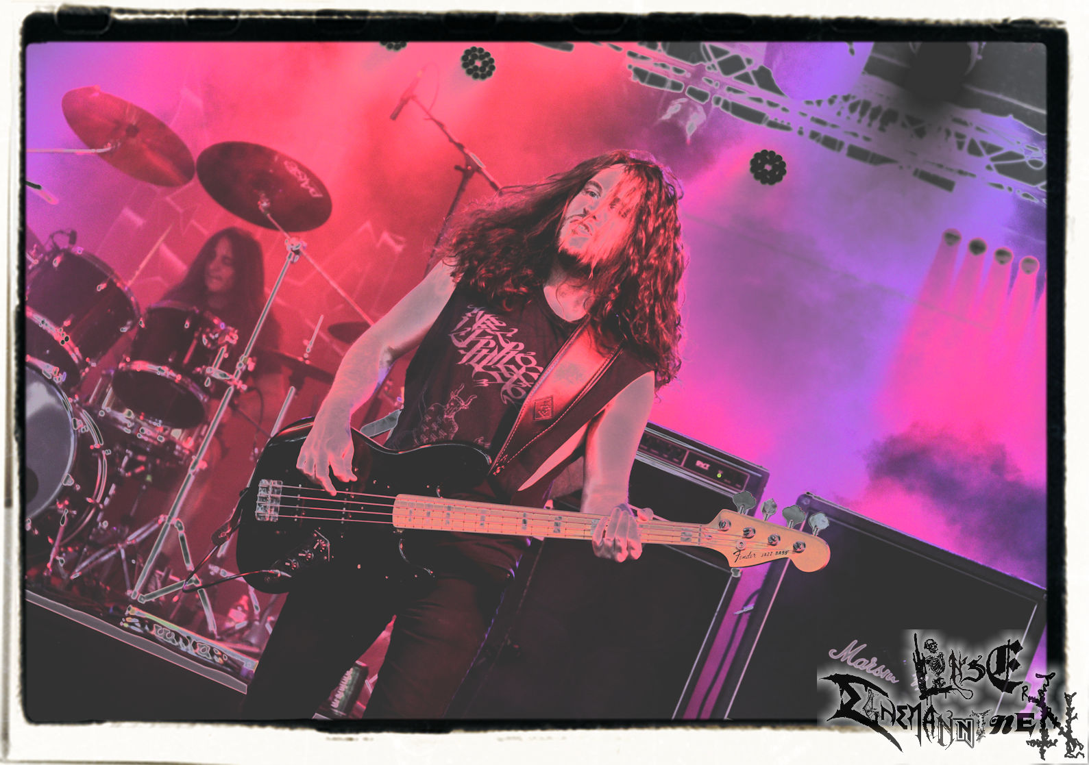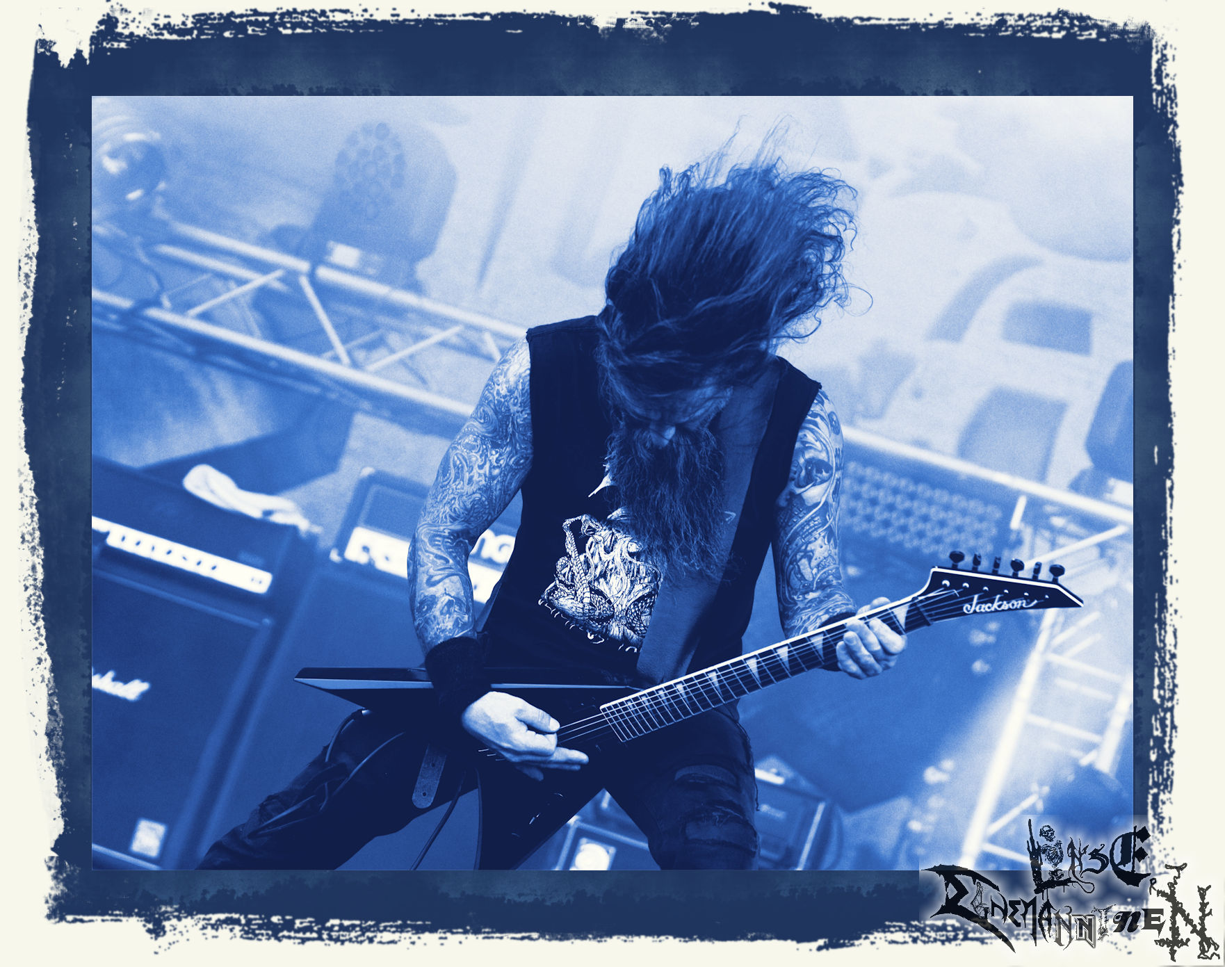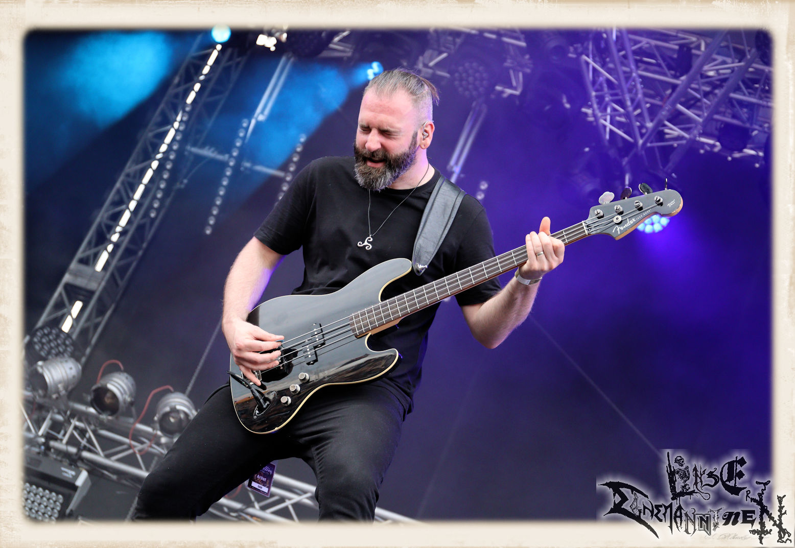 Mit EIS wird der Abend eingeläutet. Die Band aus dem Lupus Lounge – Stall ist wie geschaffen für das Zelt auf dem PARTY.SAN METAL OPEN AIR und beweist eindrucksvoll, wie man Atmosphäre mit mitreißenden Black Metal – Songs kombiniert. Bandkopf Alboin ist gleichzeitig Fan und Vollblutmusiker, der mit den Schwarzmetall-Größen der Neunziger aufgewachsen ist, wobei seine Musik sowohl von diesen, als auch von seiner Bewunderung gegenüber prägenden heimischen Acts wie Helrunar oder auch dem Wirken von Schwadorf mit Sun Of The Sleepless beeinflusst ist. Auch macht er keinen Hehl daraus, dass ihm die Einladung nach Schlotheim mit seiner Band als "Spätberufenem" sehr viel bedeutet. Und diese Haltung schwingt in diesem Konzert mit. Egal, ob Songs vom 2005er-Album "Galeere" ("Durch lichtlose Tiefen", seinerzeit noch unter dem Bandvorgänger Geist veröffentlicht (aus namensrechtlichen Gründen musste man sich danach in Eis umbenennen), vom bisher jüngsten Album "Bannstein" oder vom Klassiker "Wetterkreuz" (2012), der heuer auch schon zehn Jahre auf dem Buckel hat, gespielt werden. Eis zünden ein kleines Highlight, das mir noch lange in Erinnerung bleiben und mich animiert, mir die Scheiben mal wieder zu Gemüte zu führen. Danke!(JD)