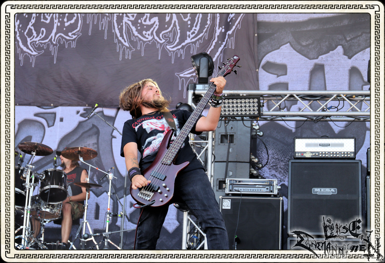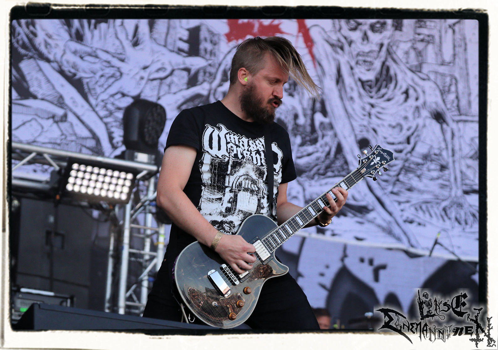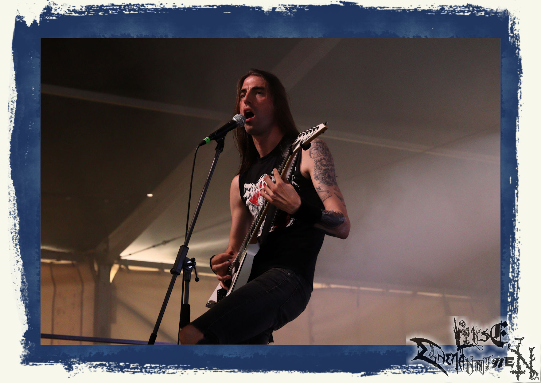 Bevor es rüber ins Zelt zu NYKTOPHOBIA geht, werde ich kurzerhand erstmal von den Portugiesen GAEREA durchweg positiv überrascht. Seit 2016 hat es das Quintett bereits auf zwei Longplayer, eine EP und eine Single gebracht. Das neue Album "Mirage" steht in den Startlöchern und schon jetzt steht fest: Mit den Südeuropäern, deren melodischer und atmosphärischer Black Metal mitunter an Uada erinnert, dürfte zukünftig zu rechnen sein. Nyktophobia bestätigen in beeindruckender Weise die Leistung, mit der sie unsere heimischen Vorreiter Night In Gales auf der gemeinsamen Split Anfang des Jahres in den Schatten gestellt haben. Melodischer Death Metal mit einem Hauch von hymnenhafter Epik und klassischem Heavy Metal, mit viel Enthusiasmus und Spielfreude dargeboten. Das wird zu Recht honoriert und ist ein Genuss für Augen und Ohren.