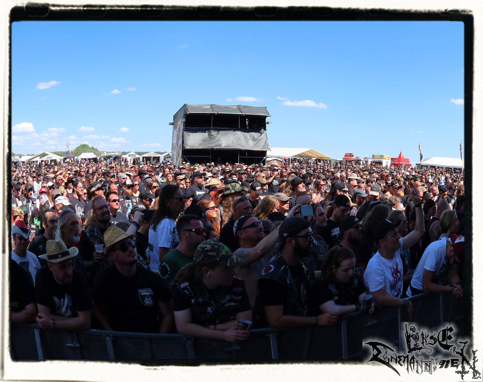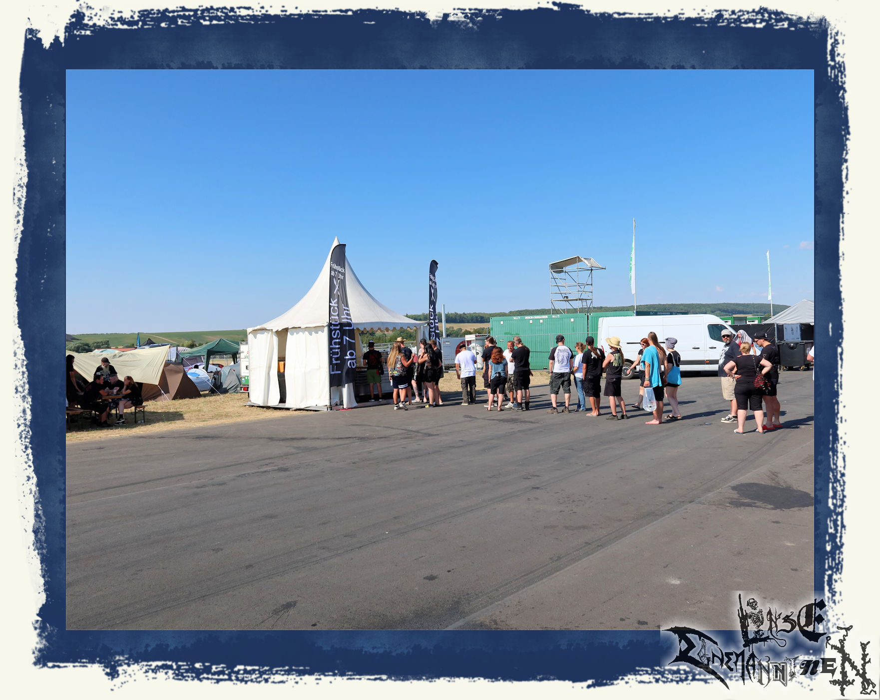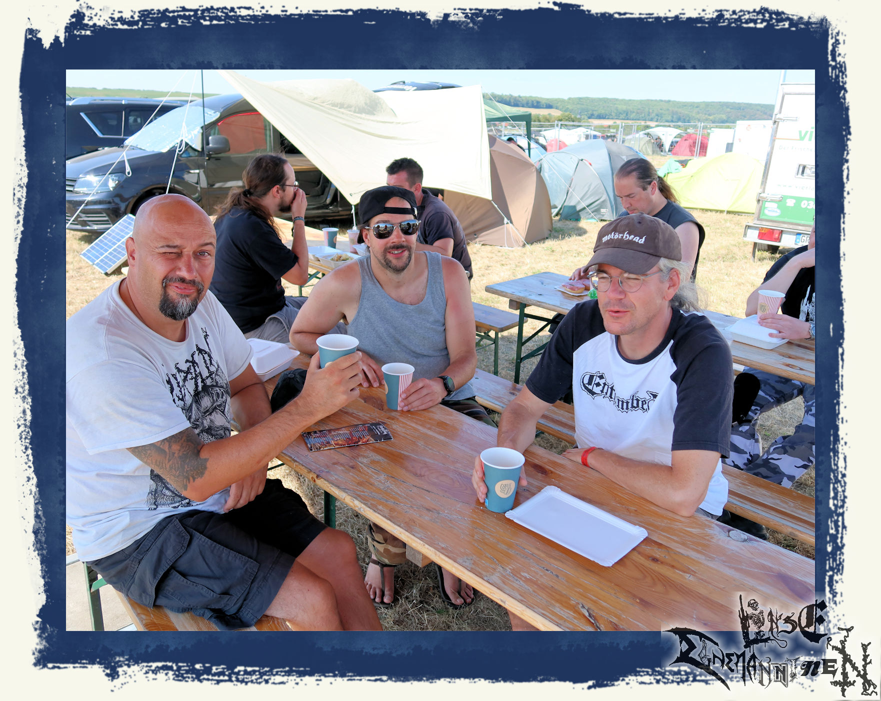 Denn es folgte nicht nur eine der entspanntesten Fahrten nach Schlotheim. Der Check-In, der Aufbau des Camps auch nach drei Jahren routiniert wie immer... Und mit jeder Stunde, mit jedem Freund und Weggefährten, der eintraf, lösten sich alle Befürchtungen, alle Anspannung langsam aber sicher auf. Das sollte sich nicht nur am Abend im Partyzelt bei Bier und original Thüringer Bratwurst, sondern mit jeder Band am Wochenende fortsetzen.