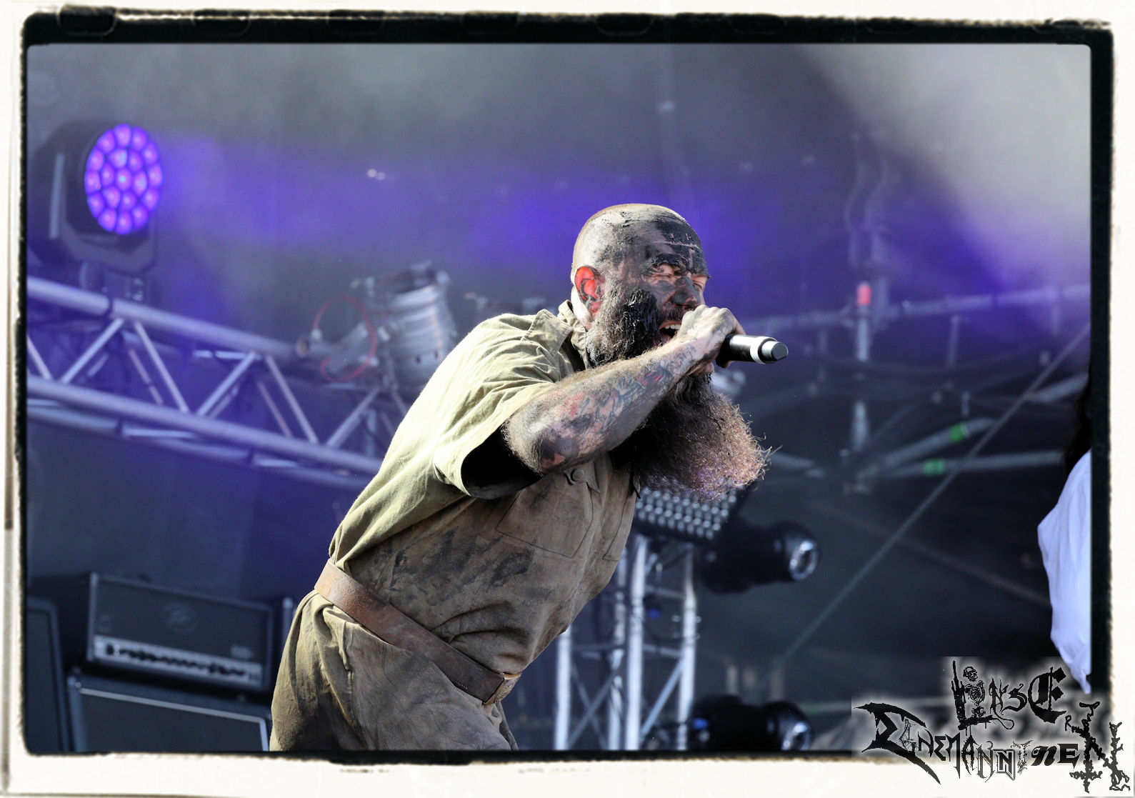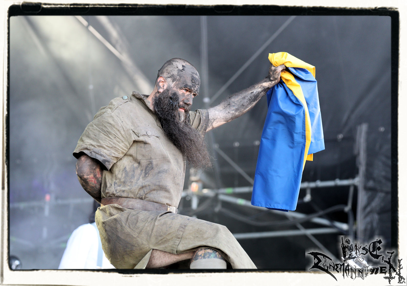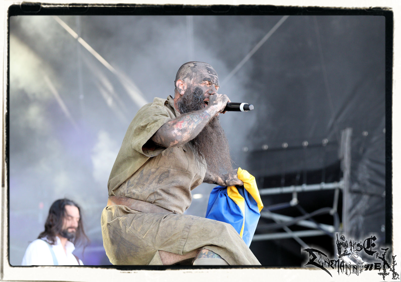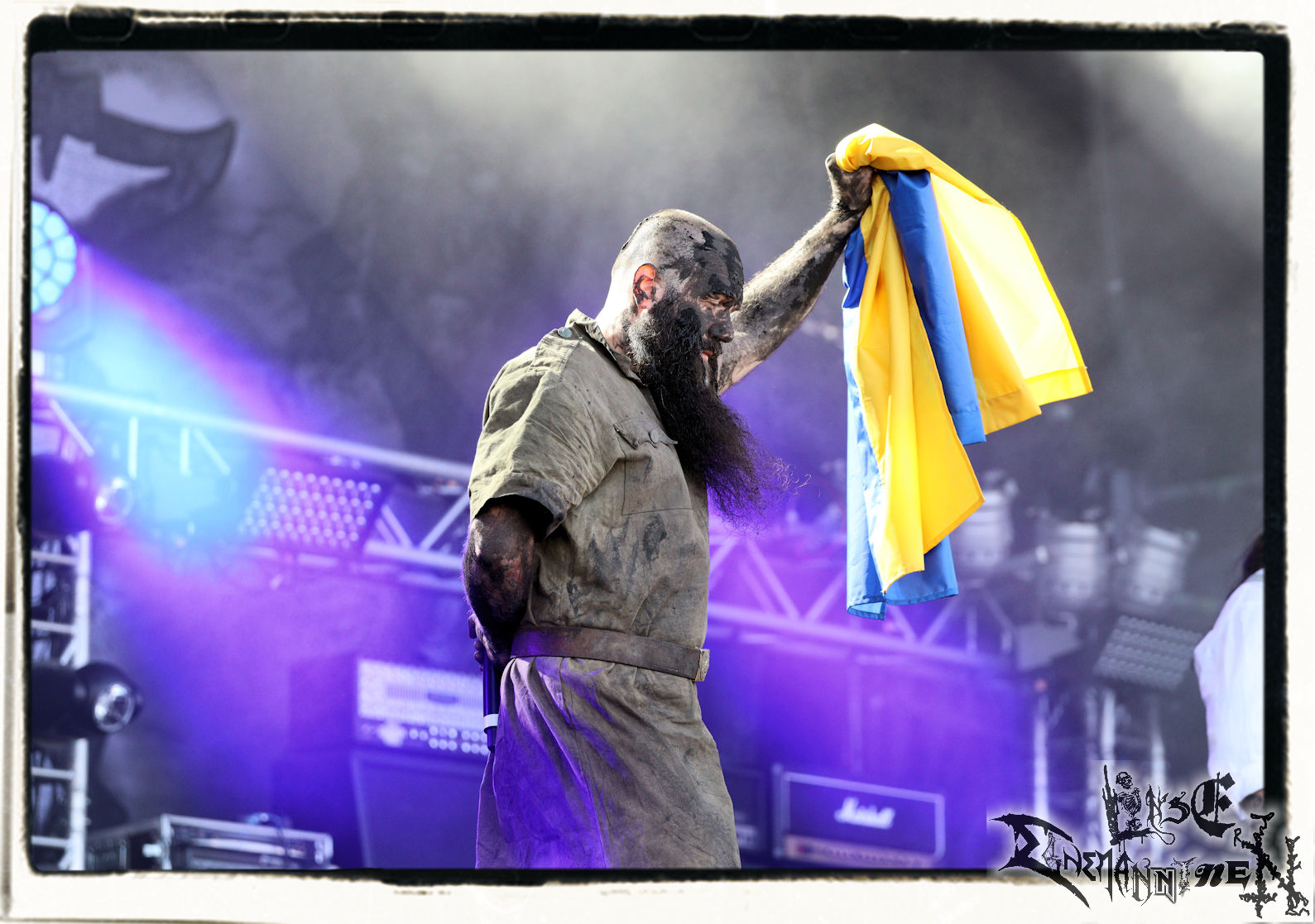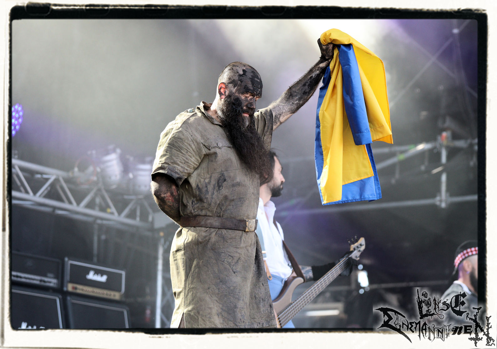 Das PARTY.SAN schreibt mit dem Auftritt von 1914 danach eine ganz besondere Geschichte. Die ukrainische Band war lange Zeit auf dem Billing, die Vorfreude nach der Veröffentlichung des aktuellen Albums "Where Fear And Weapons Meet" im vergangenen Jahr groß, bis der Irre aus Moskau sich im Februar entschlossen hat, seiner Großmachtsphantasie einmal mehr freien Lauf zu lassen. Seither befindet sich die Ukraine im Kriegszustand, die Band musste folglich absagen, bis man schließlich doch eine Ausnahmegenehmigung für die vorübergehende Ausreise bekam, um den Gig auf dem Festival wahrnehmen zu können. Die Band ist für intensive Shows, die den Krieg nicht nur musikalisch schonungslos thematisieren, bekannt. Sieht man Sänger Kumarberg an diesem Mittag mit der ukrainischen Flagge auf der Bühne stehen, gefriert einem schon fast das Blut in den Adern, denn hier wird die Kunst von der Realität in unbarmherziger Weise eingeholt. Der Band ist die Situation in ihrer Heimat auf der Bühne nicht anzumerken. Der Death Metal von 1914 klingt schmerzhafter denn je zuvor, genauso wie die Kritik am Zaudern und Hadern der westlichen, insbesondere aber der deutschen Regierung. Der Sänger erinnert das Publikum zudem, dass die ukrainische Bevölkerung derzeit aufopferungsvoll genau die Werte verteidigt, mit denen man sich in Mitteleuropa gerne brüstet. Die Musik ist der Kern, wird während des Gigs von 1914 jedoch zur Nebensache, denn allein die Präsenz von 1914 ist unabhängig von der Performance an diesem Wochenende außergewöhnlich und wichtig! SLAVA UKRAINI!!!