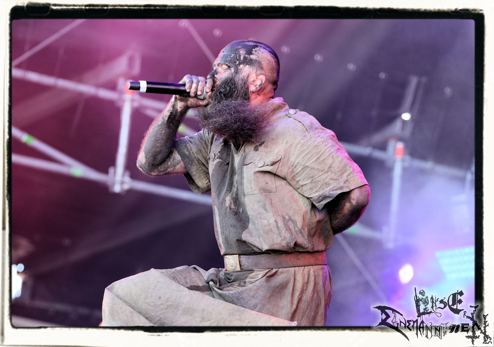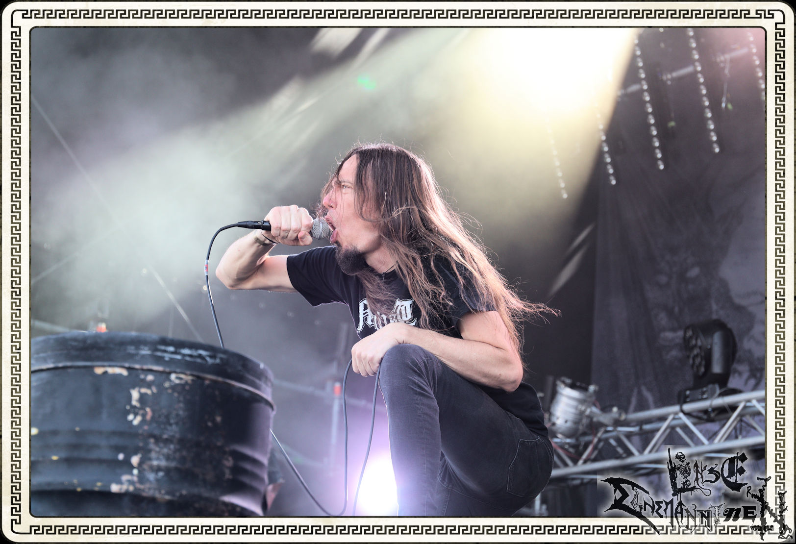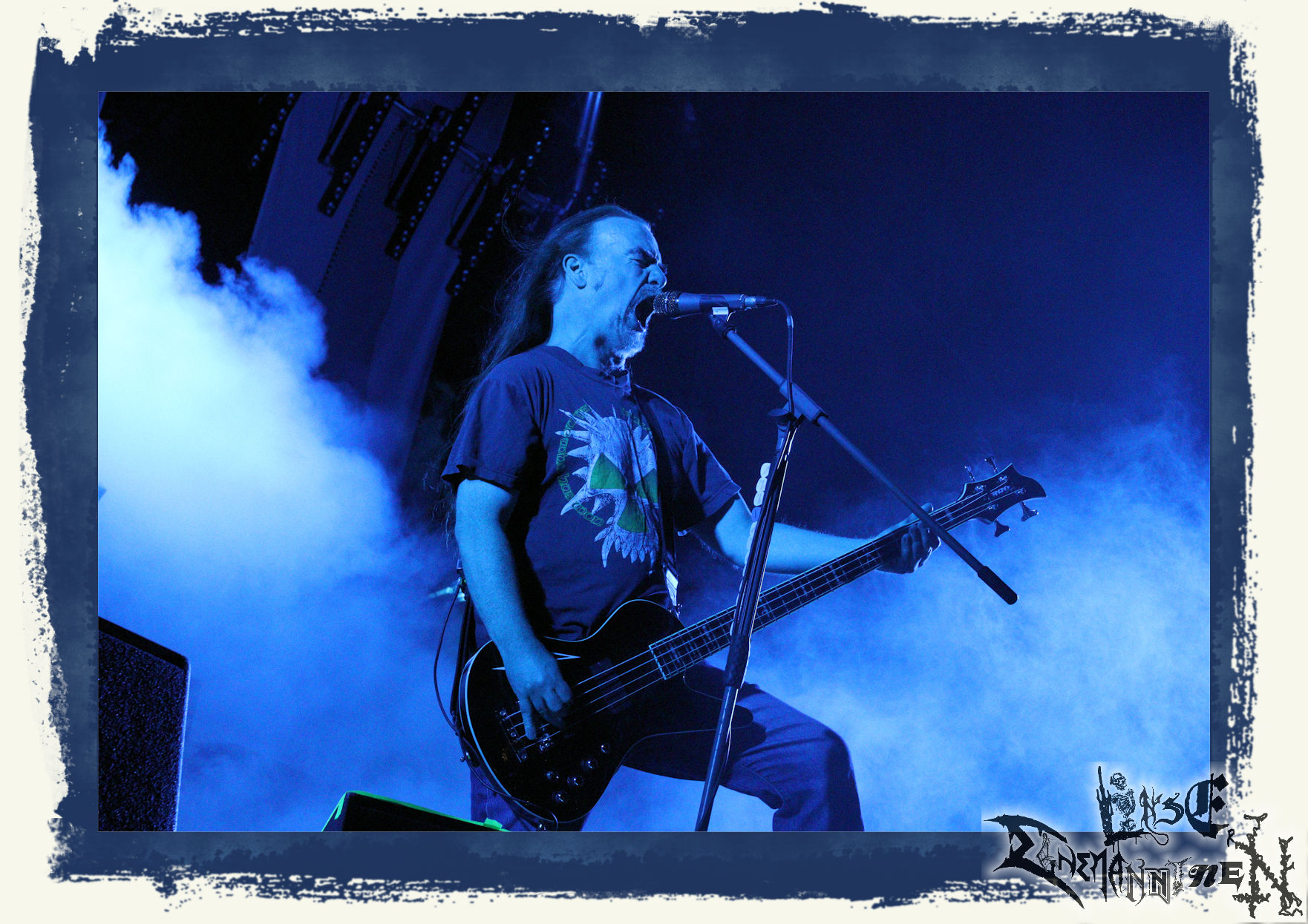 Was ASPHYX danach abziehen, lässt sich kaum in Worte fassen. Klar, das niederländische Todesmetall-Maschine ist eng mit dem PARTY.SAN METAL OPEN AIR verbunden, die Band ist menschlicher wie musikalischer Sympathieträger und Schreihals Martin van Drunen eine Gallionsfigur zum Anfassen: Trotzdem lässt sich das Phänomen Asphyx damit nicht erklären. Live scheinen die Holländer trotz fortgeschrittenen Alters immer und immer besser zu werden. Egal ob sie im Stile von "The Rack", "The Nameless Elite" oder "Knights Templar Stand" doomig schleifen, Bolt Thrower huldigen ("Molten Black Earth") oder alles in ihrer unnachahmliche Art in Grund und Boden prügeln, wie bei "Deathhammer", "Botox Implosion", "Death, The Brutal Way" oder "Wasteland Of Terror". Es ist unmöglich, dieser Soundwalze zu entkommen. Lieder von Krieg, Mord und Totschlag.