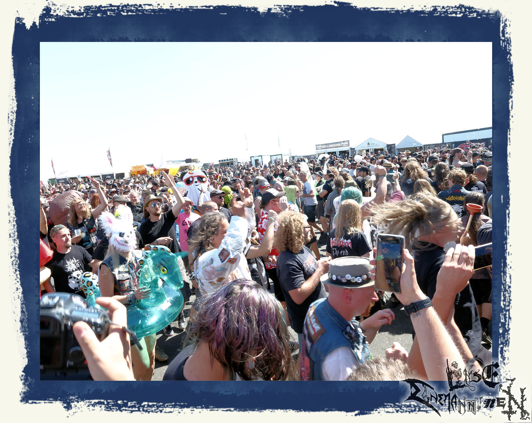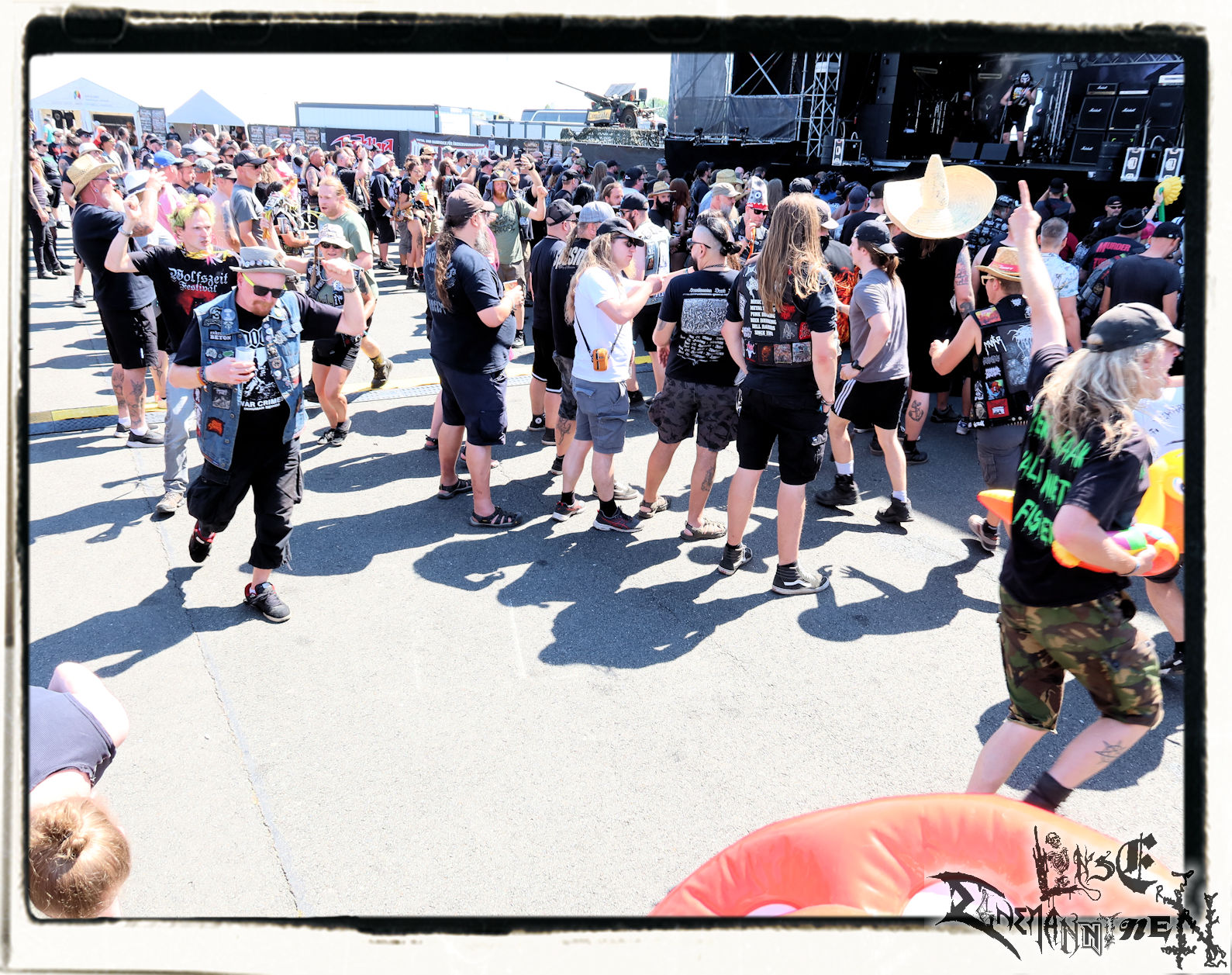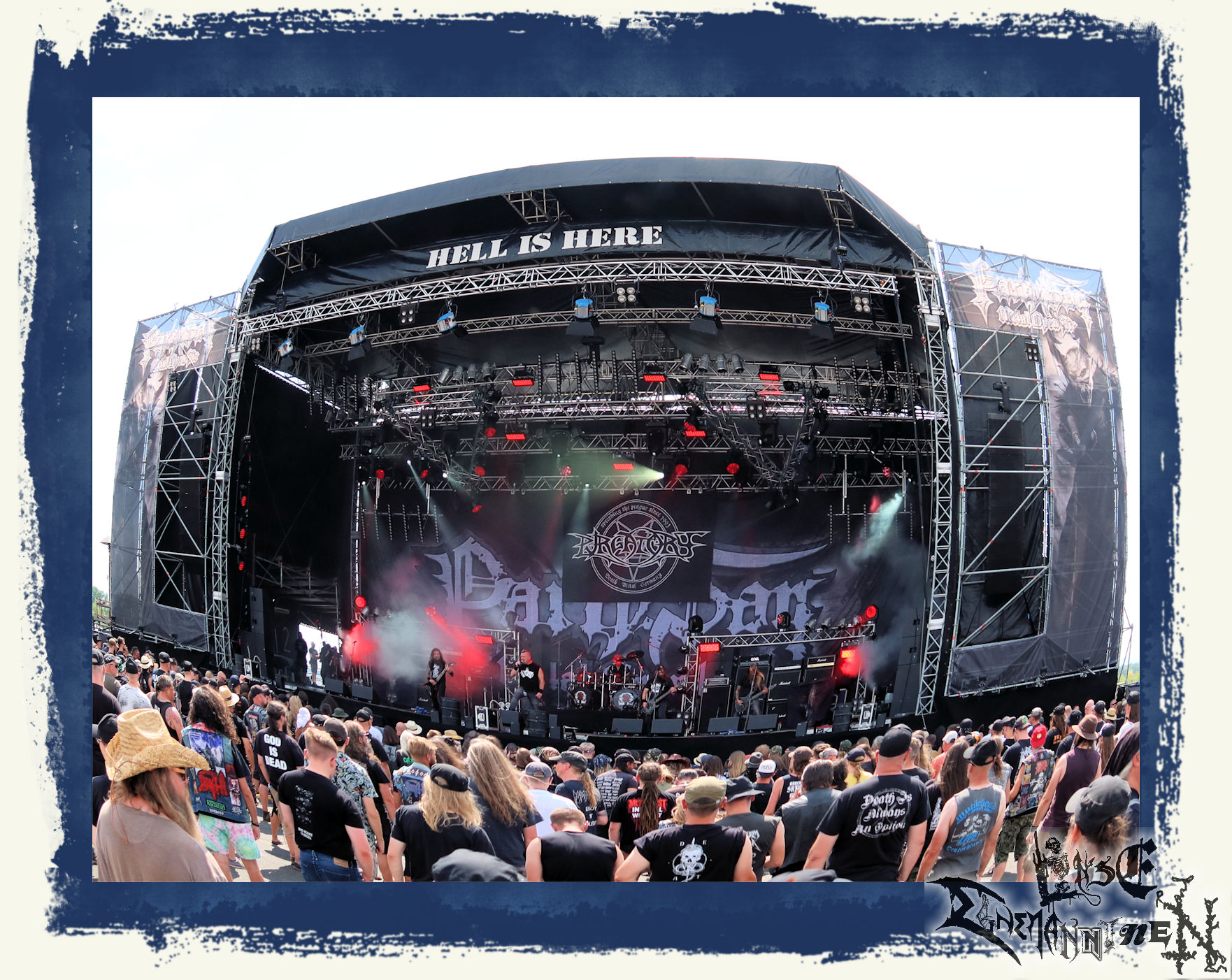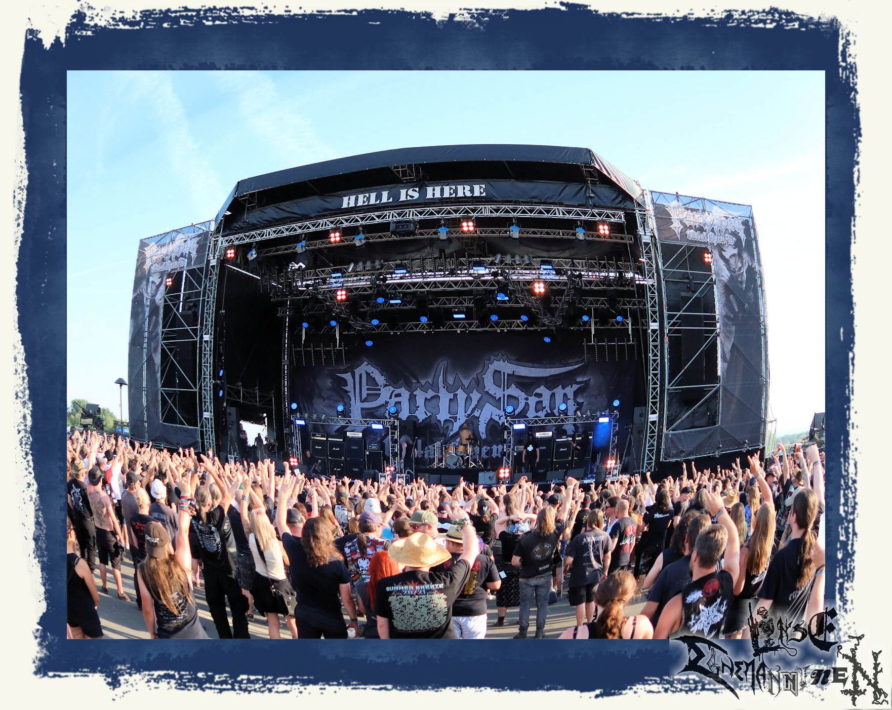 Endlich wieder PARTY.SAN METAL OPEN AIR und damit die Chance viele Leute bei guter Mucke nach der Pandemiezeit wiederzusehen. Noch einmal ein großes Lob an die Veranstalter. Kaum Wartezeit vor dem Gelände, keine Probleme beim Einlass zu den Bühnen, eine unglaublich gute und saubere Versorgung mit sanitären Anlagen und eine wirklich nette Security. So soll´s sein und diese B-Noten sind für mich wichtig für ein gelungenes Festival. Bemerkenswert ist auch, dass alle angekündigten Bands aufgetreten sind. Beim In Flammen kam es durch Corona und Flugausfälle ja zu einigen Lücken im Line-Up, was natürlich nicht in der Macht der Veranstalter liegt. Das PARTY.SAN konnte hingegen nicht nur durch die Salut-Kanonen, sondern vor allem bandtechnisch wie versprochen aus allen Rohren feuern.