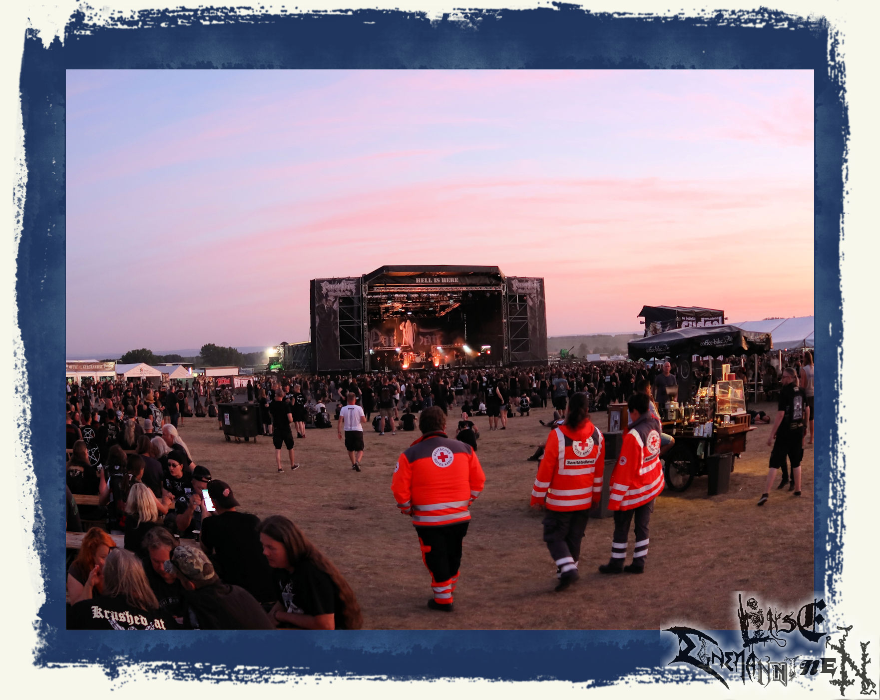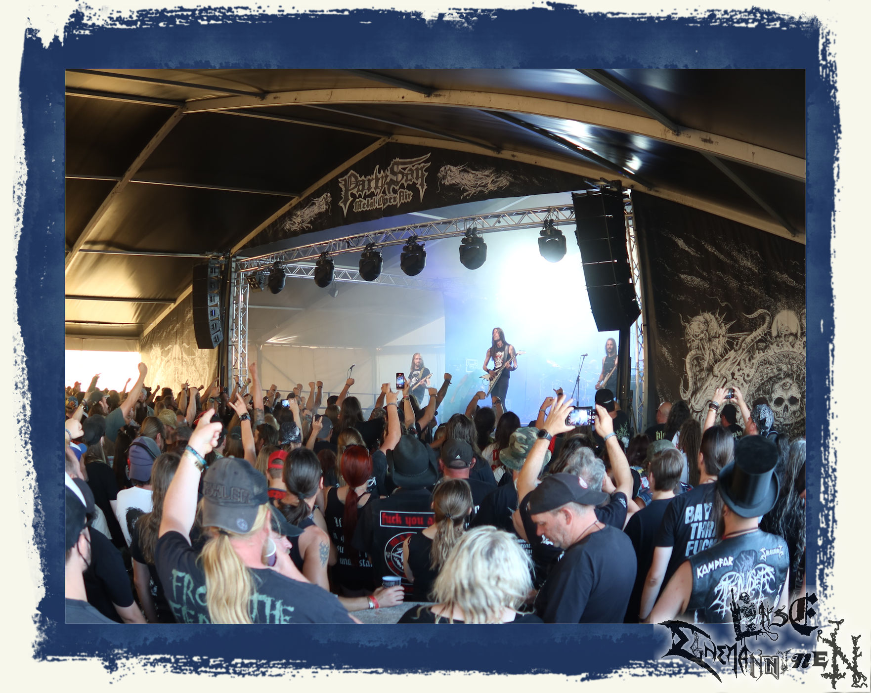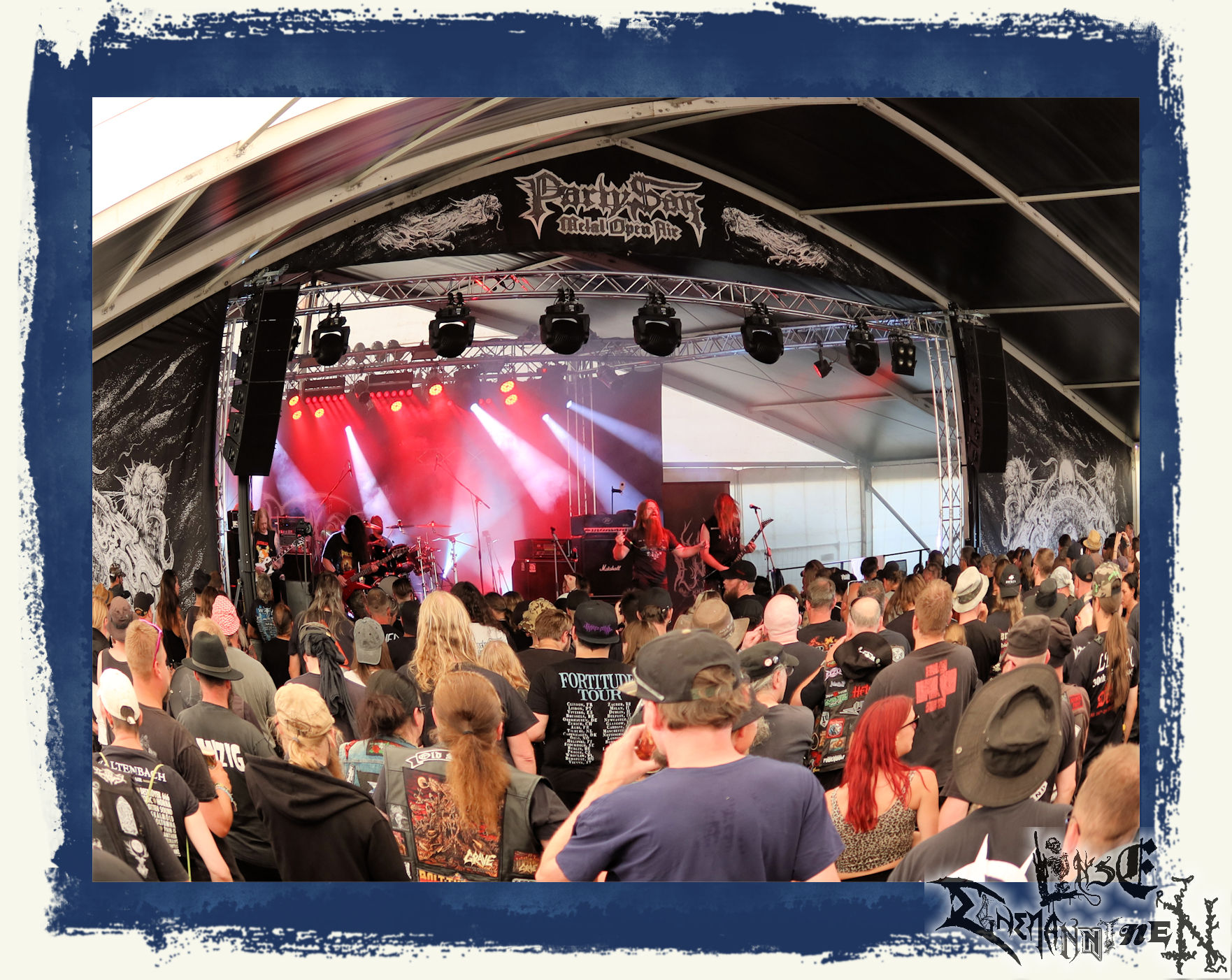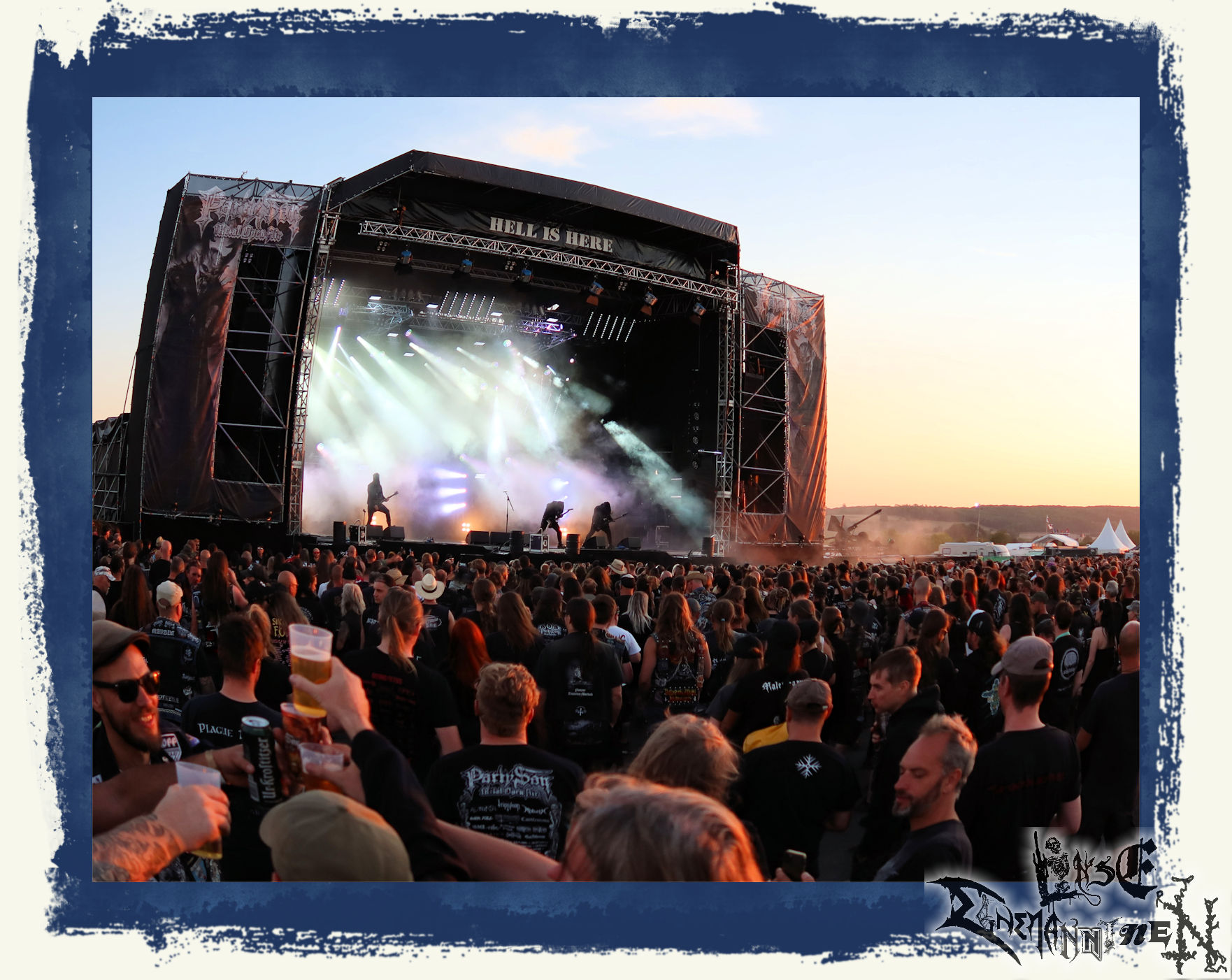 Stattdessen Erschöpfung, Kraftlosigkeit, (Selbst-)Zweifel und Antriebslosigkeit, die sich meiner schon seit einigen Tagen bemächtigt hatten. Eine Sache, die man einem Außenstehenden, der es nicht kennt oder nicht selbst etwas vergleichbares erlebt hat, nur schwer vermitteln kann. Und das angesichts eines Datums, welches in meinem persönlichen Kalender einen ähnlichen, wenn nicht sogar noch höheren Status hat, als so mancher Feiertag. Warum ich das schreibe, statt einfach nur die Lobhudelei auf meine Lieblingsbands und mein Lieblingsfestival herunter zu beten? Nun, weil das Twilight immer noch ein Fanzine ist und dieser Beginn für mich zum PARTY.SAN METAL OPEN AIR dazu gehört. Genauso wie ich in all den Jahren schon in einem weitaus schlimmeren und bedenklicherem mentalen Zustand in meinem musikalischen Wohnzimmer unterwegs war und so einiges erfolgreich überstanden habe.