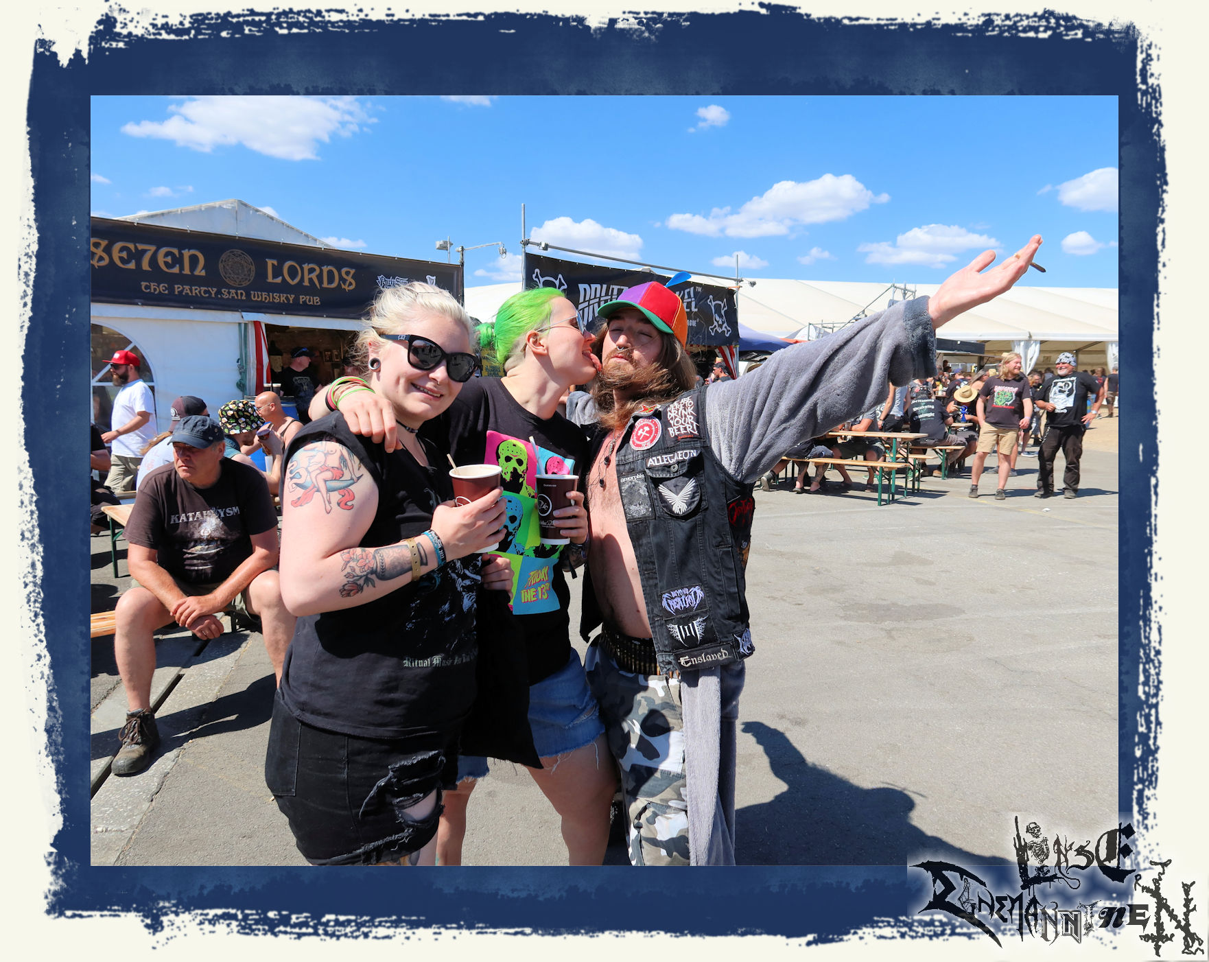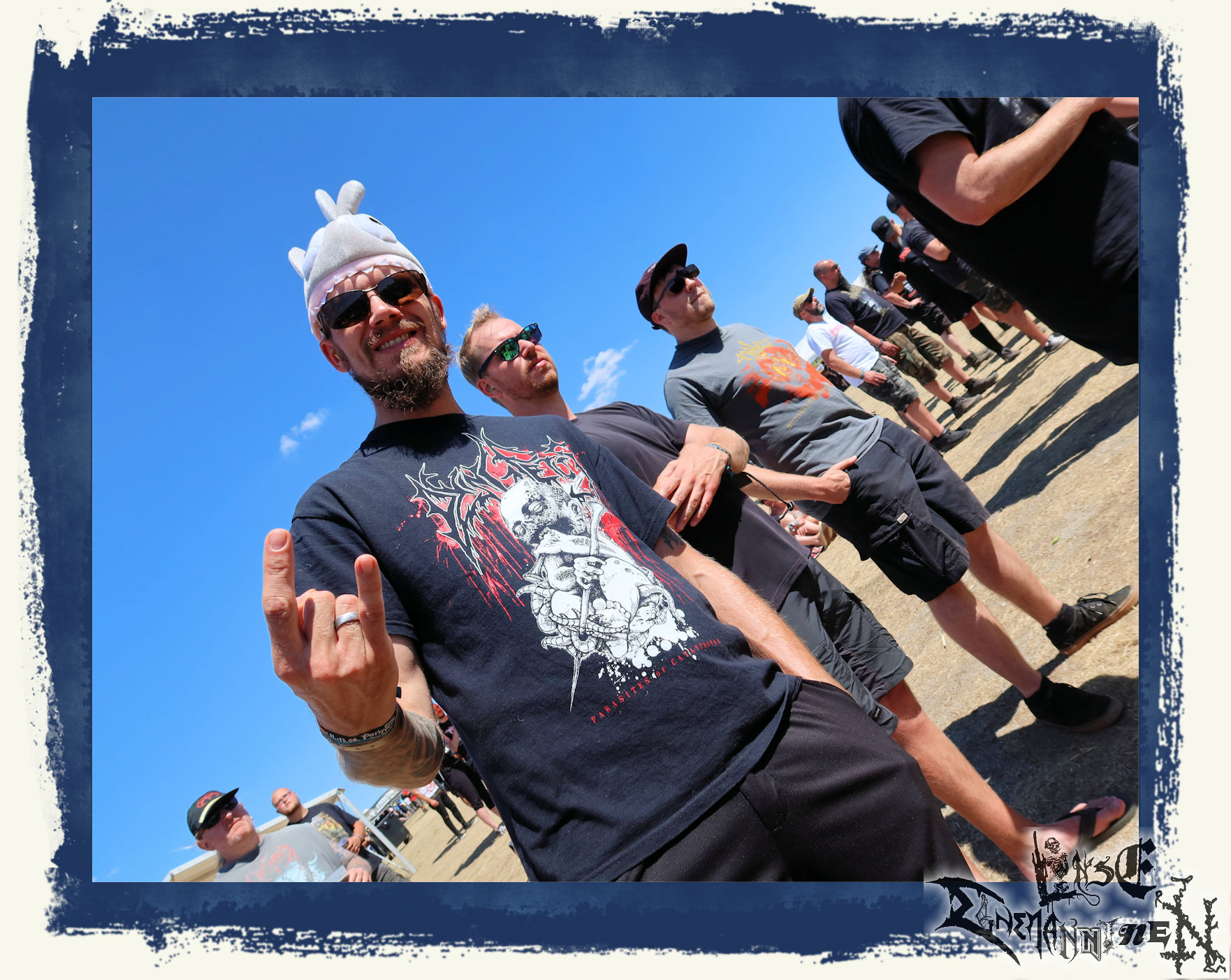 Tag zwei, die Nachwirkungen des gelungenen Auftaktes halten sich in Grenzen. Aber wer nicht gerade über ein hitzeabweisendes "Fresh & Black"-Zelt, verfügt, der macht an diesem Wochenende ab 08:00 Uhr morgens kein Auge mehr zu, denn Hitze und Sonne kennen an diesem Wochenende keine Gnade. Aber alles Jammern hilft nichts. Wohl dem, der einenPavillion als Sonnenschutz für´s Frühstück hat. Anschließend noch ein paar Drinks, Siesta und *klingelingeling* findet man sich auch schon vor der Hauptbühne wieder. KADAVERFICKER mit einem gewissen Goreminister am Mikro dürfen heute den Reigen pünktlich um High Noon eröffnen. Die PARTY.SANEN lassen sich einmal mehr nicht lange zum Tanze bitten. Es wird bunt vor der Bühne. Die Sonne macht albern, die Ficker machen auch ohne musikalischen Tiefgang gute Laune und bereiten somit das Feld für drei Schwergewichte, deren Positionierung auf dem Billing nicht nur bei mir zunächst für Verwunderung sorgte.