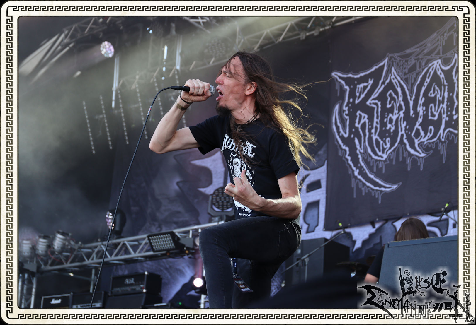 Auf EXHORDER bin ich gespannt, sind mir die Thrasher live doch noch nie untergekommen. Ihr Debüt hatte wohl maßgeblichen Einfluss auf den Sound, den Pantera später gefahren haben. Allerdings bin ich unsicher, ob es mit anderem Cover und Titel so viel Aufmerksamkeit erregt hätte. Nun aber zurück ins Hier und Jetzt mit dem Blick auf die Bühne. Fans von ´Slaughter In The Vatican´ kommen in jedem Fall voll auf ihre Kosten, so zocken die Jungs neben dem Titeltrack noch einige Songs des Erstlings. Mit dem aktuellen Album bin ich nicht so richtig warm geworden und so geht es mir auch mit dem Gig. Vielleicht liegt es auch daran, dass am Freitag der Austauschbedarf mit lange nicht gesehenen Leuten noch groß ist. So laufen Exhorder trotz solider Vorstellung an mir vorbei. Im Vergleich zu dem Abriss, den Demolition Hammer 2017 an gleicher Stelle geliefert haben, ziehen Exhorder eindeutig den Kürzeren. (Trille)