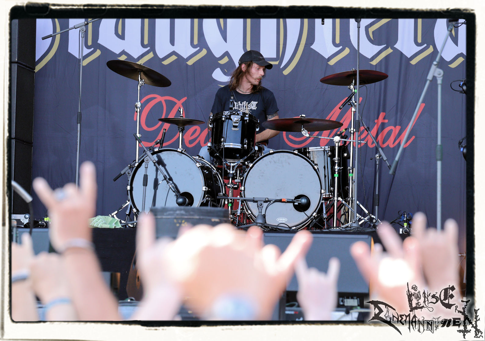 Im grellen Licht der untergehenden Sonne sowie im Zwielicht der hereinbrechenden Dämmerung ziehen UADA eine Messe auf, die ich ihnen auf dieser Position nicht zugetraut hatte. Die beachtliche Menschenschar steht wegen dem Quartett aus Portland vor der Bühne, und nicht etwa, um sich die besten Plätze für Van Drunen & Friends zu sichern. Es gibt nur wenige Bands im Black Metal, die mit einem derart warmen Sound und einer unnachahmlichen Leidenschaft für Melodien, vor allem aber Harmonien einen solch mystischen Feuersturm zu entfachen in der Lage sind. Der Gesang, die heiseren Schreie von Jake Superchi sind Hingabe pur und dringen buchstäblich bis ins Mark. Von "Devoid Of Light" über "Cult Of A Dying Sun" bis hin zu "Djinn", Uada sind eine Macht und Eisenwald können sich glücklich schätzen, diese Amis unter Vertrag zu haben.