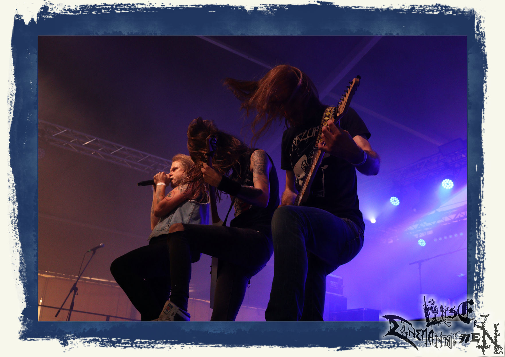Iron Flesh prügeln sich nach alter Schule danach durchs Zelt, die Nebenklänge von der Hauptbühne lassen mich dann aber doch noch Reißaus vor dem HEIDEVOLK nehmen und ich gönne mir nach meinem Messiah-Aussetzer eine letzte finale Verschnaufpause, um pünktlich zu SPACE CHASER wieder im Zelt zu stehen. Die Berlin-Thrasher haben sich zu einer verlässlichen Bank gemausert. "Give Us Life", der aktuelle Longplayer, welcher im Mittelpunkt einer energiegeladenen Performance steht, hat die Grundlage dafür gelegt und war unzweifelhaft ein großer Schritt in der Entwicklung der Alien-Anbeter. Obwohl ich alles andere als ein Thrash Metal – Maniac bin, spätestens seit der Split mit Distillator bin ich Fan dieser Band, bei der das Ende der Fahnenstange noch lange nicht erreicht zu sein scheint. Beim nächsten Mal bitte Mainstage. Unbedingt!