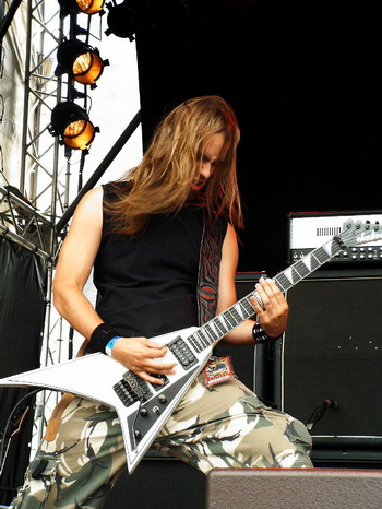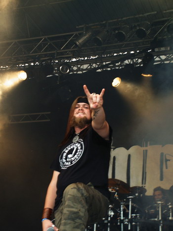 irgendwo vor der Bühnewieder zu finden. Denn bisher hatte ich nur gutes von den Finnen vernehmen dürfen. Entsprechend gespannt erwarte ich denn auch den Auftritt, doch so richtig warm werde ich dann letzten Endes nicht, da ich einfach keinen Zugang zu der sehr experimentierfreudigen Musik finde, die man grob als Mischung aus The Haunted, Darkane und einer Prise Opeth beschreiben kann. Ansonsten sind die Jungs aus dem Land der tausend Seen aber eine absolute Bereicherung, denn sie spielen sich so richtig den Arsch wund und es ist eine wahre Freude, ihnen beim Spielen, Posen und Bangen zuzuschauen und man merkt ihnen ihre Freude und Frische an, so das mein Daumen am Ende des Gigs dann doch klar nach oben zeigt. Diese Band sollte man auf jeden Fall im Auge behalten.