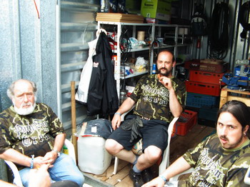Nach einer, für Festivalverhältnisse, relativ langen Nacht und einem kurzen Ausflug, zwecks Einkauf in der City von Bad Berka, ist erstmal ein ausgelassenes und so gar nicht festivaltypisches, will heißen, ein durchweg nahrhaftes Frühstück zur Katerbekämpfung angesagt! Einige Fans nutzen diesem Vormittag für ihren eigenen ganz großen und wohl eher unfreiwilligen Auftritt, in dem sie mit Ihrem Fahrzeug eine Ölspur vom Festivalgelände bis zum Ortseingang von Bad Berka legen. So darf sich die Feuerwehr in der Pflicht freuen, auch mal ins Festivalgeschehen eingreifen zu dürfen und Party San Crew sowie die Security bekommen in der Kür eine besondere Herausforderung, die alle jedoch mit Bravour meistern!