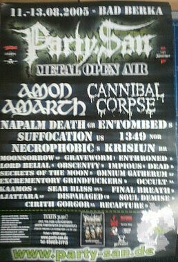 Es war im Jahre 1999 als mich ein verlockendes Billing zum ersten Mal in die thüringische Provinz, südlich von Weimar zu einem kleinen, zu diesem Zeitpunkt noch völlig unbekannten Festival, namens Party San Open Air, zog.