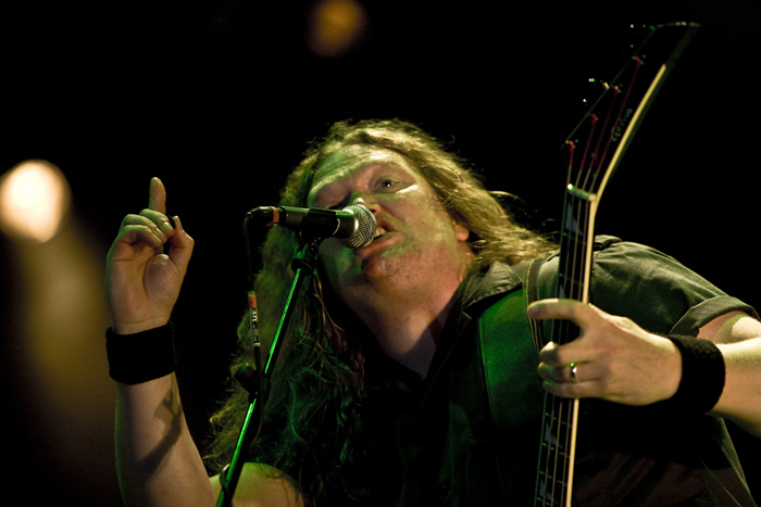 SADUS. Auch wenn das diesjährige Billing weniger thrash-lastig ist als in den Jahren zuvor, Sadus wissen ihre Chance zu nutzen. Mehr als das, sie zelebrieren eine absolute Lehrstunde und treten den Beweis an, dass es auch als Trio möglich ist jedes Soundloch zuzumauern. Und über die spielerisch Qualitäten eines Steve DiGiorgio muss hier nicht geredet werden. "Certain Death", "Swallowed In Black" oder der Opener "Through The Eyes Of Greed": ein einziger Schlag in die Fresse. So muss das sein!(ET) Eigentlich hatte ich mich sehr darauf gefreut, die streitbaren Finnen nach 2005 einmal wieder live zu sehen, stechen sie doch aus der ganzen nordischen Pagan Metal Schwemme der letzten Jahre noch am ehesten positiv hervor. Doch eine schnapsdurchtränkte Nacht fordert während der voluminösen Darbietung
