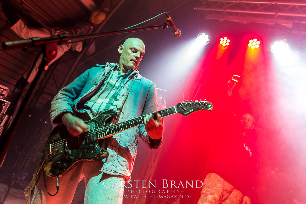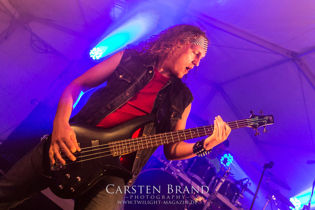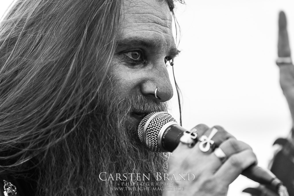 Weniger Black Sabbath als Pantera haben die Sondershausener von BLACK MOOD in ihren Einflüssen, wodurch sie sich in ihrer ähnlichen Grundausrichtung von ihren Kollegen abheben. Das Duo, um die Brüder Izz (Gitarre, Vocals) und Sleaze (Drums) steht mittlerweile in der Tradition von Bands, die einen Bassisten für verzichtbar halten und stattdessen für die Gitarre mit allerlei Verstärker-Technik experimentieren, um möglichst wenig Sound-Einbußen zu haben. Wie schon bei meinem ersten Kontakt mit den Thüringern, die im vergangenen Jahr als Opener für die kongenialen Castle in Göttingen fungierten, spielen sich die beiden Herren den Allerwertesten ab und wissen das Publikum von Beginn an mit ihrem groovenden, metallischen Southern-Rock zu überzeugen.
