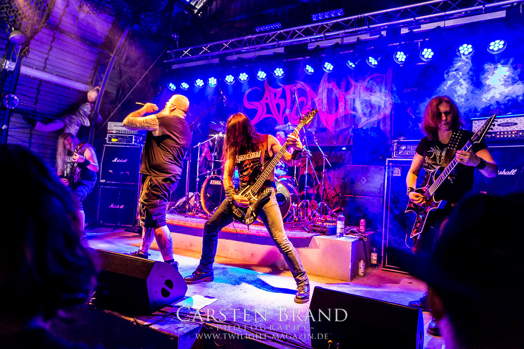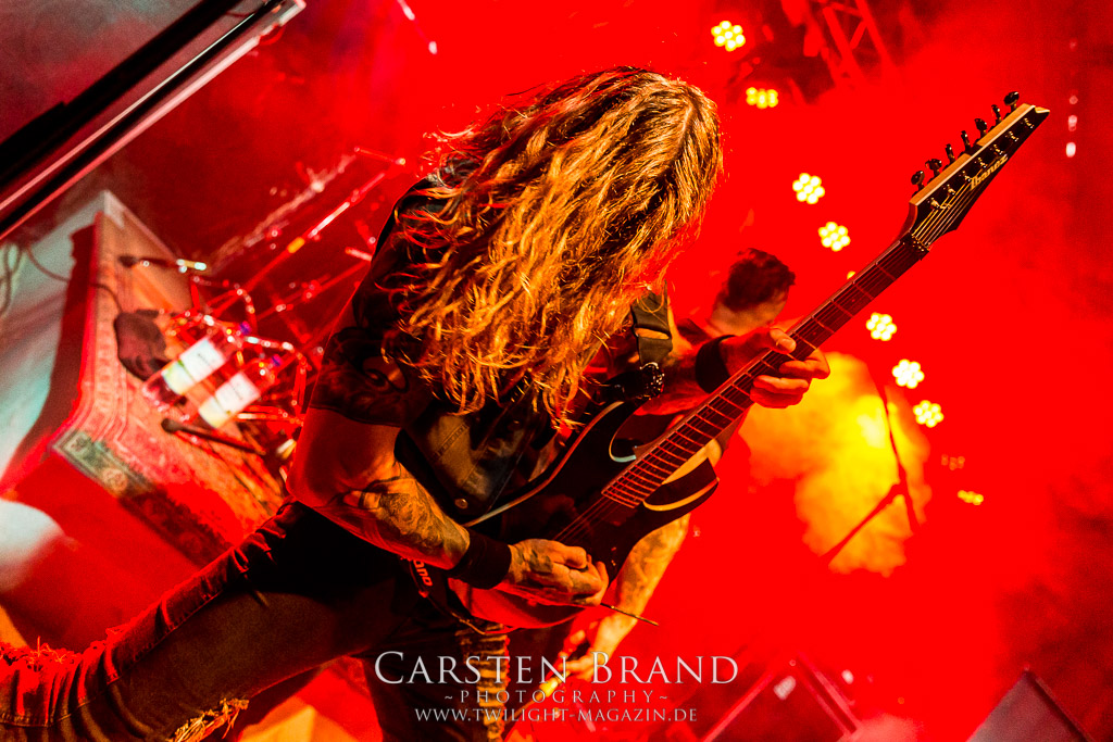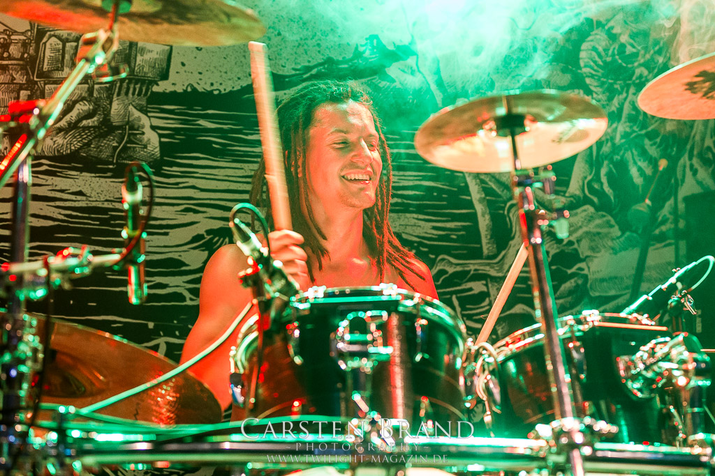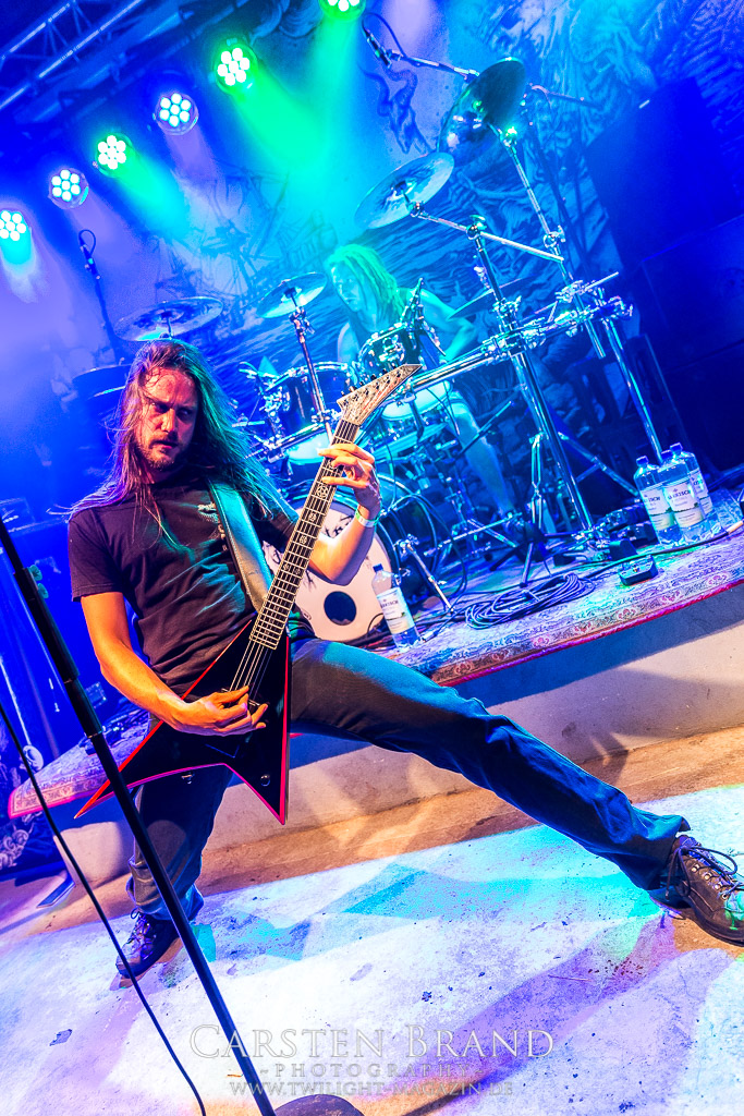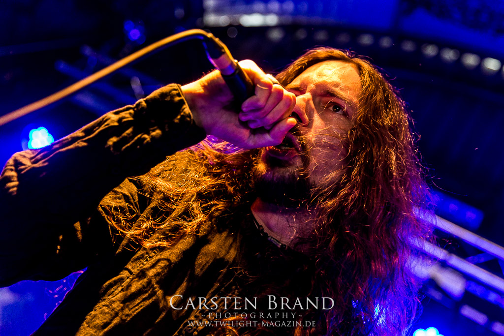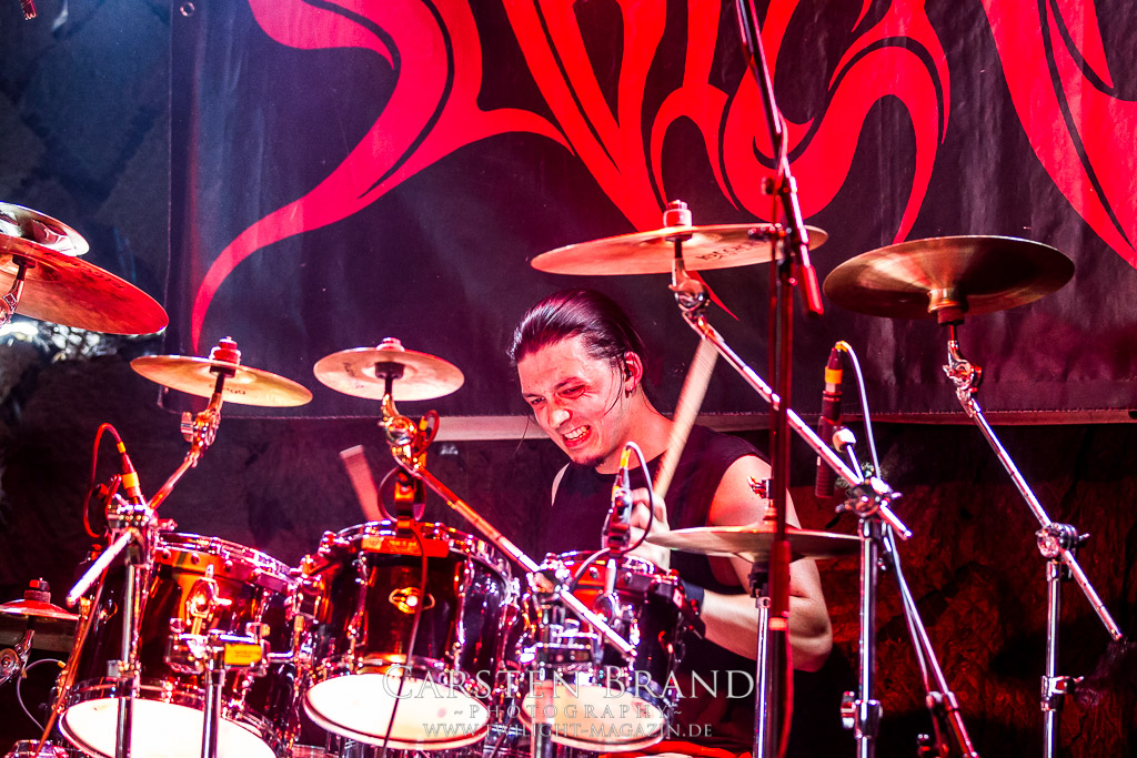 Paul Speckmann wirkt nicht nur optisch wie Vater Abraham, er ist tatsächlich der Methusalem der Death Metal - Szene. Zwar hat der MASTER-Frontmann musikalisch in über drei Dekaden meiner Ansicht nie die ganz hochkarätigen Klassiker erschaffen, sein Einfluss und vor allem seine musikalische Beständigkeit und Präsenz ist jedoch unbestritten und das rechtfertigt tatsächlich die hohe Position im Billing. Knochentrocken rotzt der Wahl-Tscheche mit seinen beiden Mitstreitern die tief im Thrash verwurzelten Brecher aus 35 Jahren Bandgeschichte aus dem Ärmel. Auch wenn ich dem alten Mann immer noch nachtrage, dass er Krabathor einst auseinanderdividiert hat, Master werden an diesem Abend ihrer Position gerecht.