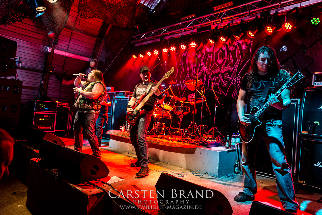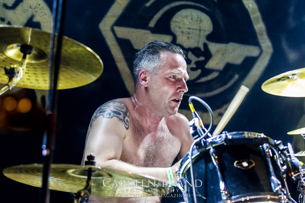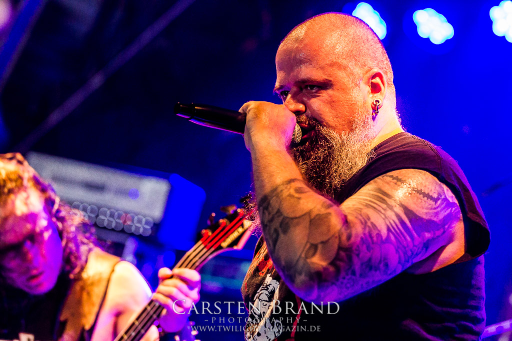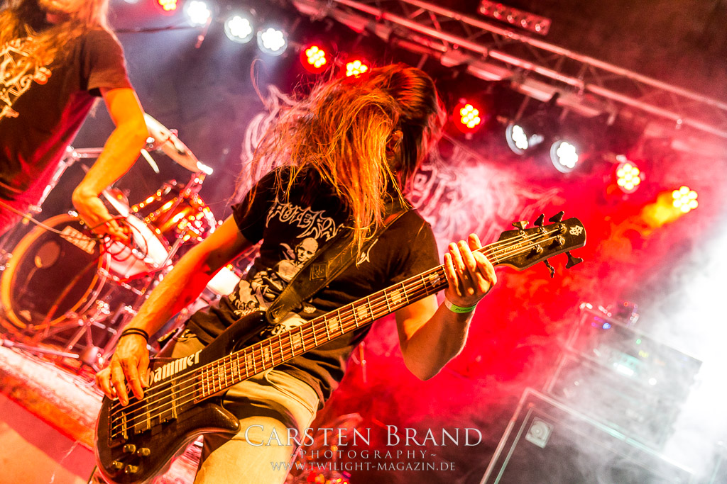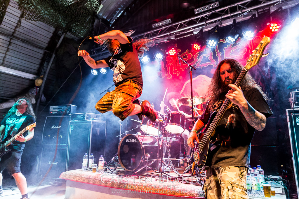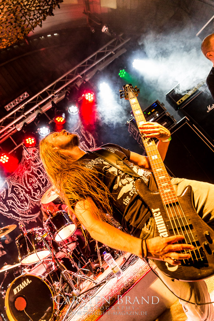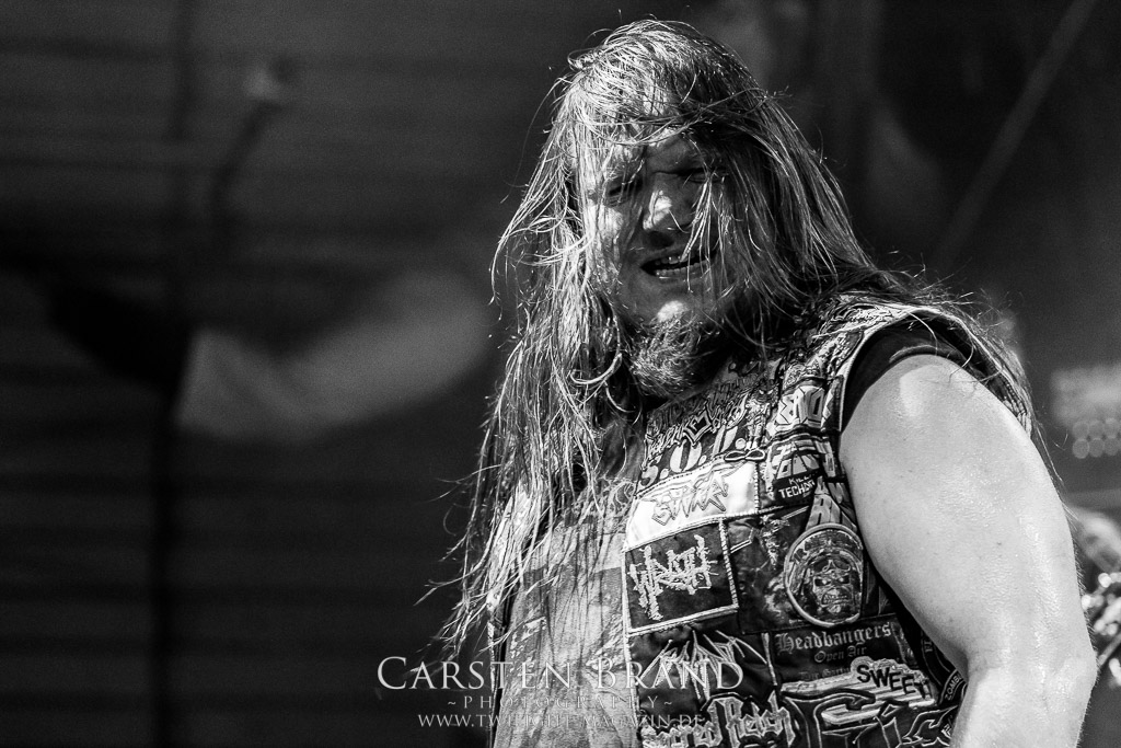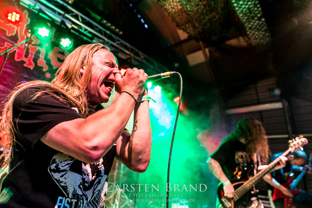 Mit Martin van Drunen folgt Speckmann nun die nächste angegraute Eminenz des Todesstahls auf die Bühne, darf er doch mit ASPHYX den Sack zu machen. Und wie: Zwar ist der Sound nicht ganz so brilliant wie auf dem Rock Hard Festival aber was das Quartett hier abzieht ist kaum in Worte zu fassen. Die gesamte Band sprudelt über vor Energie und ist fast schon übermotiviert, was bei diesem Set der Extraklasse jedoch kein Wunder ist. "MS Bismark", "The Sickened Dwell", "Der Landser", "The Rack", "Scorbutics", "Deathhammer", "Death: The Only Immortal", "Last One On Earth" und so weiter und sofort... Klassiker reiht sich an Klassiker und somit sind Asphyx die einzige Band der alten Garde, denen sich Deserted Fear heute nach punkten geschlagen geben müssen. Aber Asphyx in dieser Form zu unterliegen, ist wahrlich keine Schande. Ein denkwürdiger Abschluss, der Band und Fans die letzten Reserven abgetrotzt hat, unglaublich intensiv war und sehr viel Spaß gemacht hat.