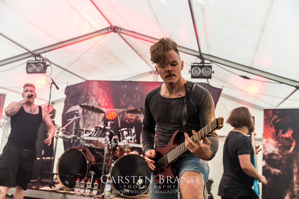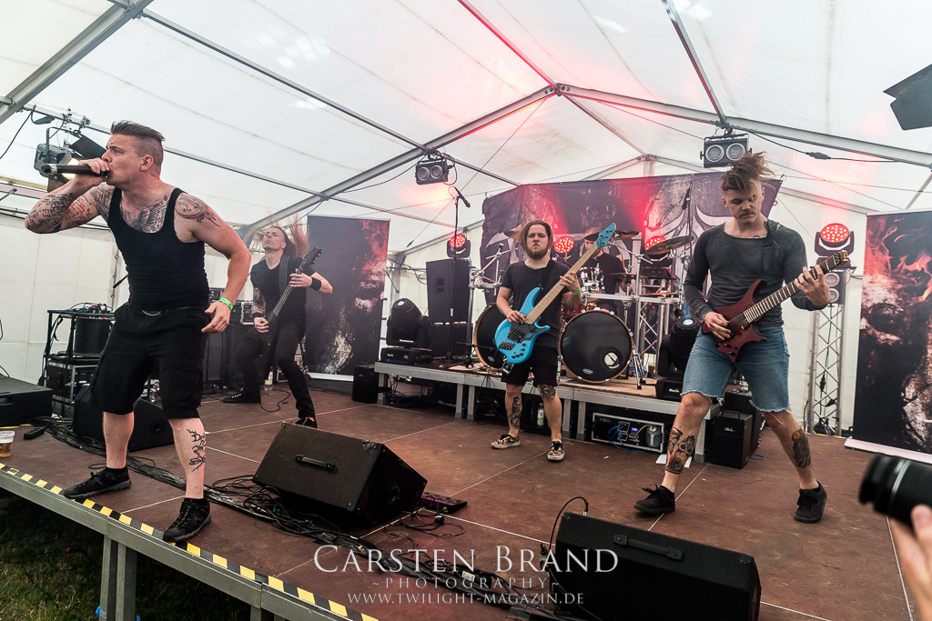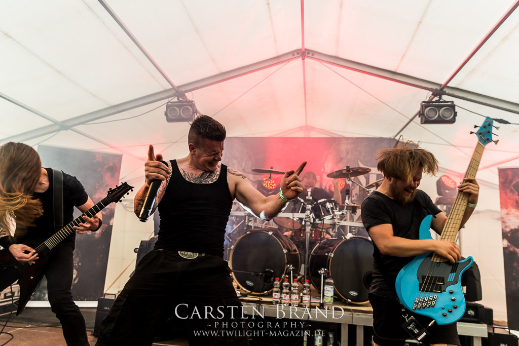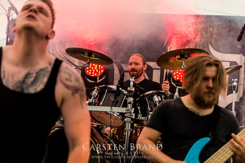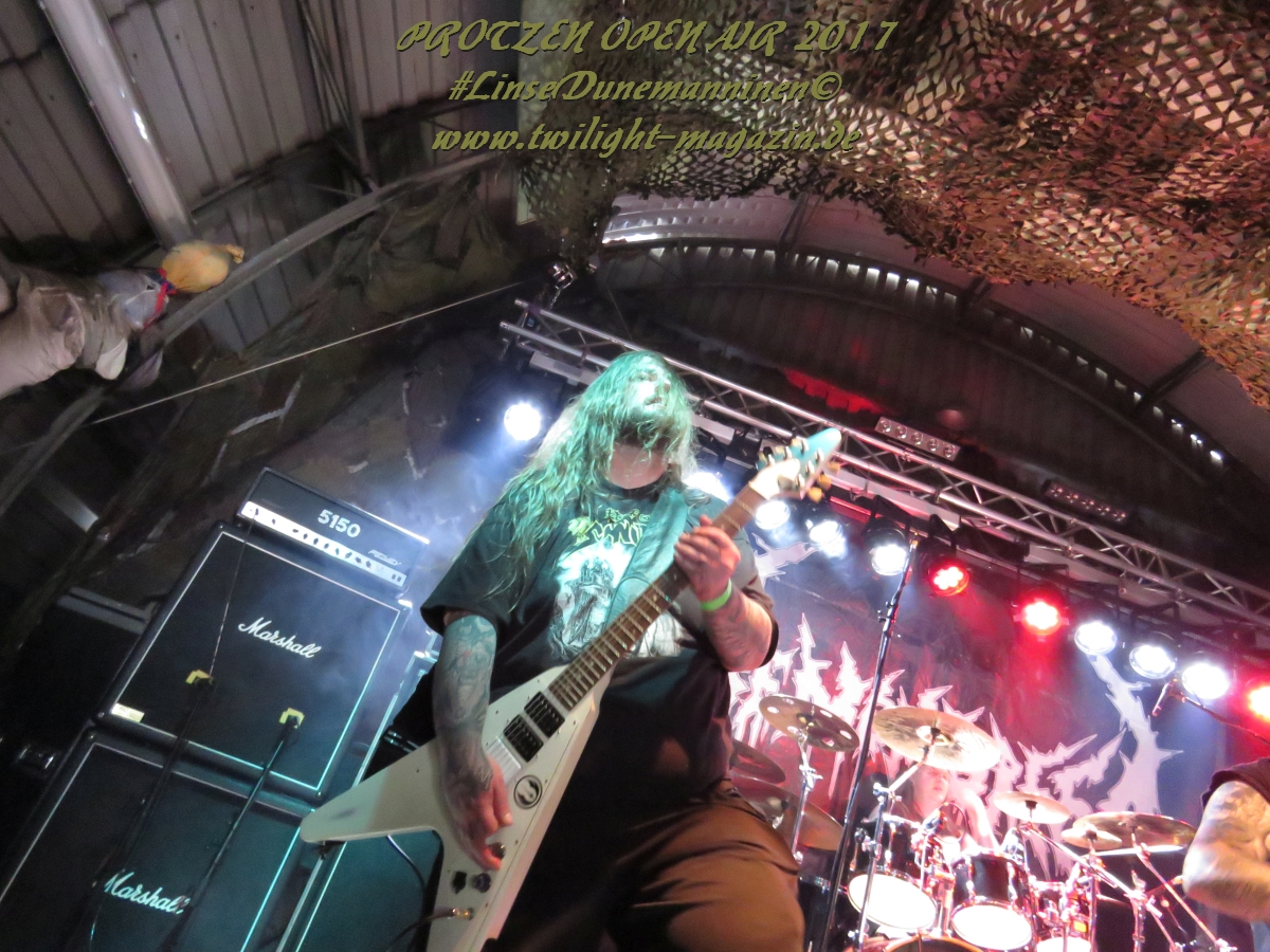 HARMONY DIES gehören irgendwie schon all die Jahre zum Protzen-Inventar und die Berliner Death Metaller um Bühnentechniker Kai und DJ Keksgrinder sind auch in diesem Jahr wieder eine absolute Bank. Staight, zielsicher und ohne jeglichen Firlefanz direkt in die Kauleiste. Mehr braucht es nicht zum Glück.