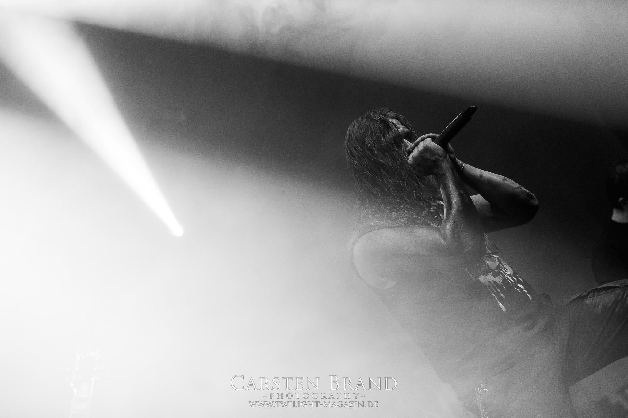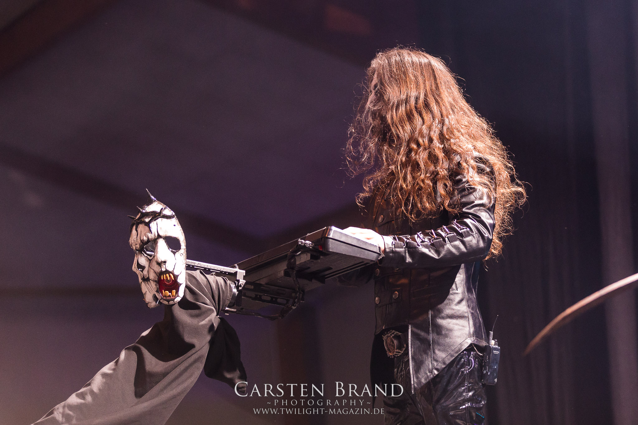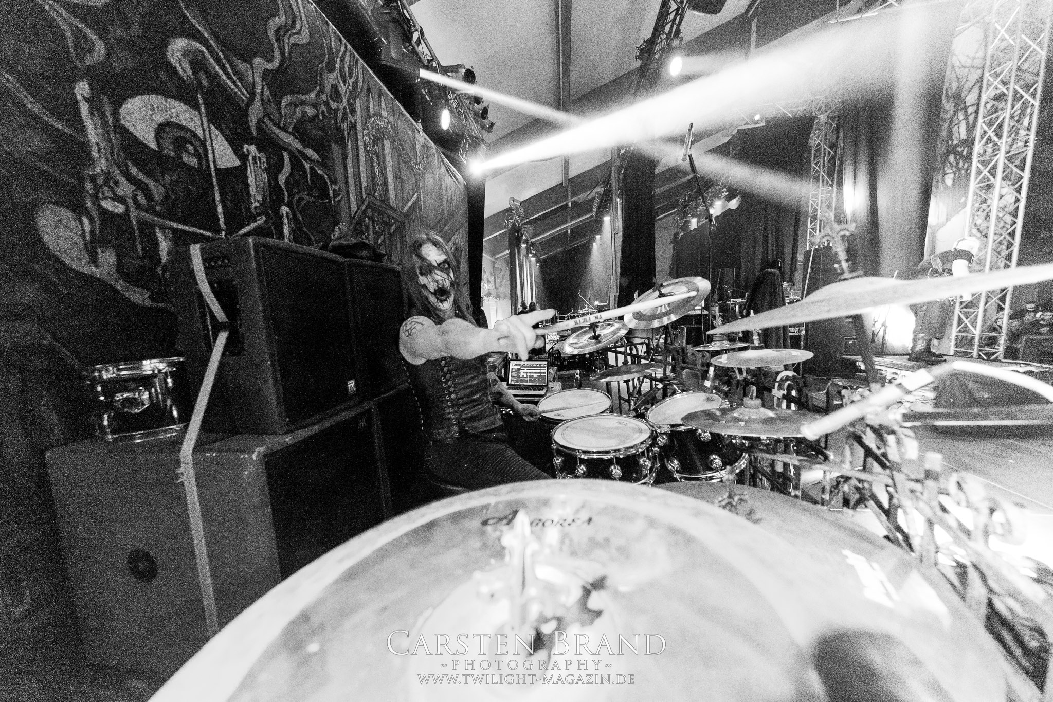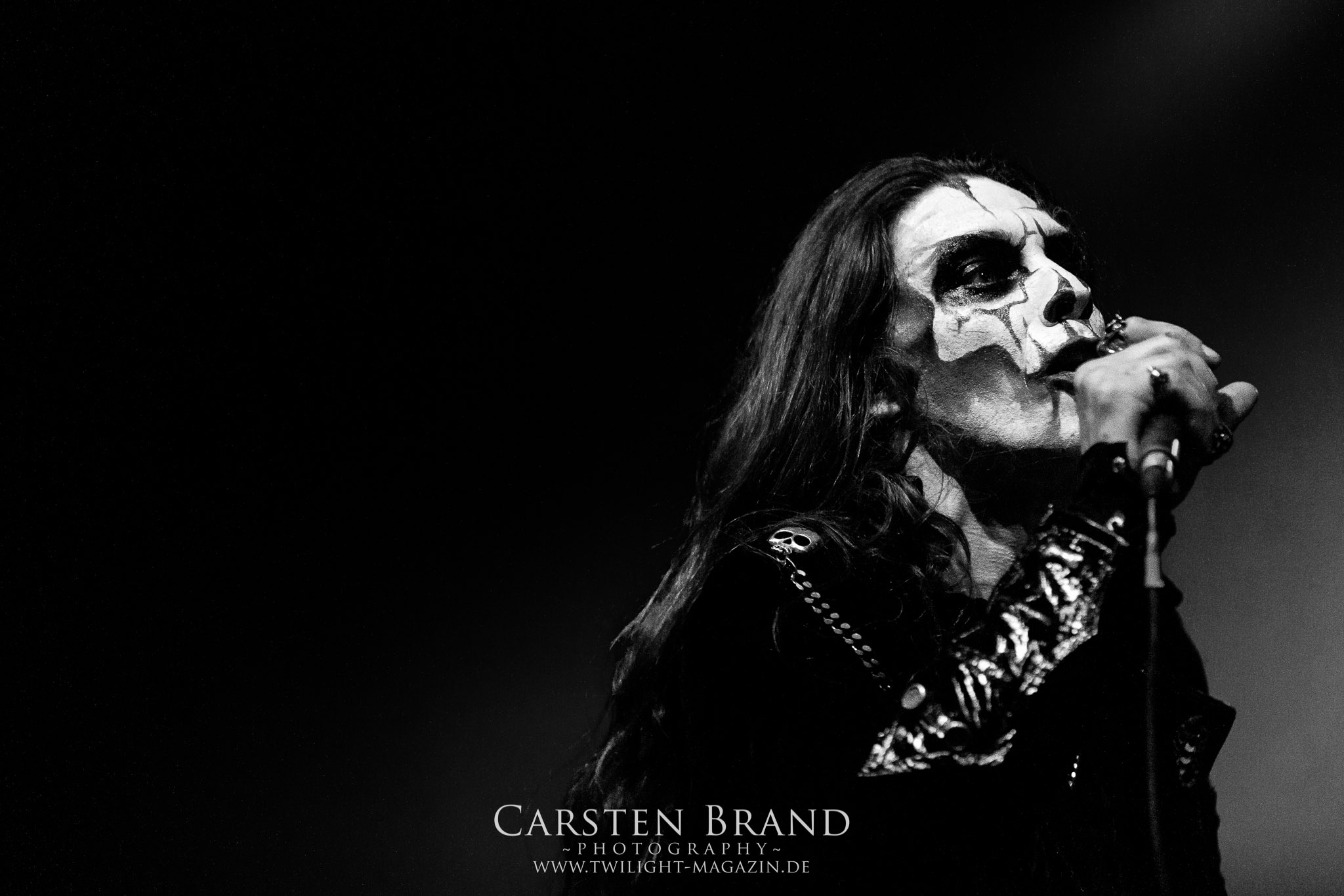 Wegen der zuvor erwähnten Ausfälle dürfen die Dark-Metaller CARACH ANGREN den Abend dann vorzeitig beenden. Dazu haben Sie ordentlich aufgefahren neben ordentlich Blitz und Nebel kommen Hebebühnen für Sänger und Gitarristen zum Einsatz. Trotzdem will der Funke nicht so recht überspringen und ein Großteil des Publikums, von ein paar Unentwegten direkt vor der Bühne abgesehen, schaut sich das Konzert eher interessiert als enthusiastisch an.