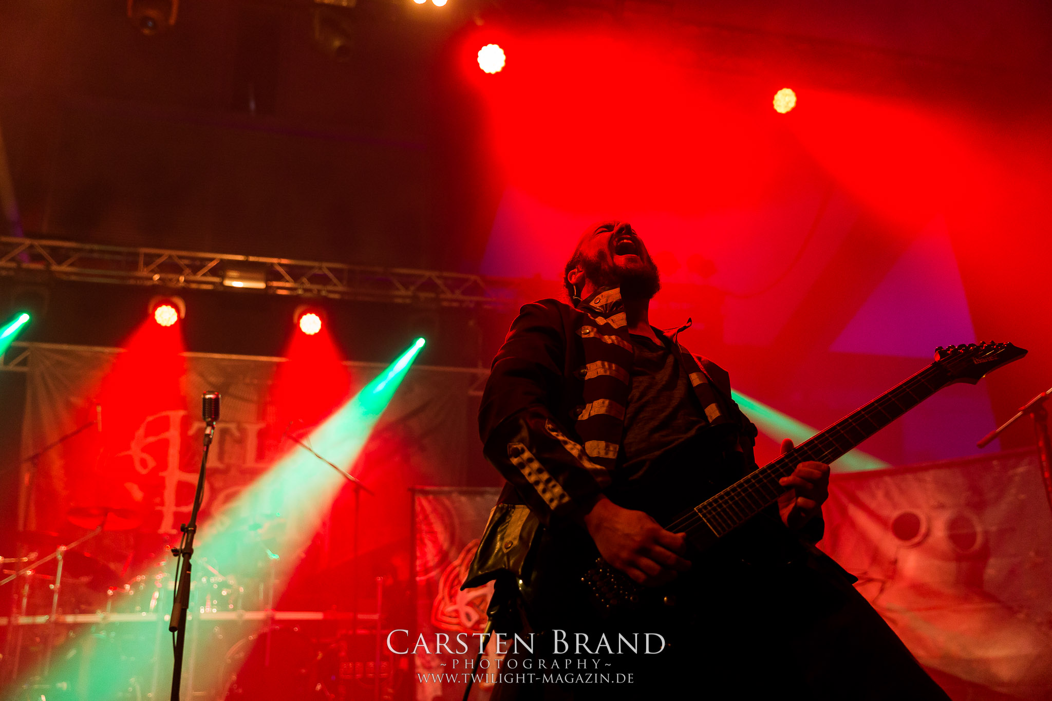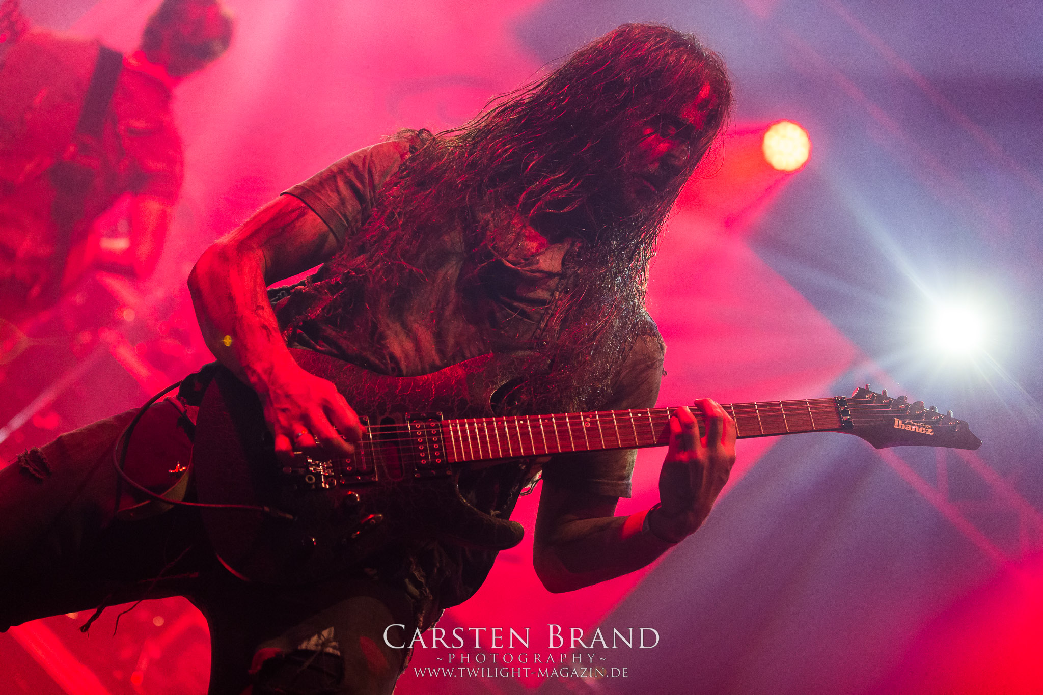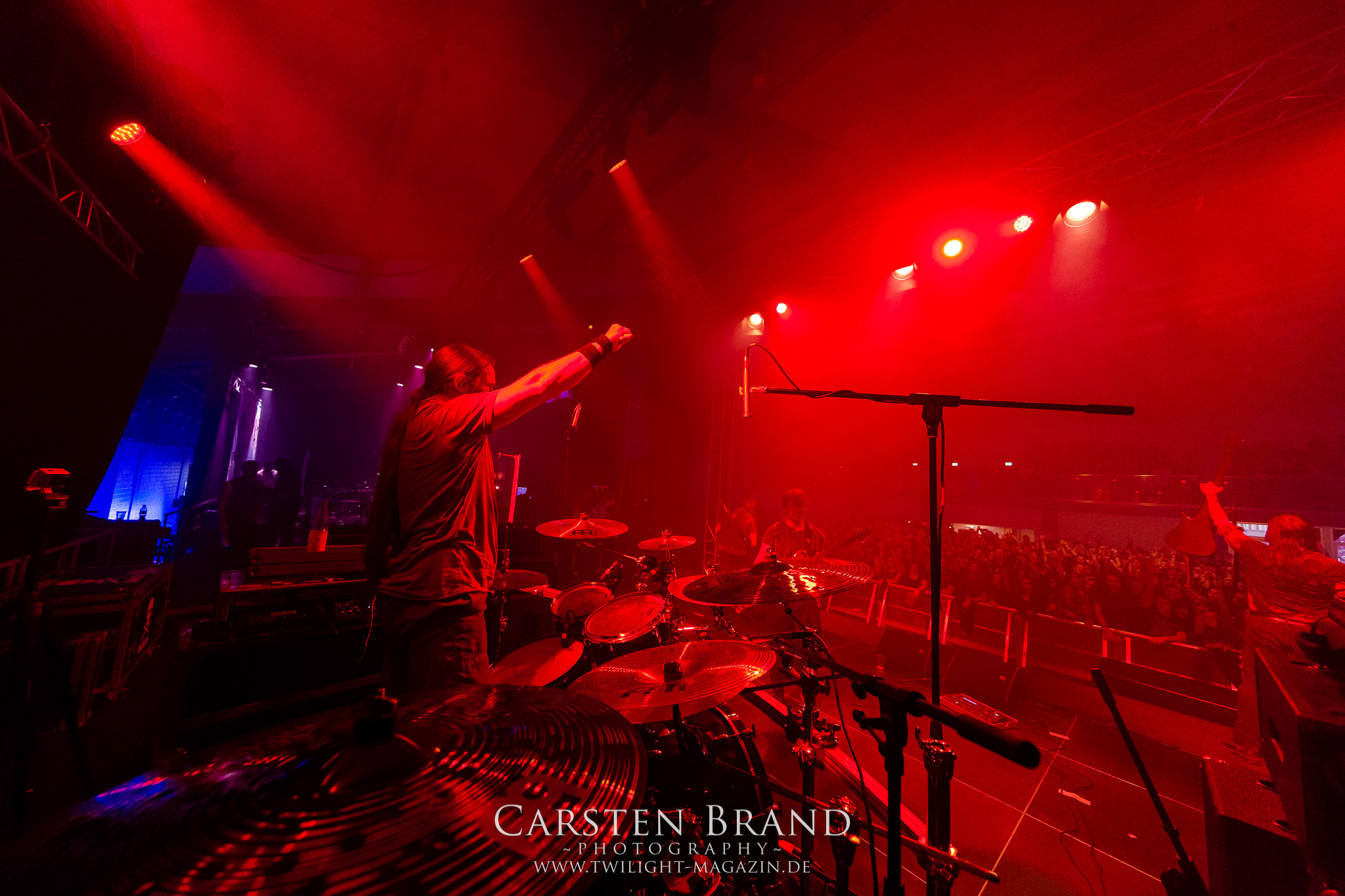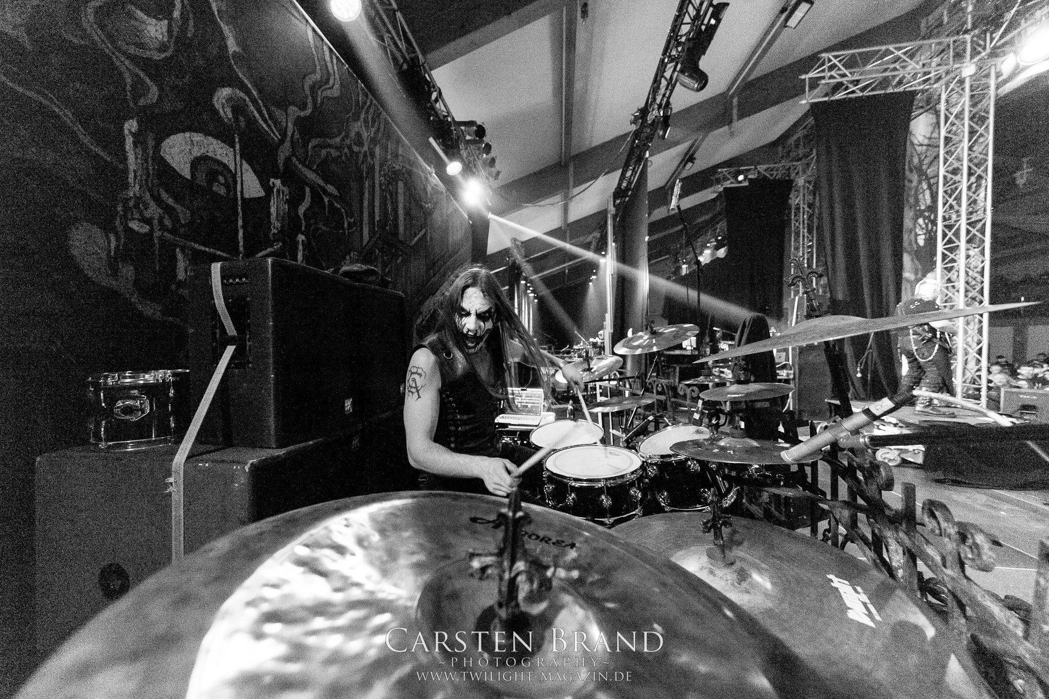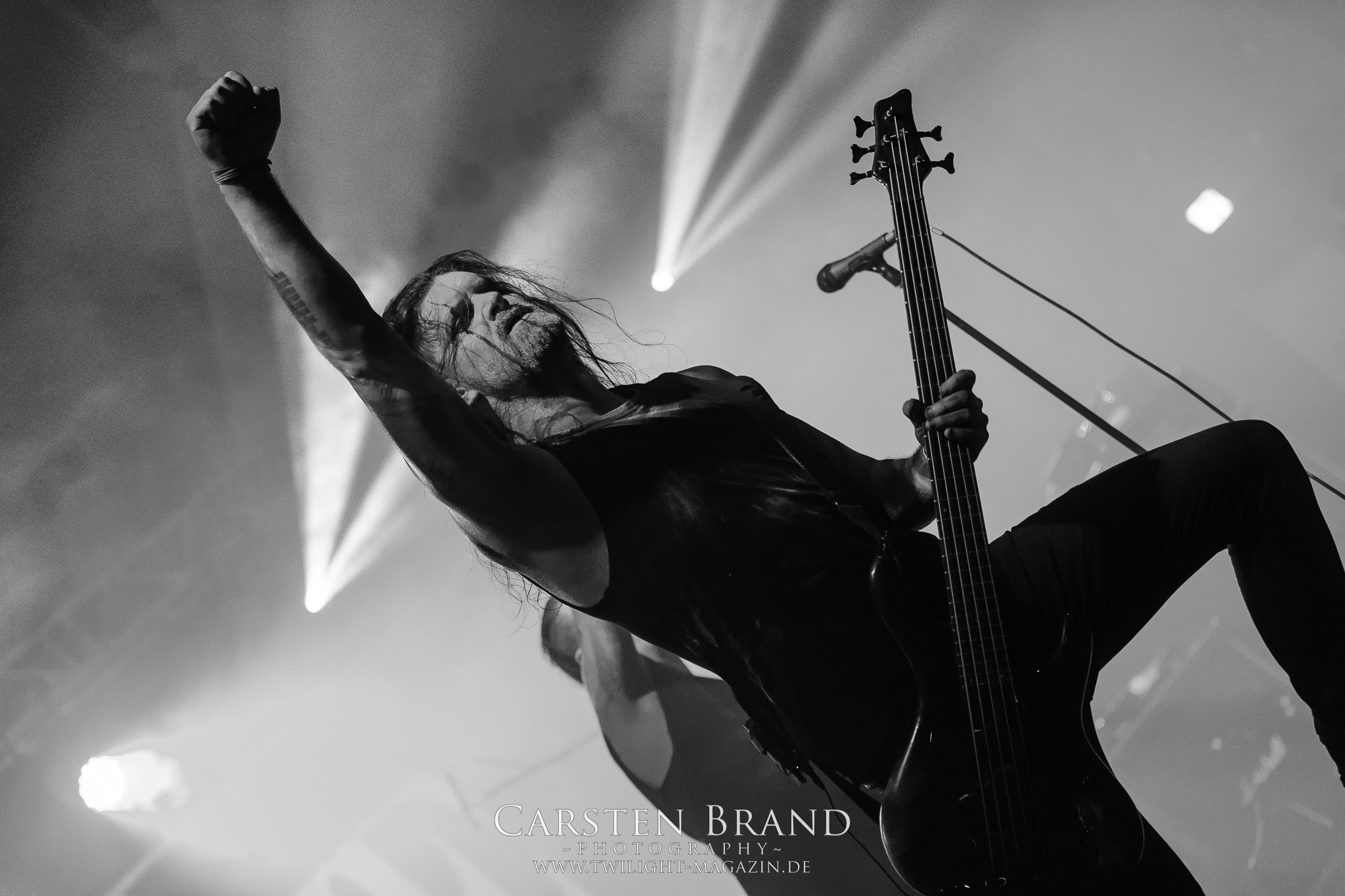 Wegen der zuvor erwähnten Ausfälle dürfen die Dark-Metaller CARACH ANGREN den Abend dann vorzeitig beenden. Dazu haben Sie ordentlich aufgefahren neben ordentlich Blitz und Nebel kommen Hebebühnen für Sänger und Gitarristen zum Einsatz. Trotzdem will der Funke nicht so recht überspringen und ein Großteil des Publikums, von ein paar Unentwegten direkt vor der Bühne abgesehen, schaut sich das Konzert eher interessiert als enthusiastisch an.