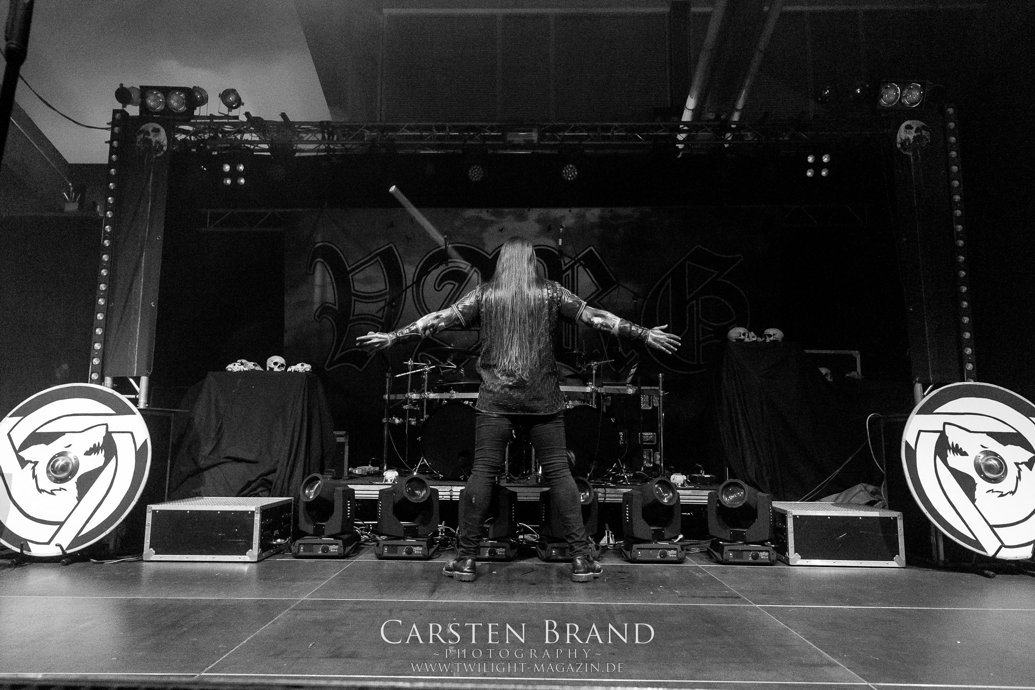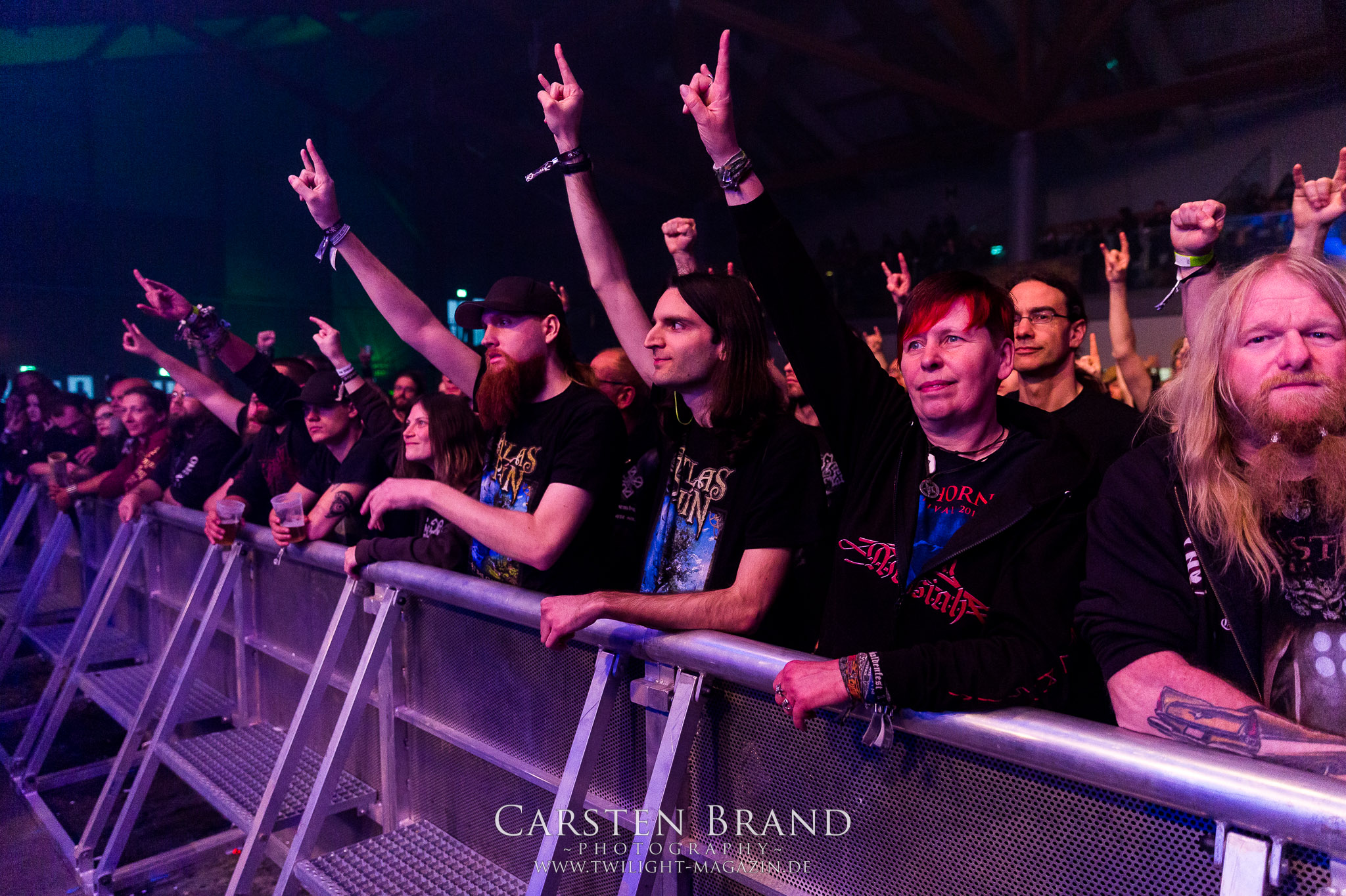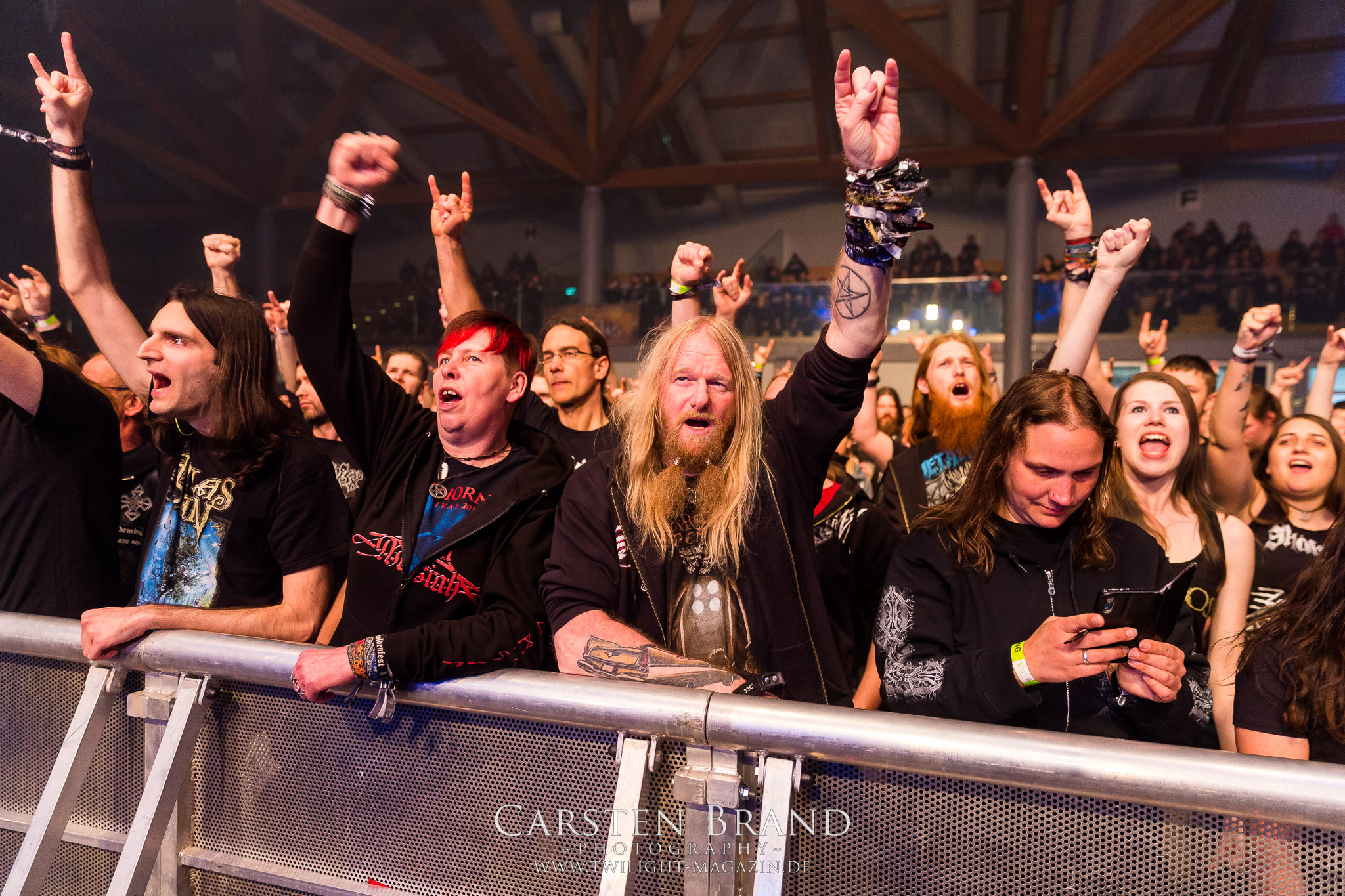 Auch VARG haben ein spezielles Set vorbereitet und spielen bei ihrem ersten Auftritt 2019 im normalen Set nur Songs ihres ersten Albums „Wolfszeit“, was die Fans der ersten Stunde natürlich erfreut und vor die Bühne zieht. Spätestens bei der aufgrund seiner Konnotation sehr selten gespielten Zugabe „Schildfront“ sind die Anhänger natürlich voll dabei, während nicht wenige den Hype eher stoisch verfolgen.