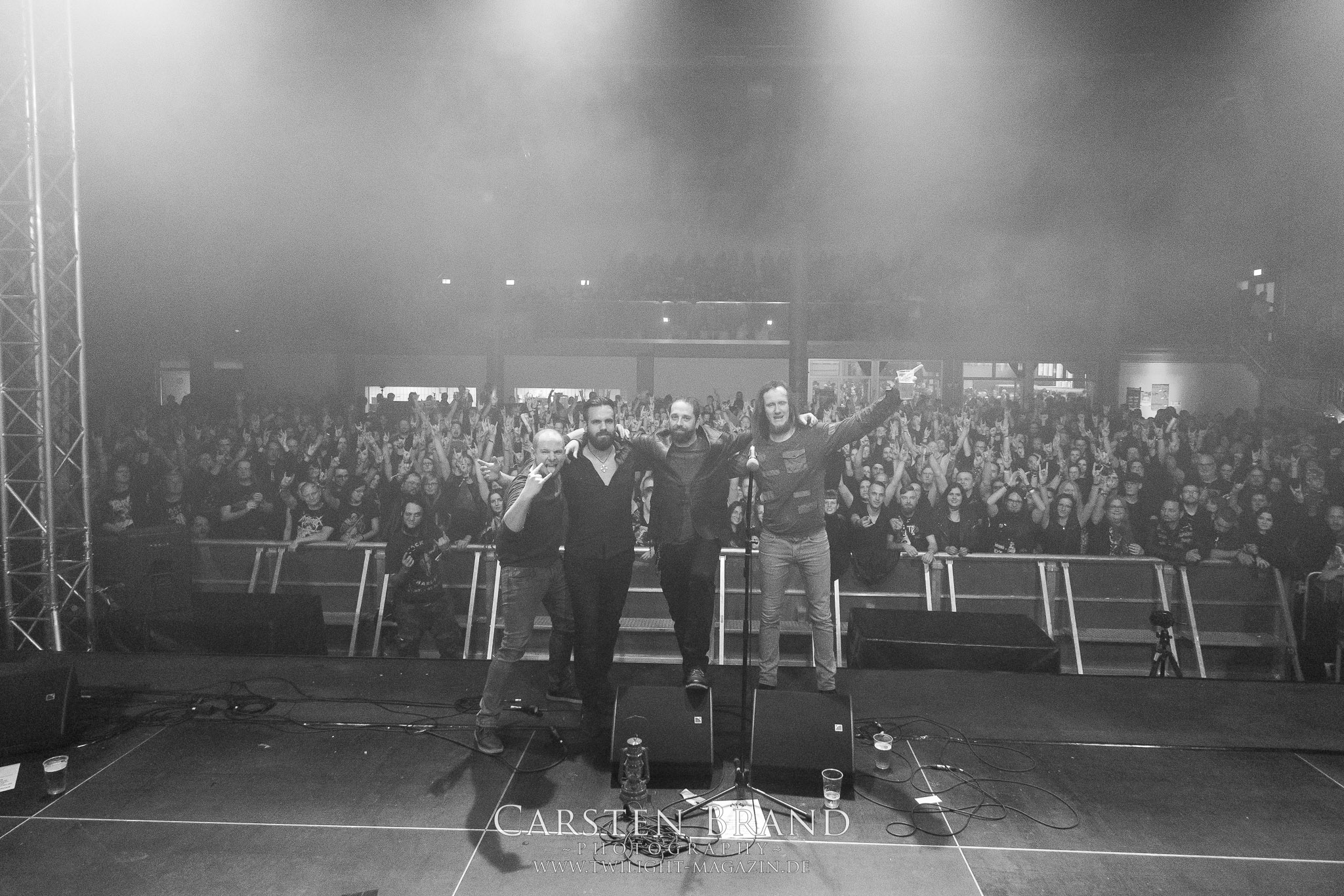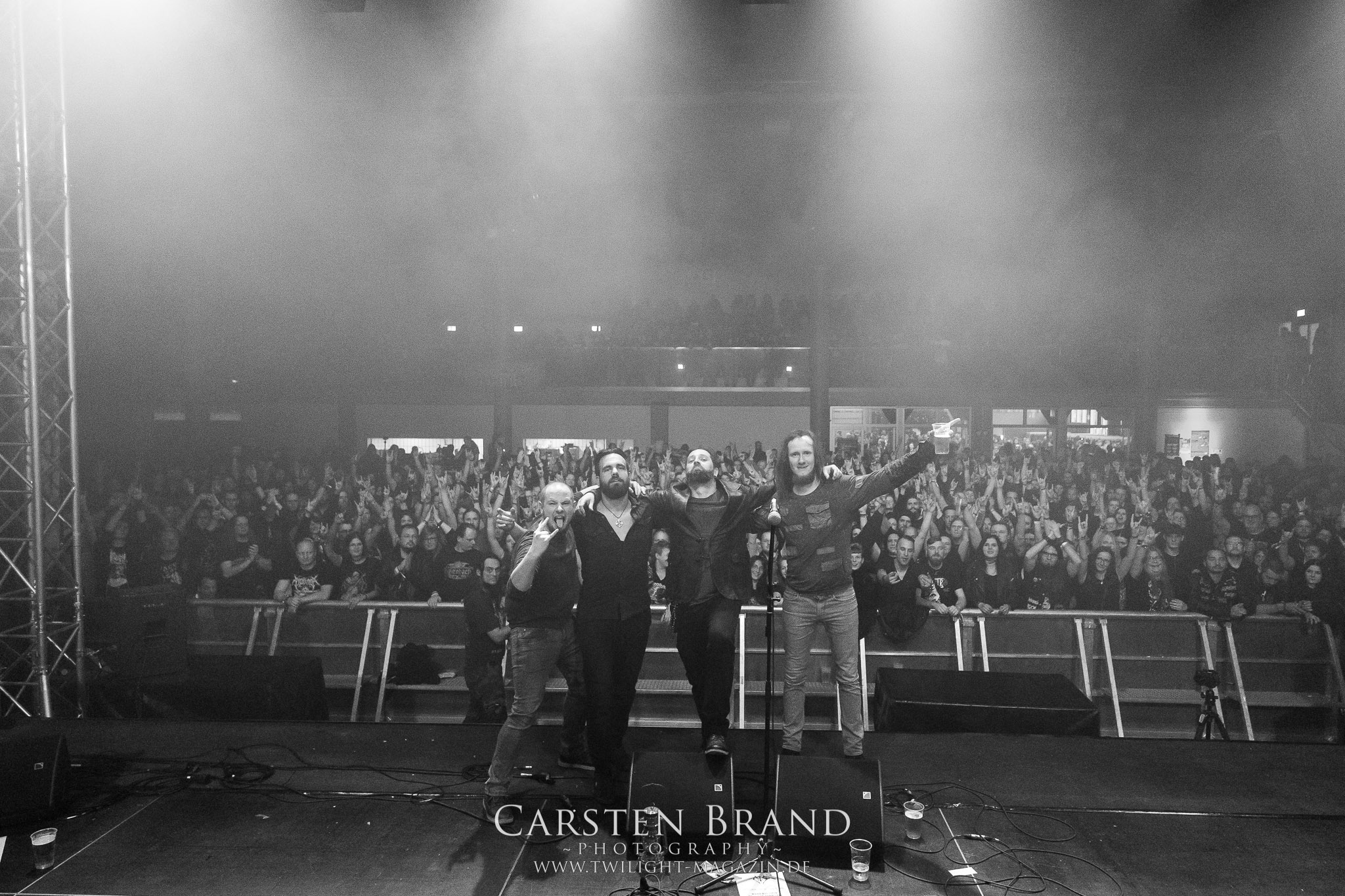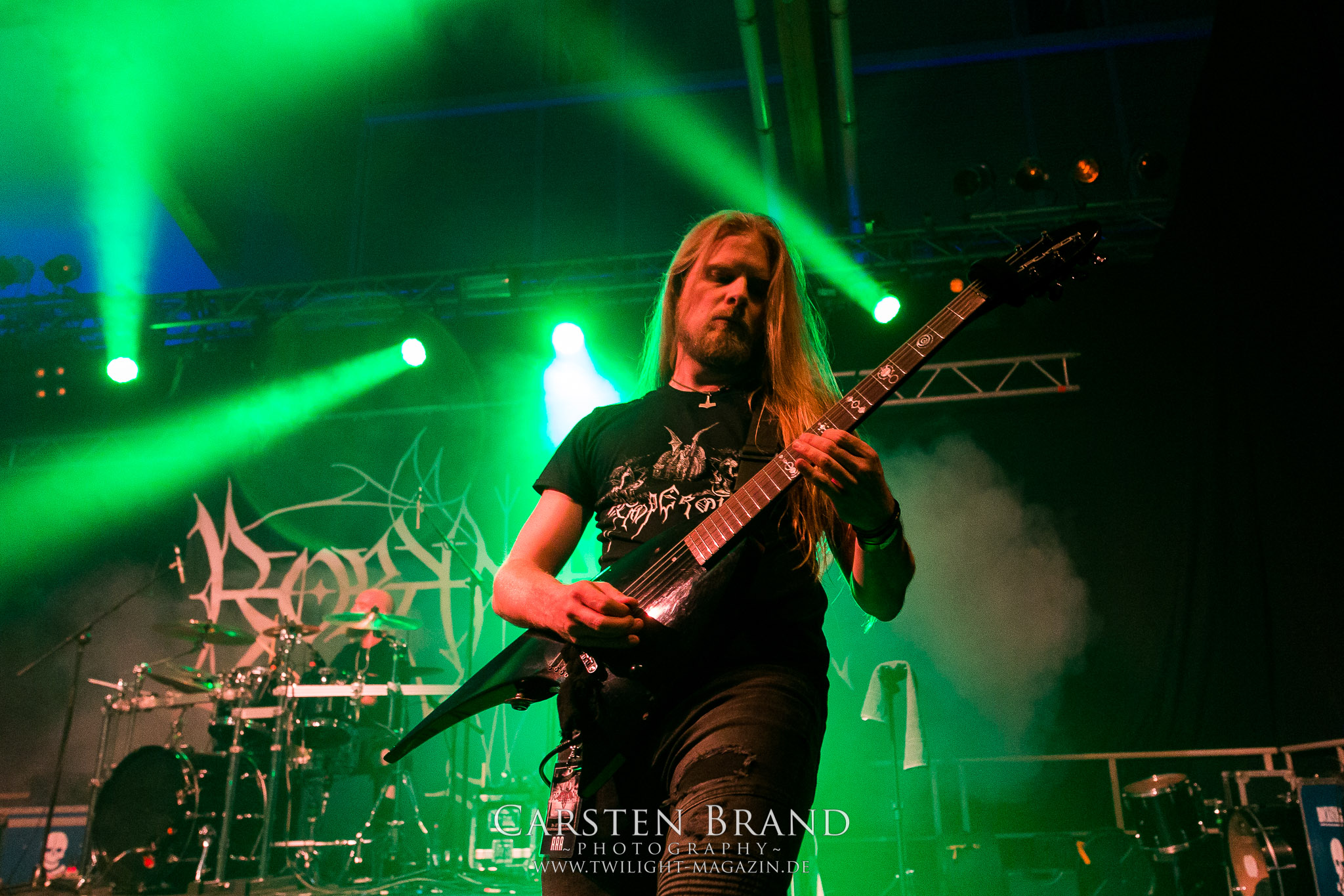 Deswegen stehen um kurz nach Sieben dann AGRYPNIE auf der Bühne, die auch nicht zum ersten Mal das Ragnarök beehren. Auch diesmal sind wieder neue Leute an Bord und wie schon zu erwarten gibt es auch wieder einen Gastauftritt: Frontmann J. J. von HARAKIRI FOR THE SKY darf bei „Die längste Nacht“ seine Stimmbänder malträtieren. Bei „Grenzgänger“ schnallt sich Frontmann Torsten dann selbst die Gitarre um und auch ein neuer Song vom demnächst erscheinenden Album darf auch nicht fehlen.