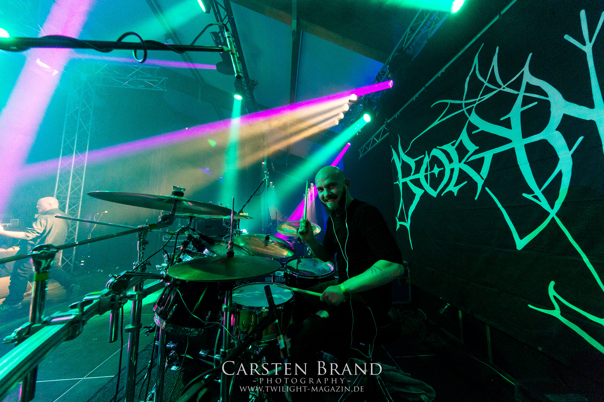 Alte Bekannte sind dann BORKNAGAR, die jedoch sowohl einen neuen Gitarristen als auch einen neuen Drummer im Gepäck haben. Dass beide genug Zeit hatten sich einzulernen, merkt man am tighten Spiel der Rhythmusfraktion. Auch Neu (und Alt)-Sänger ICS Vortex ist schon ein alter Hase im Showgeschäft, hatte er doch schon mal das Mikrofon bei den Norwegern in der Hand. So singt er auch die neuen Songs wie den Titeltrack des letzten Albums „Winter Thrice“ als letzten Song als wäre er nie fort gewesen.
