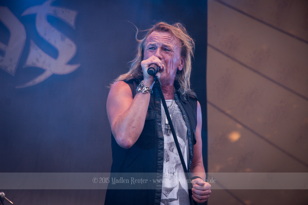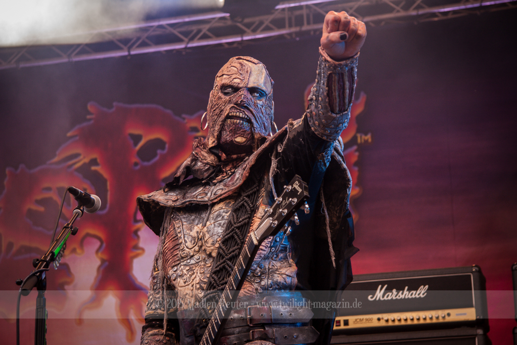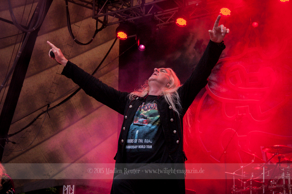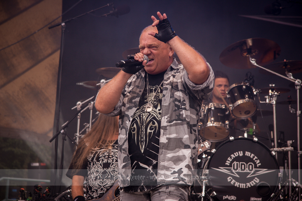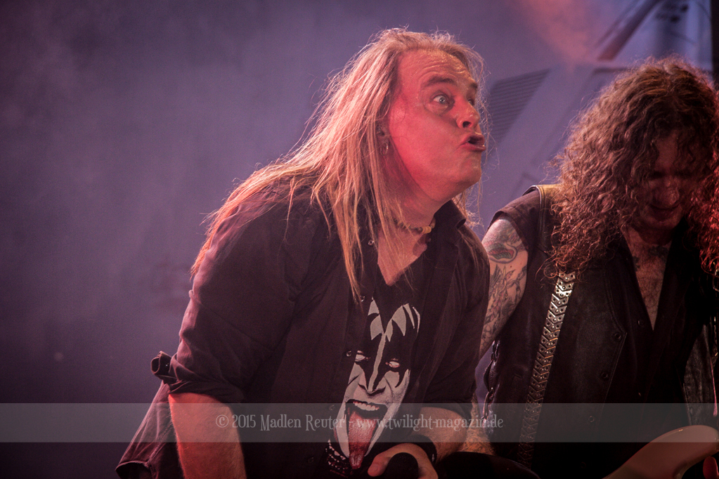 Als hätte das noch nicht gereicht, und als ob mein Nacken nicht schon genug beansprucht wurde, folgte U.D.O. als nächstes. Meine Laune wurde direkt nochmal besser, als die Herrschaften die Bühne betraten. Die haben einfach so eine Wirkung auf mich. Vor allem Kasperi und Fitty haben wieder viel miteinander „gespielt“, da muss man einfach Schmunzeln. Auch der Rest der Band hat alles dafür gegeben, das Publikum anzufeuern, und dies ist auch definitiv gelungen. Bei einer solch starken Setlist blieb eigentlich niemand mehr ruhig stehen. Vor allem habe ich mich sehr über „Metal Machine“ gefreut – Ich weiß nicht warum, aber ich liebe diesen Song abgöttisch. Lediglich die alteingesessenen ACCEPT-Fans hatten einen Grund sich zu beschweren, denn „Princess Of The Dawn“ wurde nicht gespielt. Für den letzen Song „Balls To The Wall“ bekamen die Jungs dann noch monströse Unterstützung, denn Mr Lordi gab sich ein Stelldichein mit dem German Tank. Das war ein Bild für die Götter!