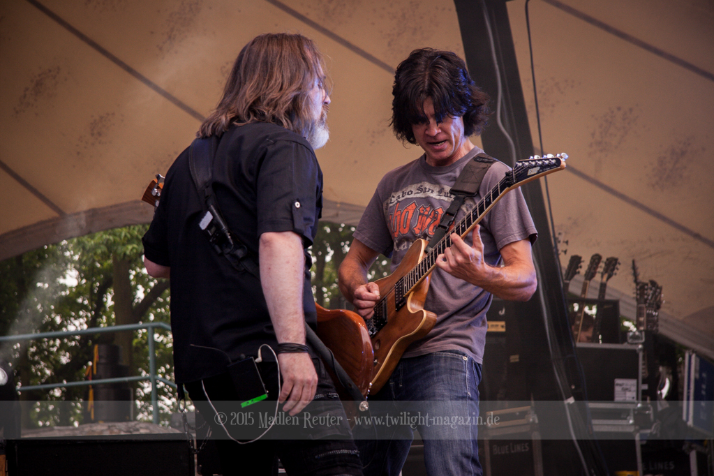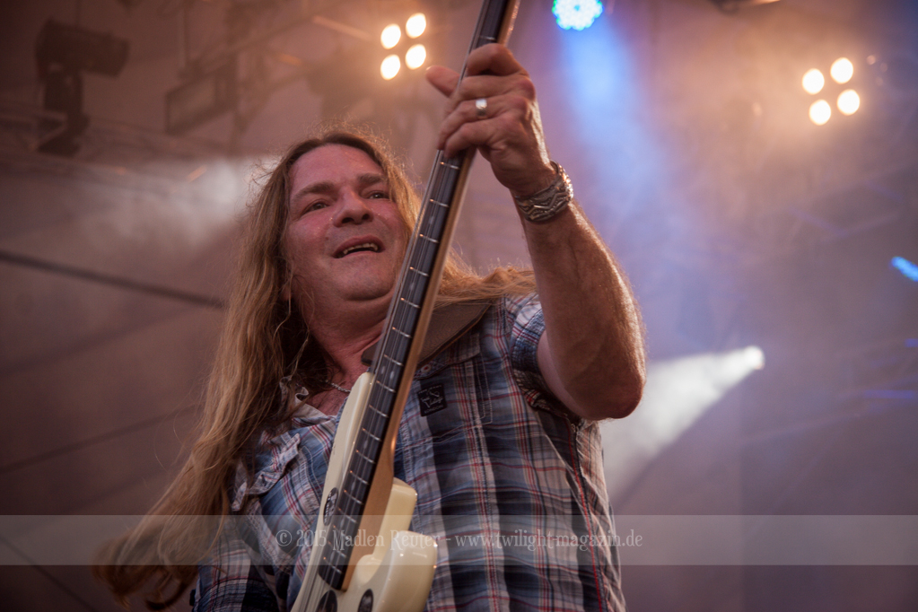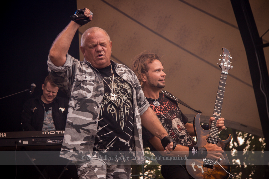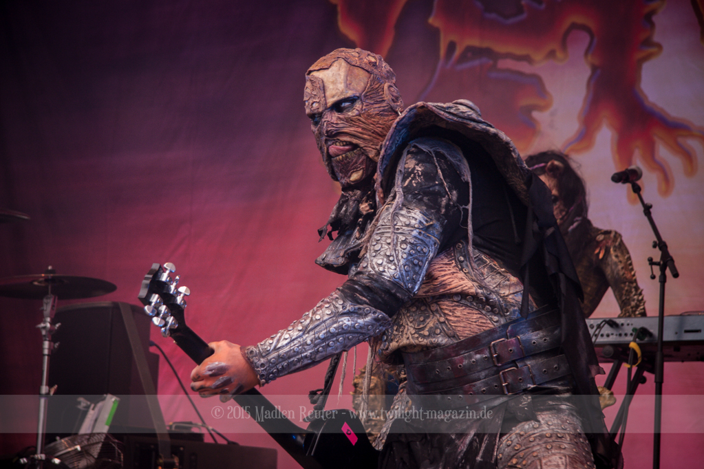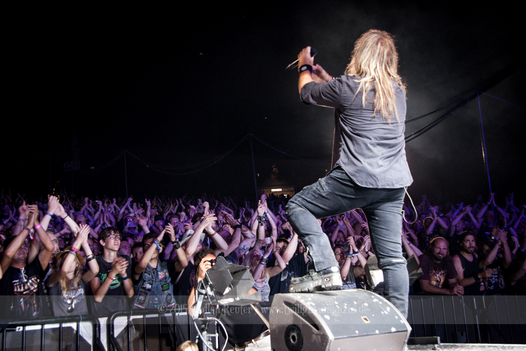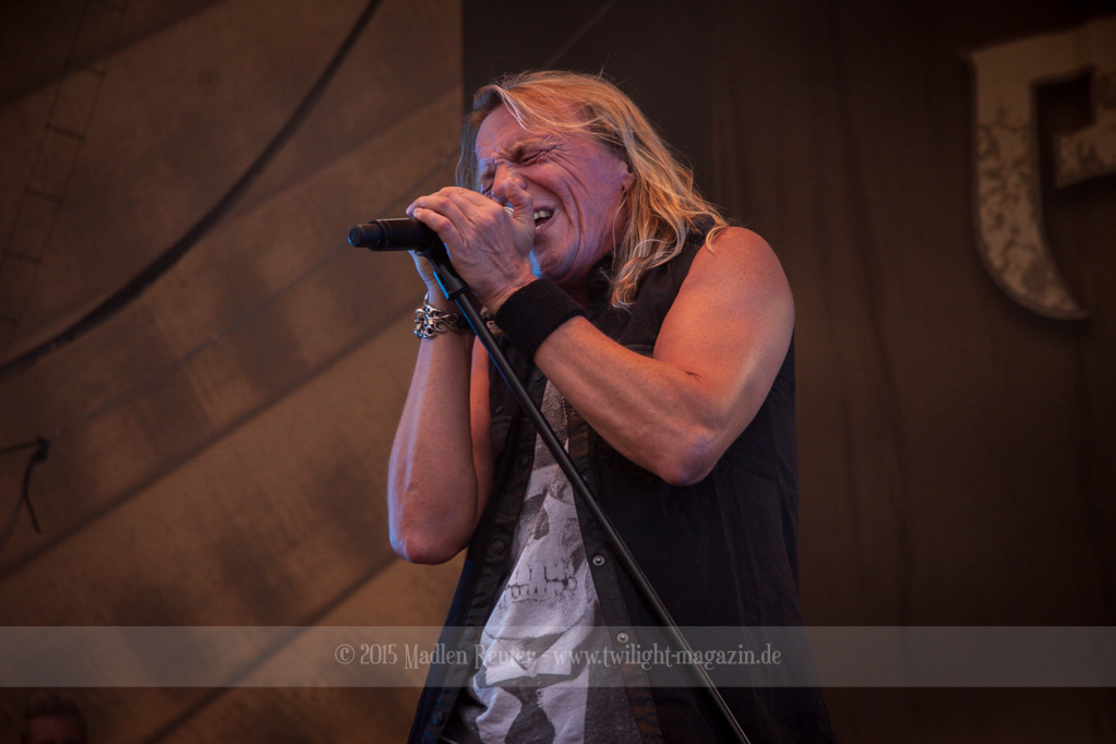 Als hätte das noch nicht gereicht, und als ob mein Nacken nicht schon genug beansprucht wurde, folgte U.D.O. als nächstes. Meine Laune wurde direkt nochmal besser, als die Herrschaften die Bühne betraten. Die haben einfach so eine Wirkung auf mich. Vor allem Kasperi und Fitty haben wieder viel miteinander „gespielt“, da muss man einfach Schmunzeln. Auch der Rest der Band hat alles dafür gegeben, das Publikum anzufeuern, und dies ist auch definitiv gelungen. Bei einer solch starken Setlist blieb eigentlich niemand mehr ruhig stehen. Vor allem habe ich mich sehr über „Metal Machine“ gefreut – Ich weiß nicht warum, aber ich liebe diesen Song abgöttisch. Lediglich die alteingesessenen ACCEPT-Fans hatten einen Grund sich zu beschweren, denn „Princess Of The Dawn“ wurde nicht gespielt. Für den letzen Song „Balls To The Wall“ bekamen die Jungs dann noch monströse Unterstützung, denn Mr Lordi gab sich ein Stelldichein mit dem German Tank. Das war ein Bild für die Götter!
