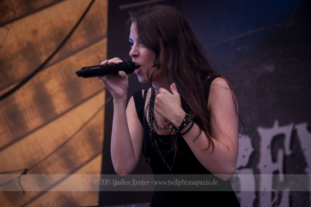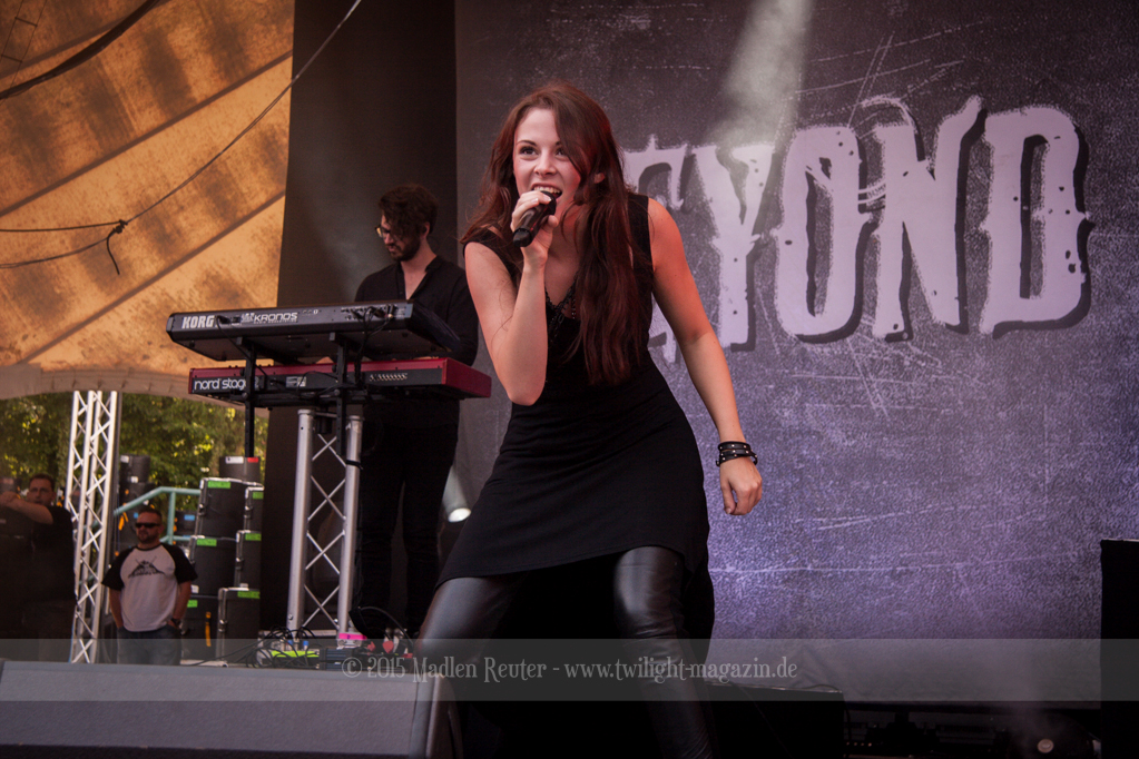 Mit einer schlechten Nachricht begann der Tag für alle MANTAR-Fans, denn das Duo hatte abgesagt. Dafür durften sich die BEYOND THE BLACK Anhänger erfreuen, denn die durften nun eine Stunde lang spielen. Die Sängerin wusste mit ihrer zarten, aber dennoch kraftvollen, Stimme zu überzeugen. Auch der Rest der Band war sehr um das Publikum bemüht, dass trotz der frühe Stunde schon recht zahlreich war. Die Stimmung war wirklich ziemlich gut – Für diese Uhrzeit hätte ich das wirklich nicht erwartet. Einziges Manko waren die ruhig Songs, die zwar sehr schön waren, aber die Energie aus der Performance genommen hatten.