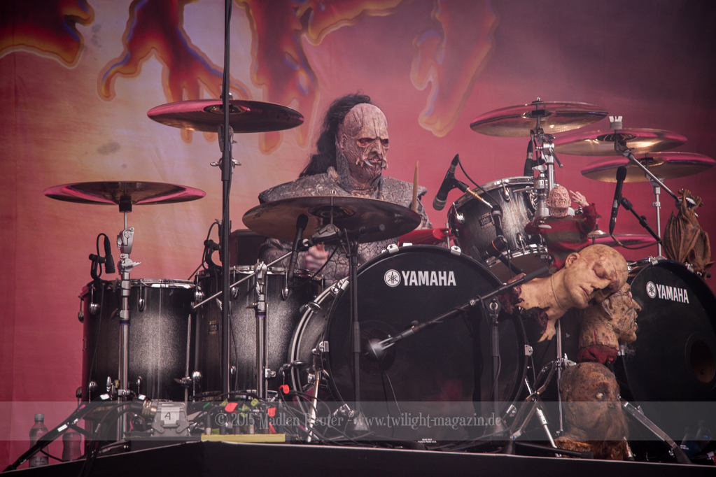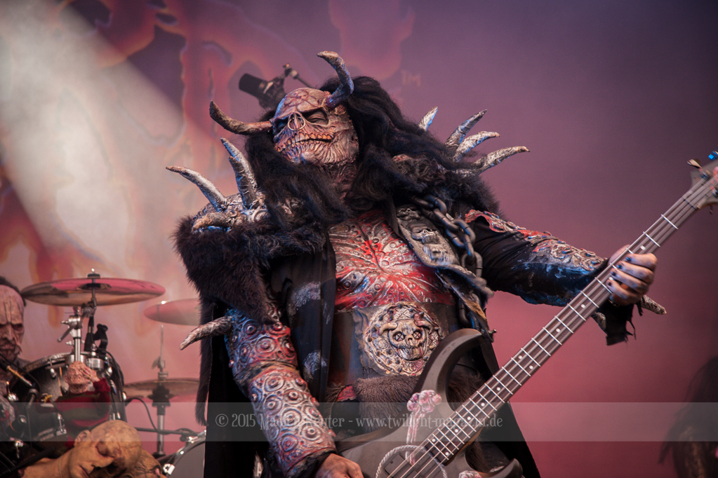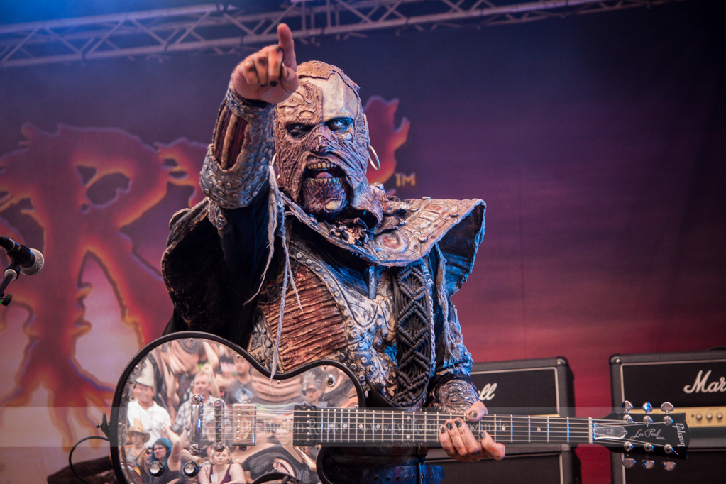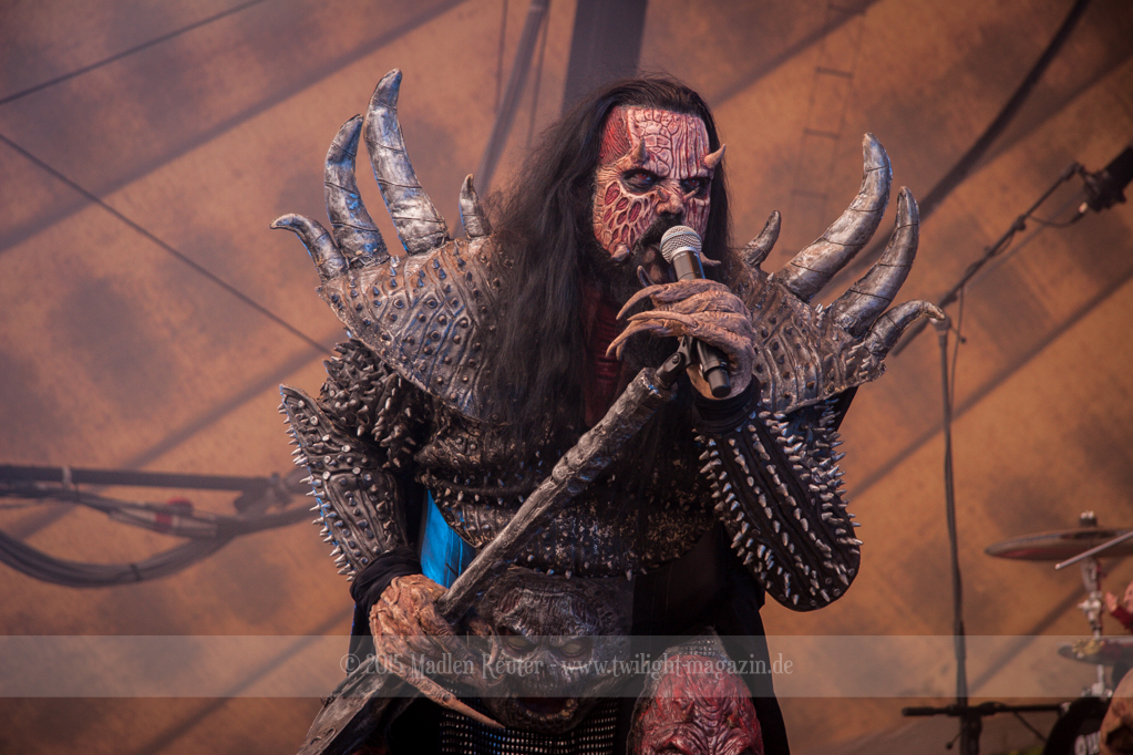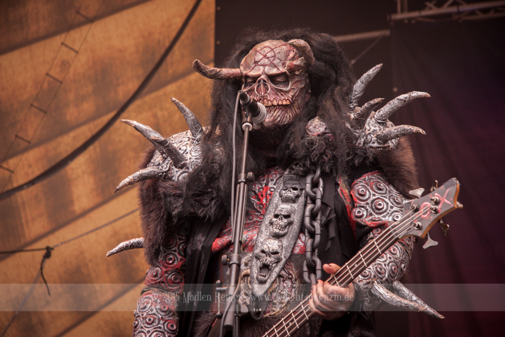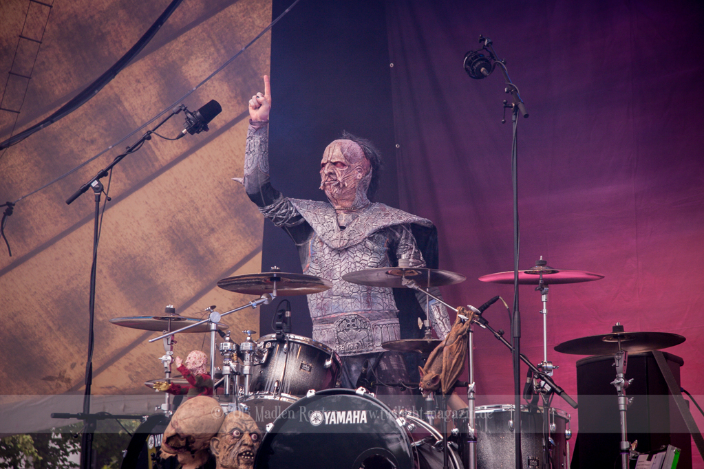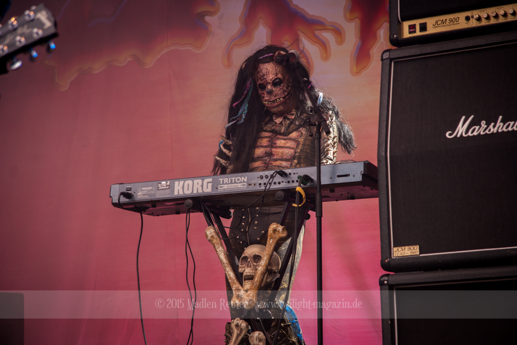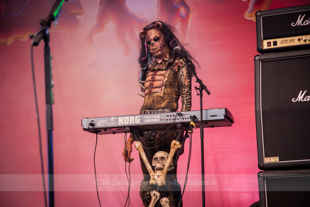 Dann wurde es auch schon Zeit für meine Lieblingsband, LORDI. Bei dem Wetter zolle ich noch größeren Respekt an die Monster, als ich es sonst schon tue, denn bereits vor dem ersten Song floss der Schweiß in Sturzbächen an ihnen hinunter. Einzig das Bassmonster scheint etwas träge, Gitarrist Amen und Aushilfskeyboarder Nalle geben dafür 120%. Halleluja, Nalle ist vielleicht ein geiler Typ – Der gute steht Hella in absolut gar nichts nach. Leider war die Setlist recht kurz, und kaum neue Songs fanden Platz darin. Lediglich „Nailed By The Hammer Of Frankenstein“ & „Scare Force One“ wurden gespielt. Auch der Livehit „Sincerely With Love“ wurde gestrichen, dafür fand jedoch „They Only Come Out At Night“ (Nein, kein Besuch von Udo.) einen Weg auf die Bühne. Als größte Überraschung entpuppte sich dann das ALICE COOPER Cover „He’s Back“ – Absolut geiler Song, und die Version der Monster ist einfach der Knaller! Und passend dazu, bekamen die Monster einen kurzen Besuch von Jason Voorhees. Ansonsten bleibt mir nicht viel zu sagen, die Show war der Hammer, und auch der Rest der zahlreichen Zuschauer war begeistert. Mit jedem Auftritt verliebe ich mich mehr in diese wunderhübschen Motherf*cker!