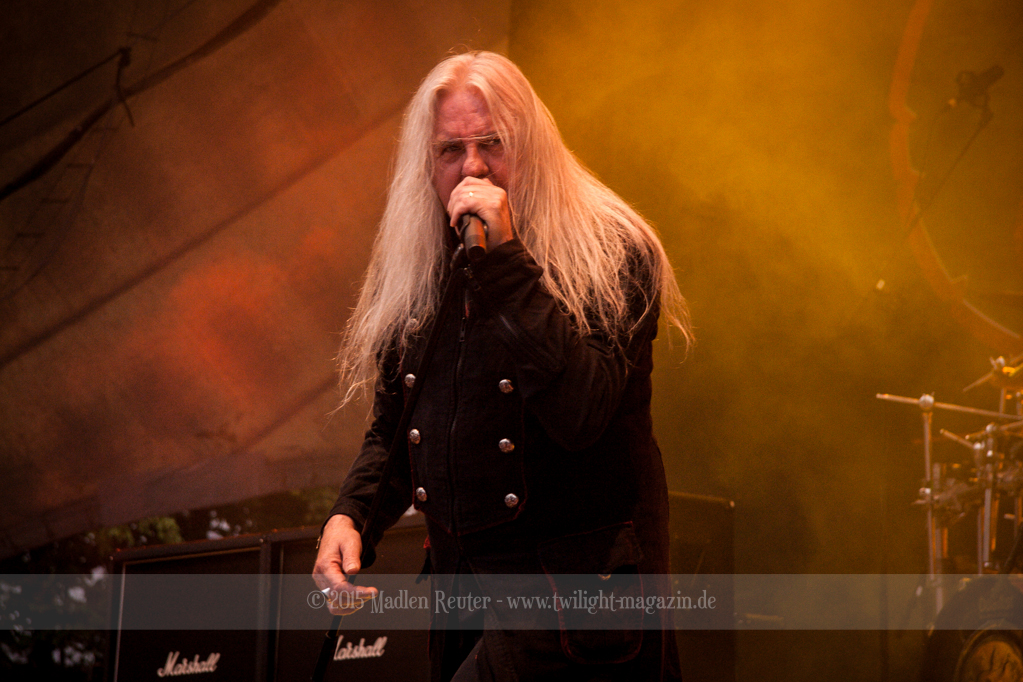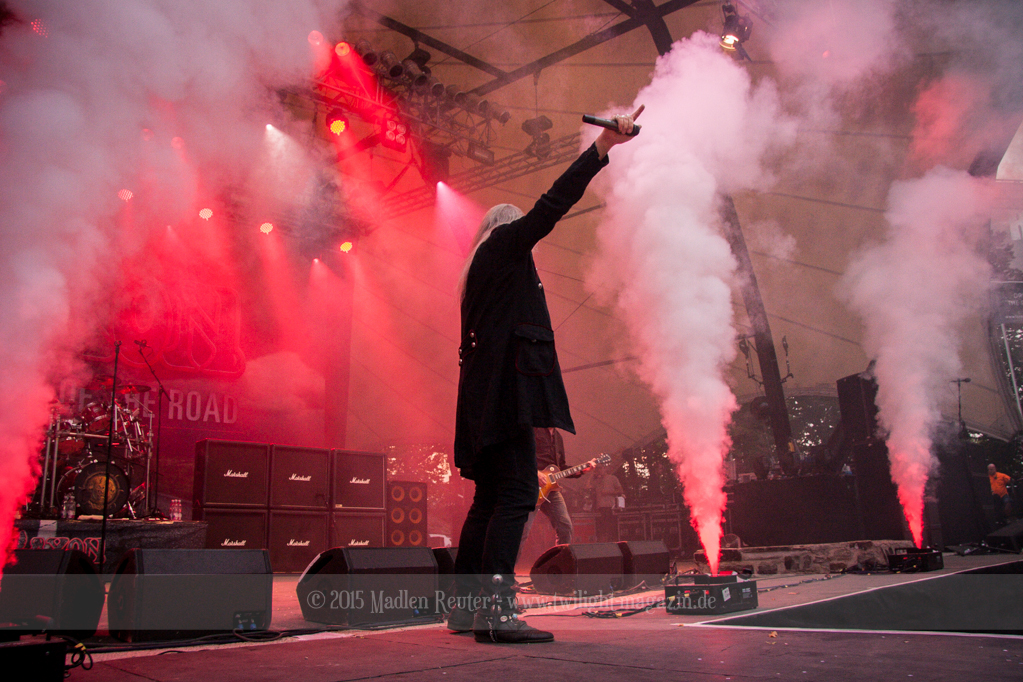 SAXON erklommen danach die Bühne. Mit der Musik konnte ich irgendwie nichts anfangen, dafür wussten die restlichen Festivalbesucher, wie man die Briten ordentlich hochleben lässt. Neben den Monstern aus Finnland waren SAXON die einzige Band, die so etwas wie Pyros im Gepäck hatten. Hierbei handelt es sich allerdings auch „nur“ um Nebelkanonen, diese sorgten aber für ein optisches Highlight. Vor allem der Sänger hatte eine unglaublich starke Bühnenpräsenz, und zog die Massen in seinen Bann.