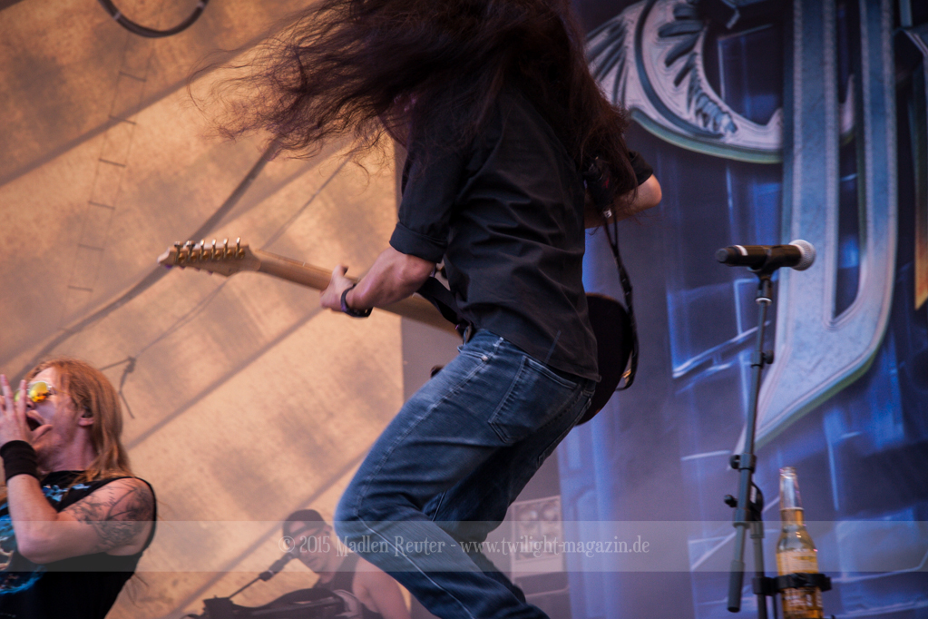 BRAINSTORM konnten von Anfang an Punkte sammeln, denn musikalisch war das ziemlich mein Ding. Dicke Songs, die ordentlich nach vorne gingen überzeugten allerdings nicht nur mich. Auch die verminderte Sonneneinstrahlung ließ eine schöne Lichtshow zu. Vor allem der Sänger flog quasi über die Bühne und spaßte mit dem Publikum herum. Der Rest der Band beschränkte sich aufs Headbangen, aber das reichte auch vollkommen aus. Bereits jetzt war die Laune extrem gut – Das konnte also nur noch super weiter gehen.
