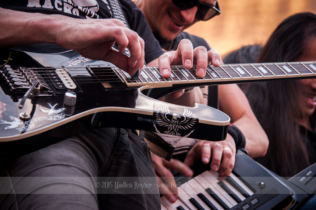 Auf Grund von diversen Verzögerungen konnte ich die ersten beiden Bands leider nicht miterleben. Zwar konnte ich sie laut und deutlich hören, aber ein Bild dazu wäre mir doch ganz lieb gewesen. Was ich allerdings zum Sound sagen kann: SERIOUS BLACK klangen wirklich unglaublich stark! Wenn ich das mit der ersten Show im Januar vergleiche, dann gab es da eine deutliche Steigerung. Jungs, macht weiter so. Von AXXIS ist mir leider nicht allzu viel im Gedächtnis geblieben, da ich auch nur die Hälfte des Auftritts mitbekommen habe.