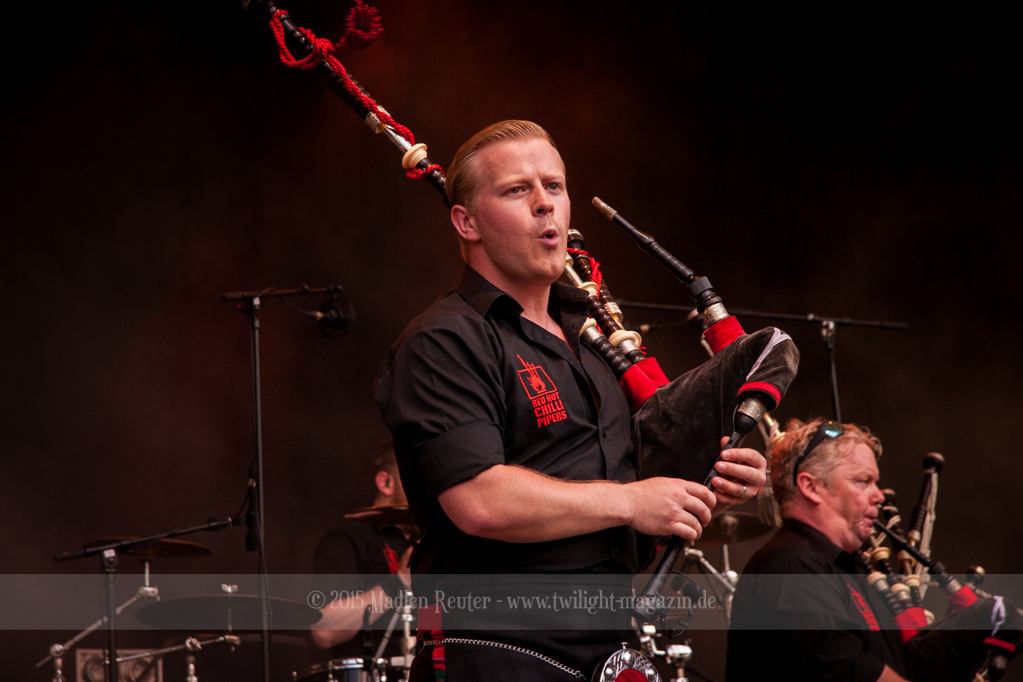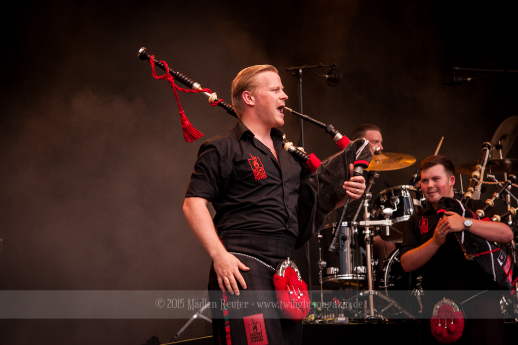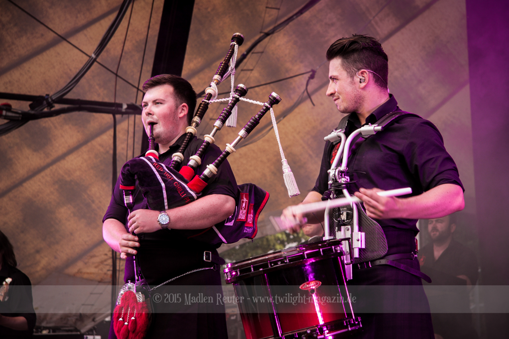 Mit den RED HOT CHILLI PIPERS ging es dann etwas anders weiter. Dieses Gespann hat sich in den letzen Jahren einen Namen gemacht, und durfte auch schon mehrfach in Wacken abrocken. Viele Spielereien, vorzugsweise mit dem bewundernswert aktiven Publikum, hatten oberste Priorität. Nebenbei überzeugten sie mit musikalischen Leckerbissen, in ihrer ganz eigenen Variante. Wäre es nicht so sengend heiß gewesen, hätte das ganze mehr Spaß gemacht.