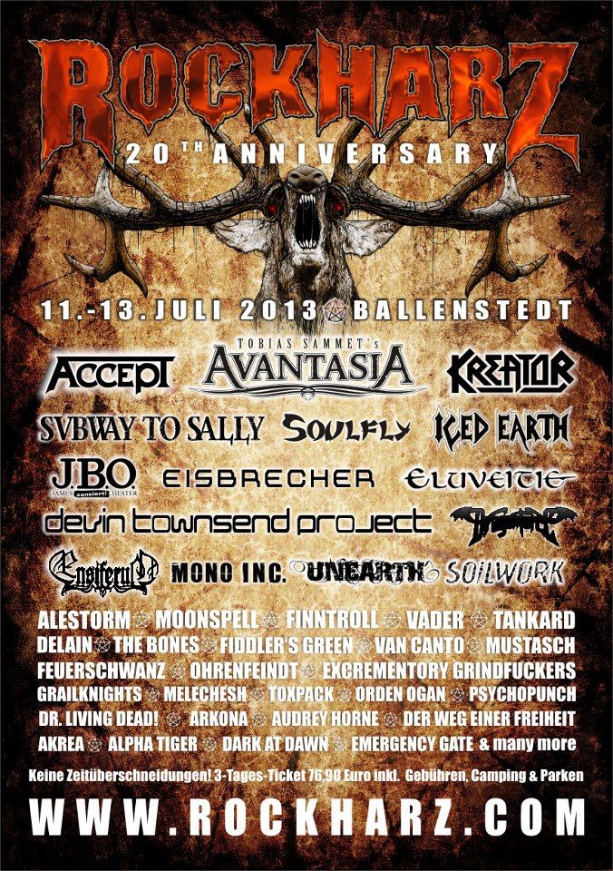 Accept, Alestorm, Alpha Tiger, Avantasia, Dark at Dawn, Der Weg Einer Freiheit, Dr. Living Dead, Eisbrecher, Eluveitie, Emergency Gate, Ensiferum, Excrementory Grindfuckers, Feuerschwanz, Fiddlers Green, Grailknights, Iced Earth, J.B.O., Kreator, Melechesh, Mono Inc, Moonspell, Mustasch, Orden Ogan, Soilwork Subway To Sally, Tankard, Toxpack, Unearth, Vader, Van Canto