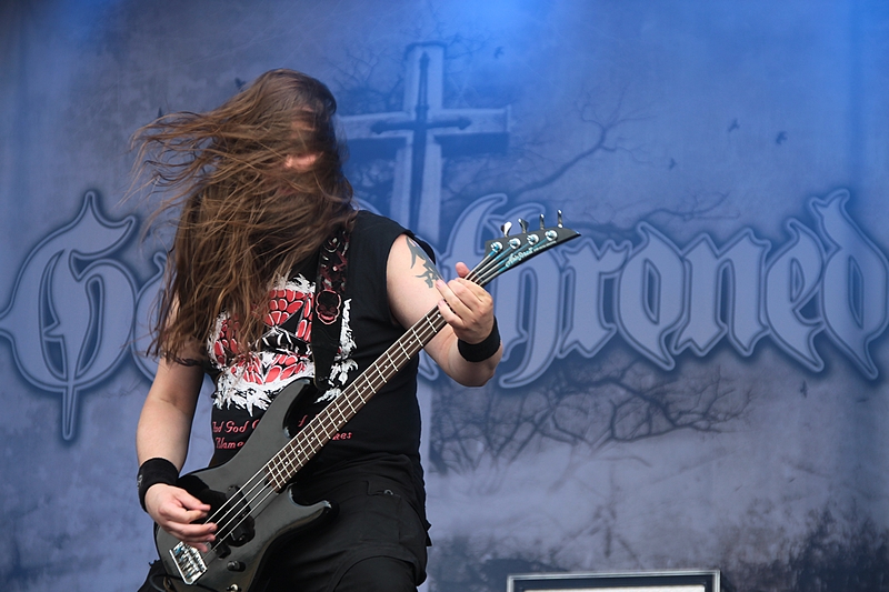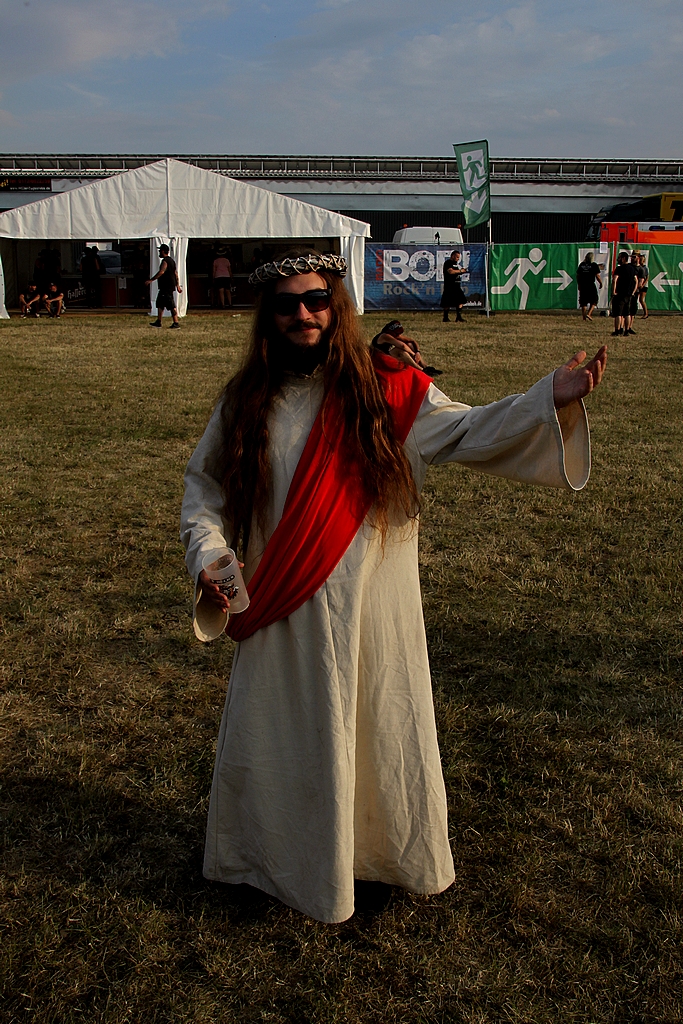 Allerdings kamen die niederländischen GOD DETHRONED schon eine ganz Ecke ernsthafter rüber. Mit dem neuen, starken Album „The World Ablaze“ im Gepäck enterte das Quartett die Dark Stage und konnte eine recht ansehnliche Metalmeute vor der Bühne versammeln. Zwar wurde das neue Album mit dem Titeltrack und „Annihilation Crusade“ bedacht, ich hatte jedoch auf die erste Single „On the Wrong Side of the Wire“ gehofft. Leider vergeblich. Aber bei mittlerweile elf Alben wird die Auswahl natürlich irgendwann schwer. Unterm Strich blieb eine kraftvolle Death Metal Show ohne große Überraschungen. Weiter ging’s mit den Mittelalterrockern LETZTE INSTANZ. Nun gehört Mittelalterrock nicht zu meinen Lieblingsgenres, aber LETZTE INSTANT kann man ertragen. Im Verlauf des Festivals hörte man allerdings an verschiedenen Ecken des Infields Kritik an der hohen Zahl von Mittelalterbands in diesem Jahr. Wie auch immer. Die Dresdner gaben von Anfang an Vollgas, Frontmann Holly sieht nach wie vor nicht wie ein Mittelalter-Sänger aus, was ich auch nicht schlimm finde. Blickfang war sicherlich Cellist Benni. Manchmal war man versucht zu glauben, dass der Herr an ein Starkstromkabel angeschlossen war. Die Fans schienen begeistert und ich fühlte mich nach einer knappen Stunde jedenfalls gut unterhalten. PRIMAL FEAR konnte ich nur aus der Ferne vom Tagesparkplatz verfolgen. Die Süddeutschen um Mat Sinner konnten an diesem Donnerstag jedenfalls den längst überfälligen Metal-Farbtupfer setzen und als Frontmann Ralf Scheepers seine Metalsirene erklingen ließ, pilgerten die Headbanger auch brav vor die Dark Stage, um die Matte zu schütteln. Der Sound war – zumindest aus der Ferne – nicht immer ideal. Dennoch brachen die Herren heute mit Songs wie „In Metal We Trust“, „Chainbreaker“ oder dem finalen „Metal is Forever“ eine Lanze für den traitionellen Metal á la JUDAS PRIEST & Co. Gefällt!