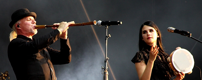 Kinder, wie lange liegt es zurück, dass ich SKYCLAD live gesehen habe. Jüngst sind ja die alten Klassiker der britischen Vorzeigeband neu aufgelegt worden und mit „Forward Into The Past“ haben die Damen und Herren ja auch ein recht aktuelles Album im Gepäck gehabt. Um 14 Uhr, also genau dann wenn der gute deutsche Kleingartenmetaller die Füße hochlegt, erklommen die Briten die Bühne. Mit den beiden SATAN Musikern Steve Ramesy und Graeme English sind ja zwei Gründungsmitglieder in den Reihen der Band und auch der Rest der Truppe ist im Grunde schon recht lange dabei. Trotzdem wurde mir recht schnell klar, dass die gewisse Magie eines Martin Walkyier fehlte. Hinzu kam wohl, dass die Truppe doch besser in der verrauchten Gemütlichkeit eines Irish Pubs aufgehoben ist als auf der sonnenüberfluteten Festivalbühne. Ohne Frage hatten SKYCLAD mit Songs wie „Spinning Jenny“, „The Parliament of Fools“ oder „Penny Dreadful“ einige Gassenhauer sowie auch neue Songs im Gepäck, doch wirklich überzeugend war das Herumgehopse der Folk-Metal Veteranen nicht. Irgendwie konnte man sich des Eindrucks nicht erwehren, dass die Band als Headliner beim Straßenfest oder als Überraschungsgast beim Sommerfest der städtischen Musikschule besser aufgehoben gewesen wäre. Den Leuten hat es trotzdem gefallen, ich zog mich etwas enttäuscht zurück.