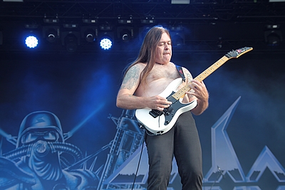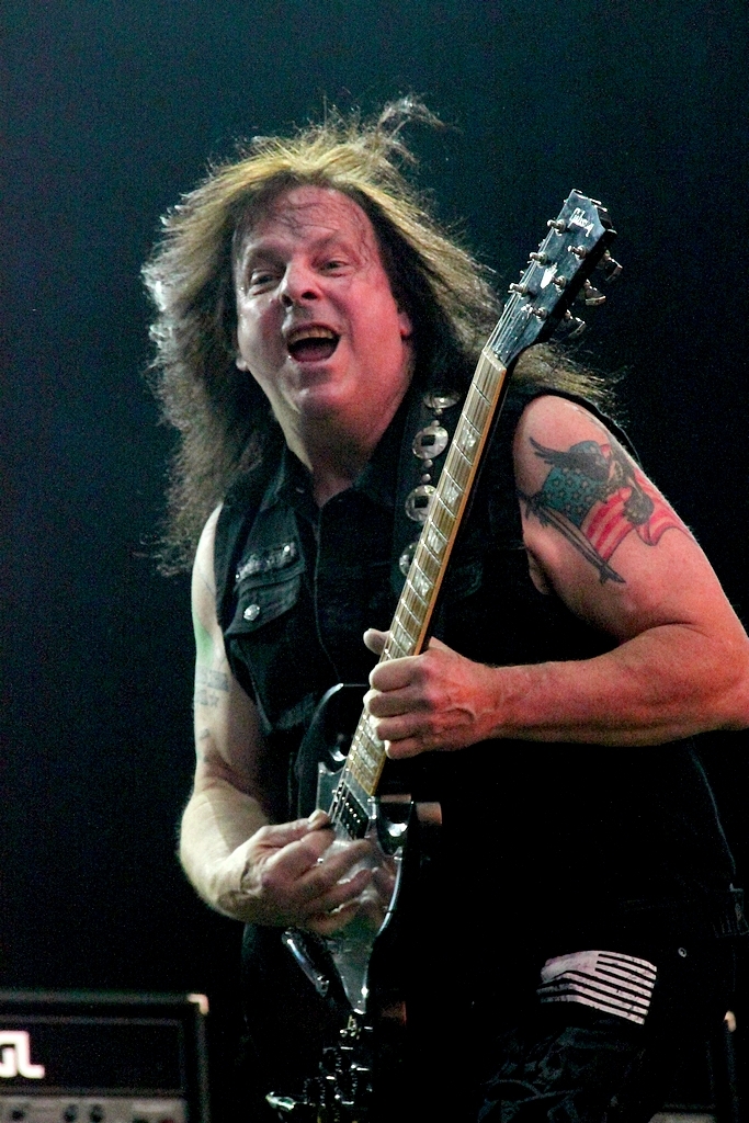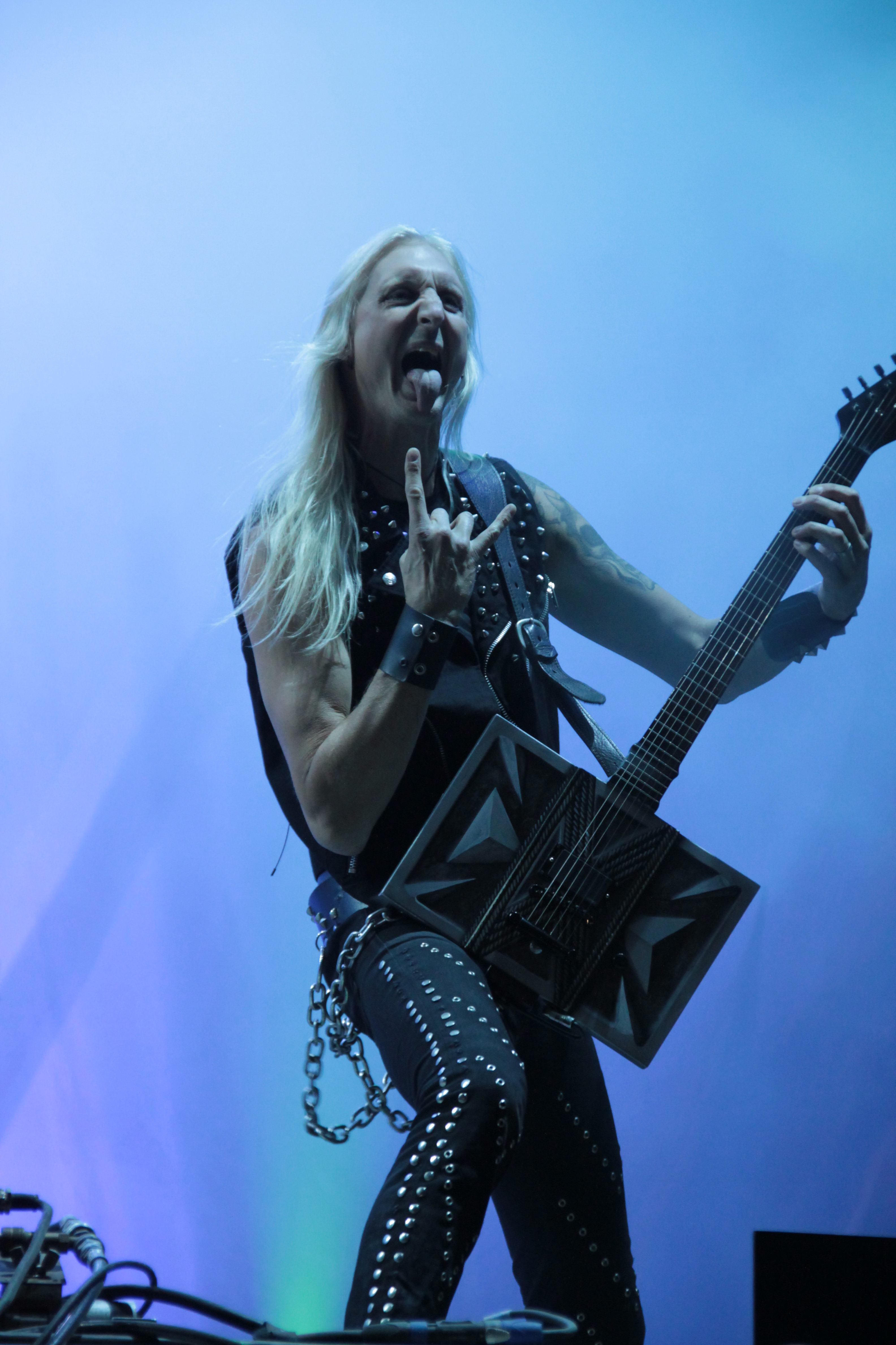 ROSS THE BOSS jagt natürlich jedem truen Metaljünger einen epischen Schauer durch den Baumwollschlüpper, immerhin hat der New Yorker Ross Friedman mit MANOWAR sechs Alben aufgenommen. Dementsprechend würde man wohl auch lügen, wenn man behaupten würde, dass die Fans vor der Bühne gekommen waren, um Songs von den ROSS THE BOSS Alben zu hören. Nein, die Metalheads waren scharf auf MANOWAR Klassiker. Mittlerweile ist mit dem Ami Marc Lopes ein neuen Sänger an Bord. Und auch wenn man das Gefühl hatte, dass sich der Lockenkopf zu sehr im hinteren Teil der Bühne verstecke, so war er stimmlich doch durchweg präsent und lieferte einen richtig guten Job ab. Klar, dass Songs wie „Fighting the World“, „Blood of my Enemies“, “Battle Hyms” oder „Hail and Kill“ richtig abgefeiert wurden.