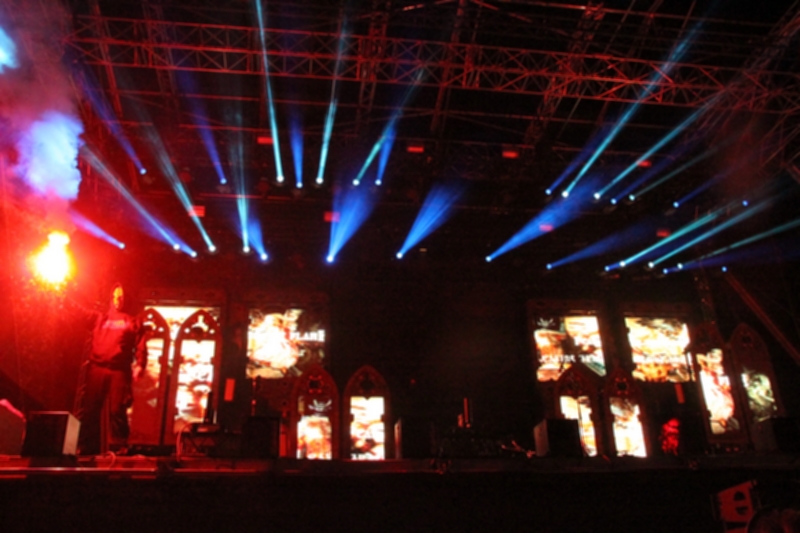 Mittlerweile ging die Sonne über dem Metal-Zeltlager des Rockharz unter und es wurde Zeit für den ersten Headliner des Festivals: KREATOR! Seit fast 20 Jahren sitzt die in Essen gegründete Band um Frontmann Mille ja wieder fest auf dem Thrash Metal Thron. Ebenso lange gab es keine Veränderungen im Line Up mehr, so dass es durchaus verständlich ist, dass die Band sich vor allem auf Songs seit dem „Violent Revolution“ Album konzentrierte. Aus der Pre-Yli-Sirniö Zeit wurden am heutigen Abend lediglich „Plessure to Kill“, „Flag“ of Hate“ und „People of the Lie“ gespielt. Natürlich sind Songs wie „Enemy of God“, „From Flood Into Fire“ oder „Hordes of Chaos” mittlerweile die Visitenkarte der Band, dennoch macht sich bei mir eine gewisse Enttäuschung darüber breit, dass “Extreme Aggressions” mit gar keinem Song bedacht wurde. Ob es anderen wohl auch so ging? Doch das war auch schon fast der einzige Kritikpunkt, denn das Quartett legte von der ersten Sekunde an mächtig los. Mille sparte sich lange Ansagen und stattdessen brettern die Jungs durch die Playlist, während die Bühne in ein wahres Lichtermehr verwandelt wurde. Leider war der Sound mitunter etwas undiffiniert – jedenfalls rechts neben der Bühne – und Ventors Drums klangen teilweise wie von einem MINISTRY Album, während vom Gesang oder den Riffs nur ein Brei zu hören war. Trotzdem waren KREATOR definitiv ein würdiger erster Headliner und ein Höhepunkt des ganzen Festivals!