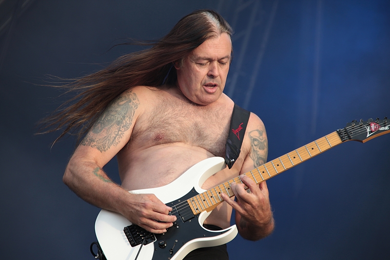 Etwas Linderung brachten AMORPHIS, auf die ich mich ebenfalls gefreut habe. Meine letzten Liveerfahrungen mit den Finnen liegt wohl in den Jahren vor dem Logo-Relaunch Mitte der 90er Jahre. Ob beim Wacken oder im Capitol in Hannover, die Band hatte seinerzeit stets mit miesem Sound zu kämpfen und einen wahrlich schlechten Ruf als Liveband. Insofern war ich gespannt, was die Jungs um die Axtmänner Tomi Koivusaari und Esa Holopainen anno 2018 zu bieten haben würden. Los ging es bei strahlendem Sonnenschein mit dem Opener des aktuellen Longplayers „Queen of Time“: „The Bee“.