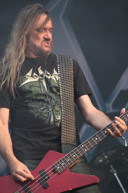 Während des Soundchecks wurde bereits eines klar: Offenbar verfügen alle Bandmitglieder über ausgesprochen große Geschlechtsteile. Und mit eben diesen wollte Frontmann Mutz dann auch die wartenden Fans begatten. Gott sei Dank blieb es dann aber doch beim musikalischen Akt. Die Niedersachsen nutzen ihre 45 Minuten Spielzeit und hauten einen Modern Thrash Song nach dem anderen in die gusseiserne Pfanne, während die Fans vor der Bühne bei hochsommerlichen Temperaturen brutzelten und feierten.