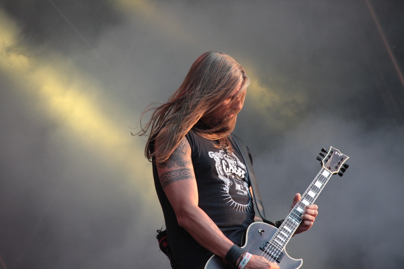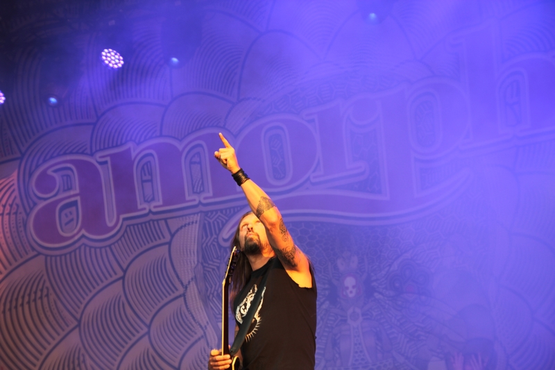 Da waren AMARANTHE doch von ganz anderem Kaliber. Auf die Schweden, die ich noch nie live gesehen hatte, habe ich mich am meisten gefreut. Und es sollte sich zeigen, dass die Veranstalter mit dem „Einkauf“ der Truppe definitiv ein gutes Händchen bewiesen haben. Mit dem Opener „Maximize“ vom aktuellen Album „Maximalism“ konnte Sechser die Bühne und das Infield sofort in seinen Bann ziehen. Das Trio Nils Molin (der im letzten Jahr Jake E. Lundberg ersetzt hatte), Henrik Englund Wilhelmsson und Elize Ryd füllte die Bühne von der ersten Sekunde an aus und strahlte fast mehr Energie aus als die brennende Julisonne. Mit „On The Rocks“ ging es aktuell weiter – das umstrittene „That Song“ sparte man sich. Wäre live allerdings interessant gewesen. „Digital World“ leite zum brachialen „Dynamite“ über, bevor es mit „1000000 Lightyears“ den ersten Superhit gab. Grandioser Song, grandiose Performance! Mit „Invincible“ wurde den Fans kaum Zeit zum Durchatmen gegeben. Erst mit dem langsamen, aber doch genialen „Amaranthine“ gab es eine kurze Verschnaufpause im Modern Metal Zirkus. Das Ende der Show kam viel zu früh und mit „Hunger“, „Drop Dead Cynical“ und „The Nexus“ sogen die Schweden nochmal alle Register. Ich bin bekanntlich kein Modern Metal oder Metalcore Fan, aber AMARANTHE holten sich an diesem Freitag ohne Probleme den Pokal für die beste Band des Tages. Und wie sich zeigen sollte, konnte auch im weiteren Verlauf des Festivals keine Band an die energiegeladene Performance von Elize und ihren Jungs herankommen. AMARANTHE ist gelungen, was vielen Bands nicht gelingt: sie haben das Publikum mit ihrem Auftritt bestens unterhalten. Alle Daumen hoch für AMARANTHE!