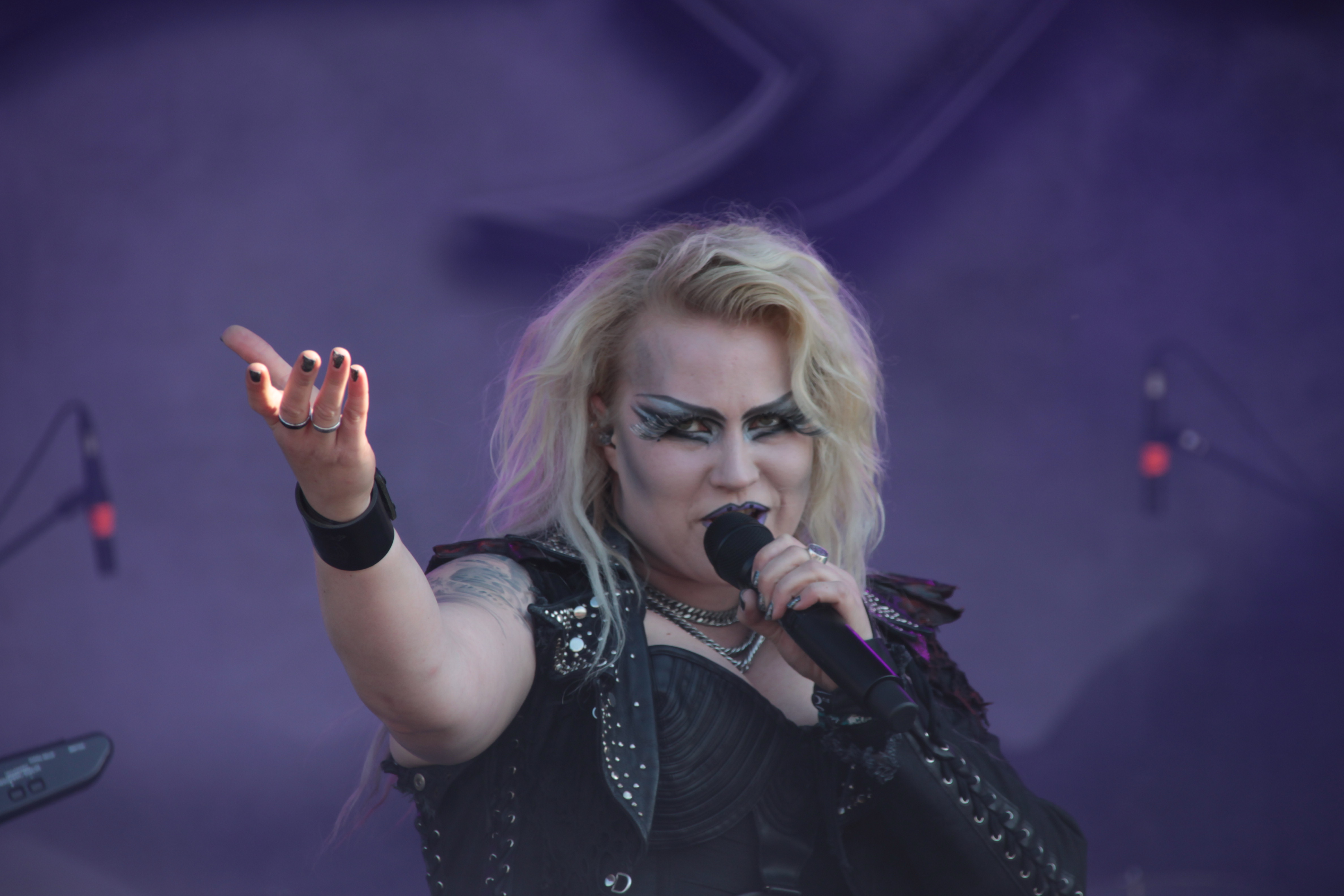 An diesem Freitag gab es kaum Zeit, um einmal durchzuatmen: BATTLE BEAST luden vor die Dark Stage. Für mich war es das erste Mal, dass ich die Band nach ihrem Zerwürfnis mit Anton Kabanen wieder live gesehen habe. Frontbiest Noora Louhimo konnte die Fans von der ersten Sekunde an in ihren Bann ziehen – und genügend gutes Songmaterial hatte die Band natürlich auch im Gepäck. Mit Songs wie „Straight to the heart“ und „Black Ninja“ wurde den Fans ordentlich eingeheizt. Highlight war natürlich „Out of Control“. Positiv war auch, dass die Songs live wesentlich härter klingen als auf CD, wo die Produktion ja oft eine etwas poppigere Note einfließen lässt.